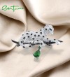 SANTUZZA 925 Silver Brooch White Black Leopard Wild Animal Fine Jewelry