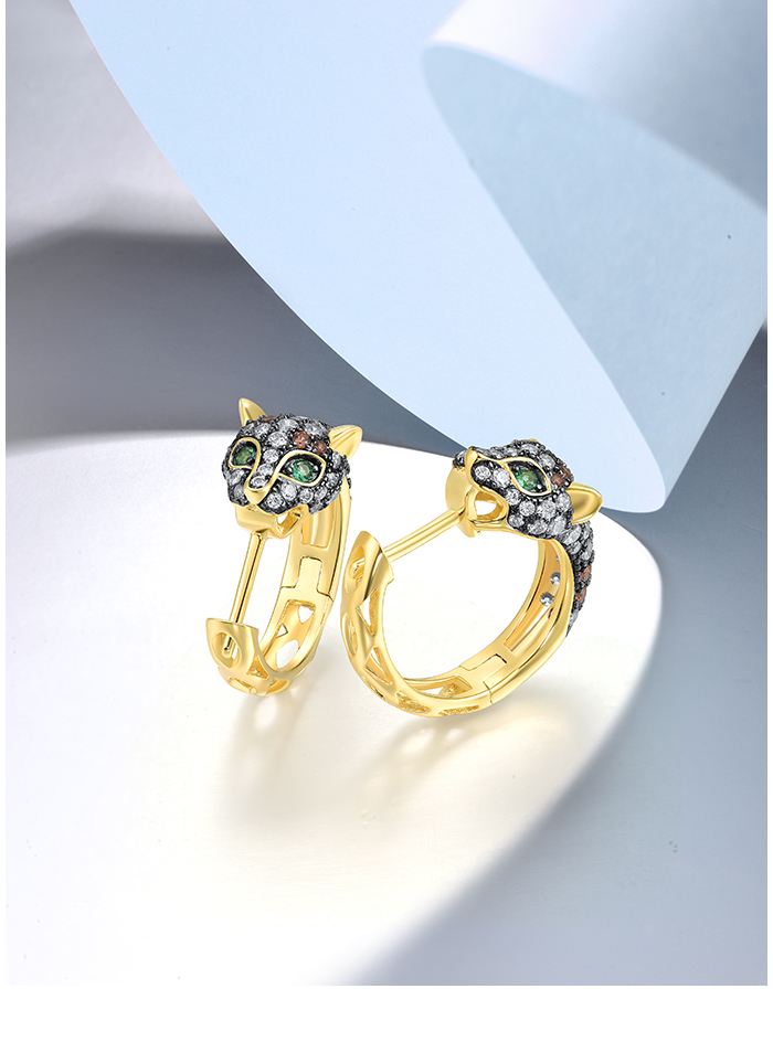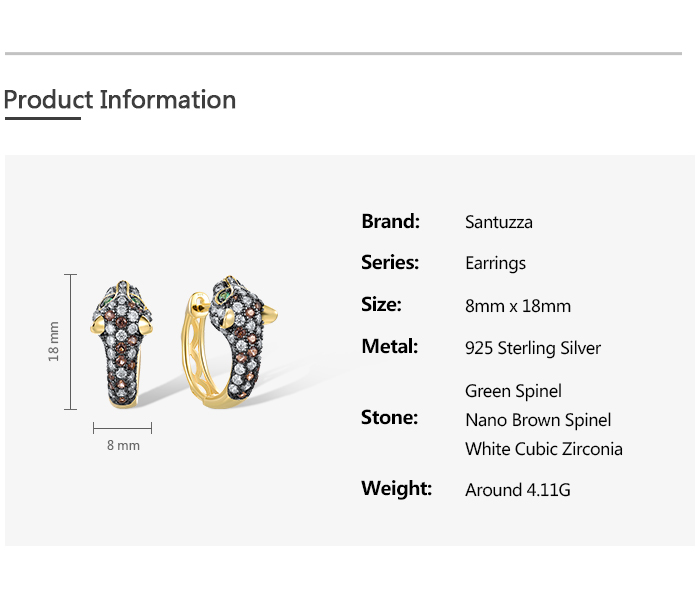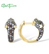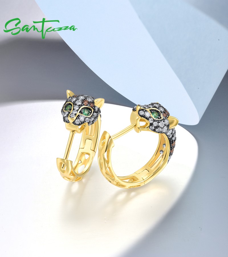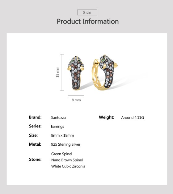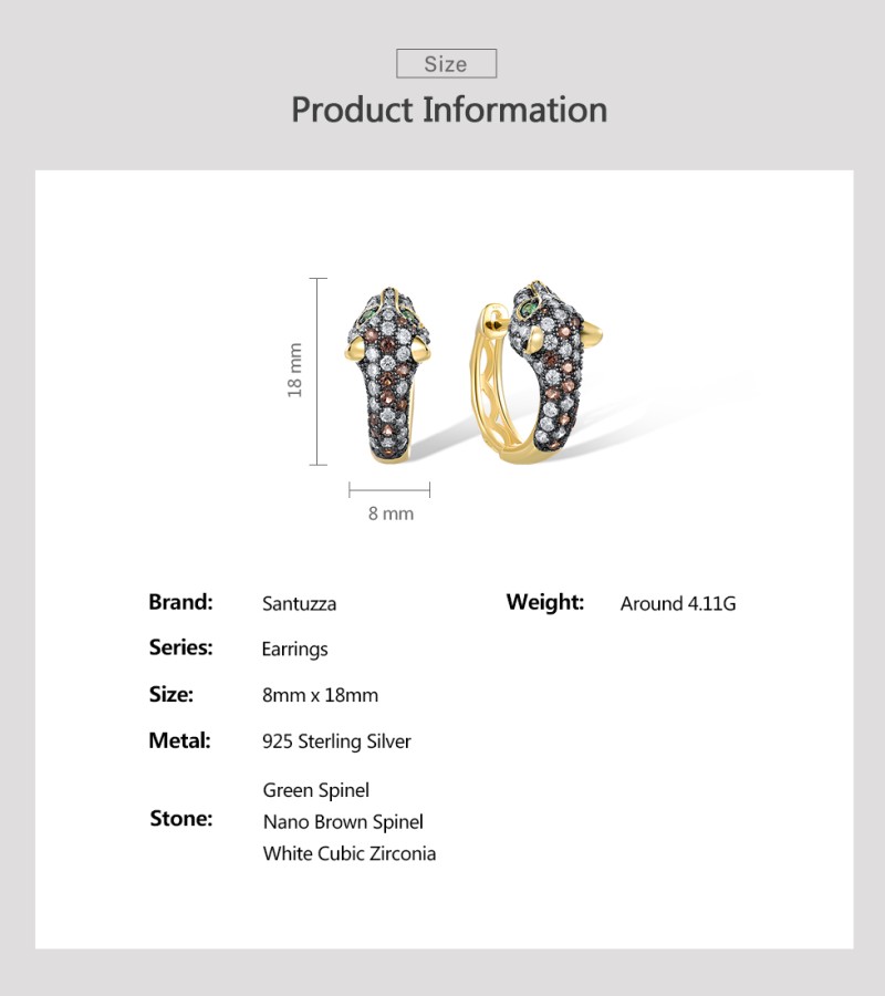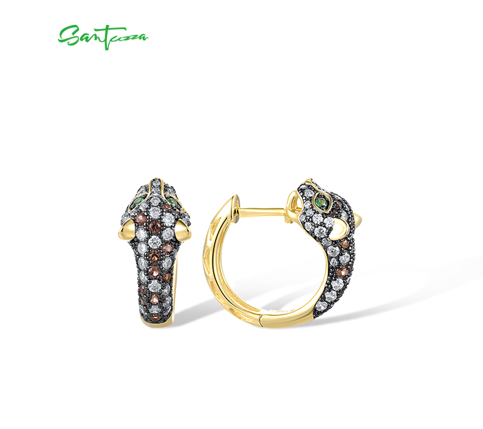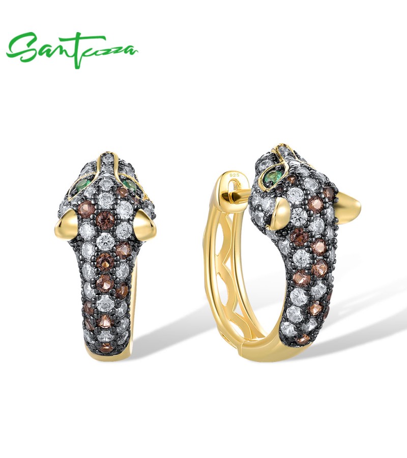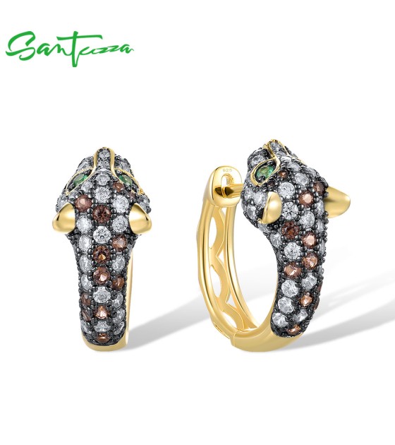 SANTUZZA 925 Sterling Silver Earrings Nano Brown Spinel White CZ Leopard Animal Jewelry
