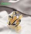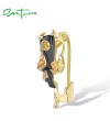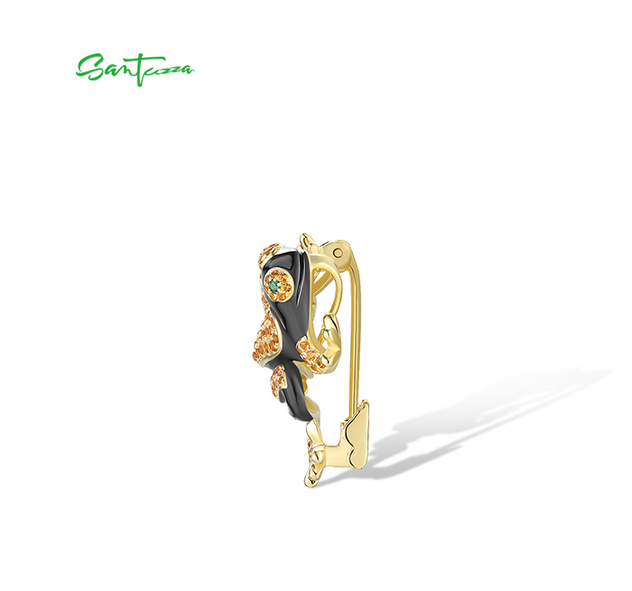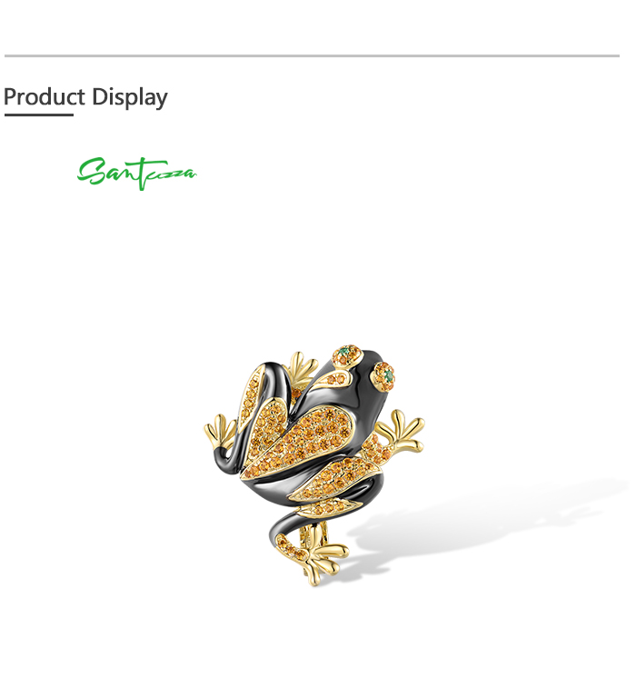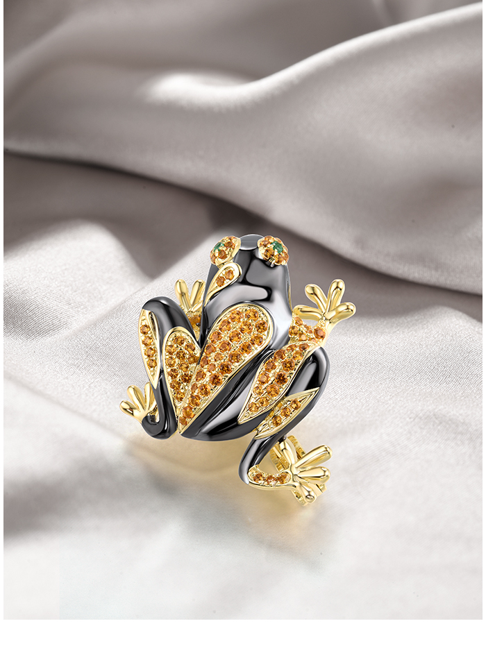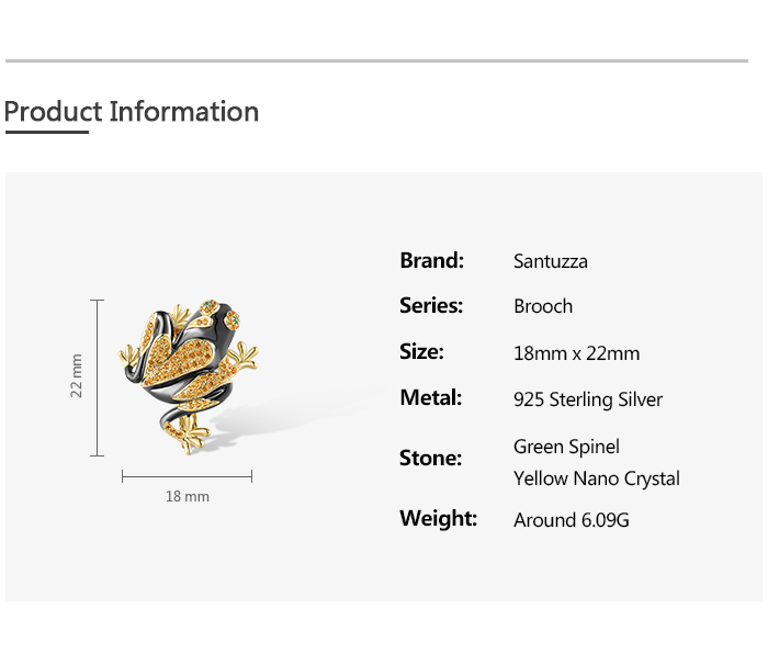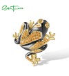 SANTUZZA 925 Silver Brooch Yellow Nano Crystal Black Enamel Frog Fine Jewelry