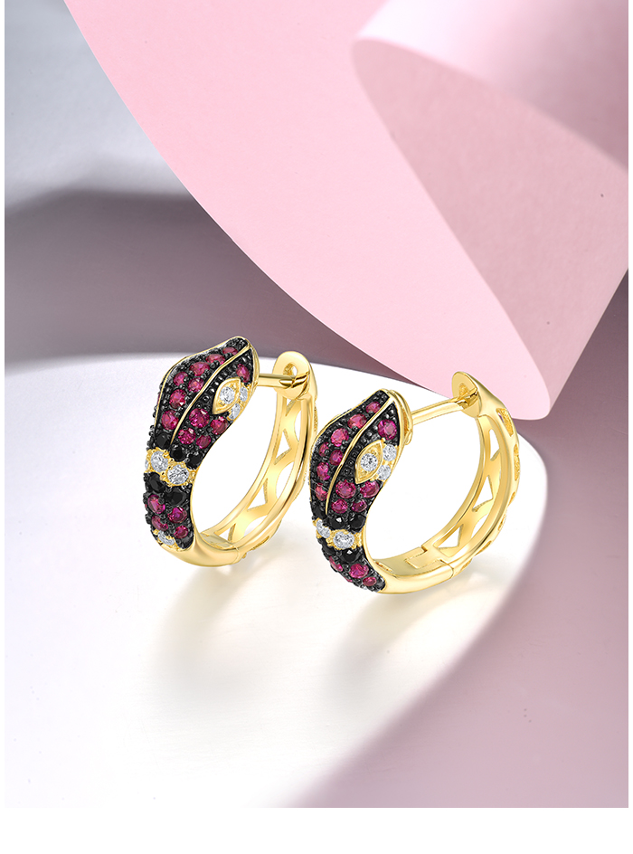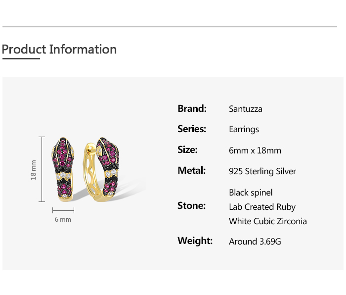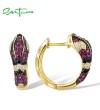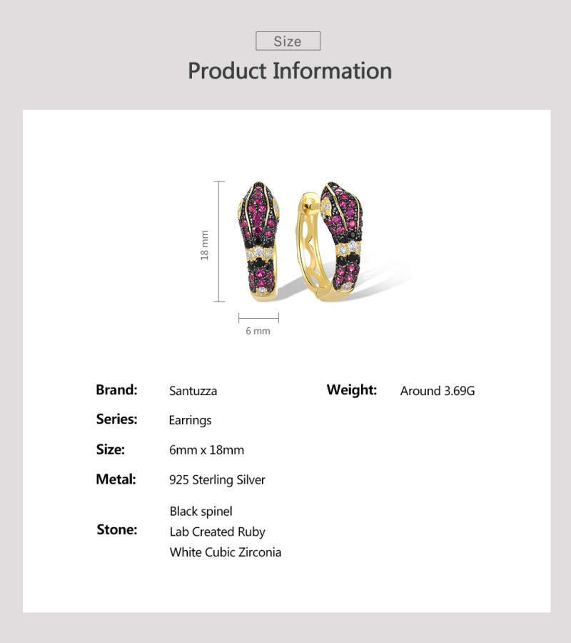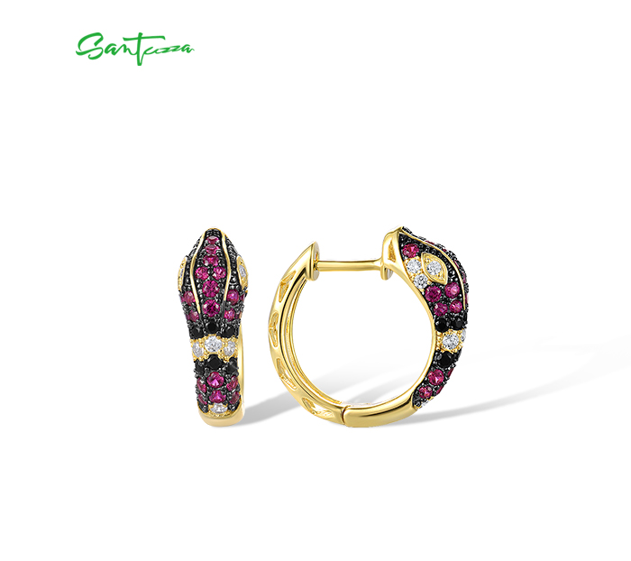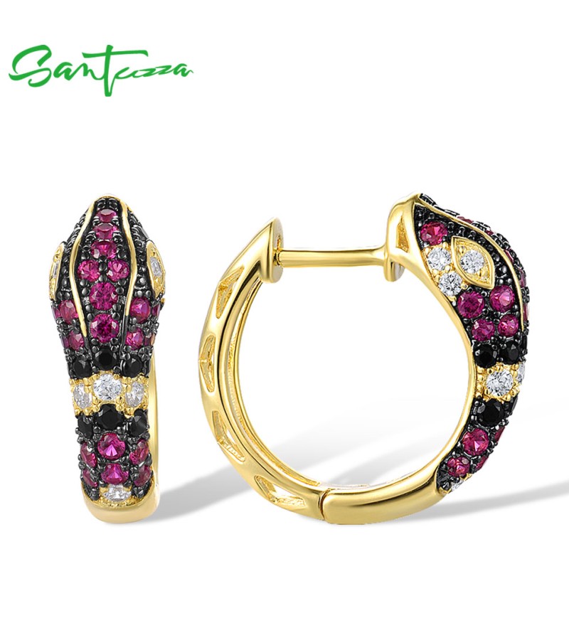 SANTUZZA 925 Sterling Silver Hoop Earrings Black Red Stones White CZ Snake Animal Fine Jewelry