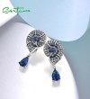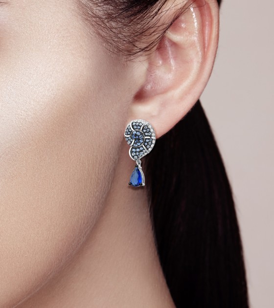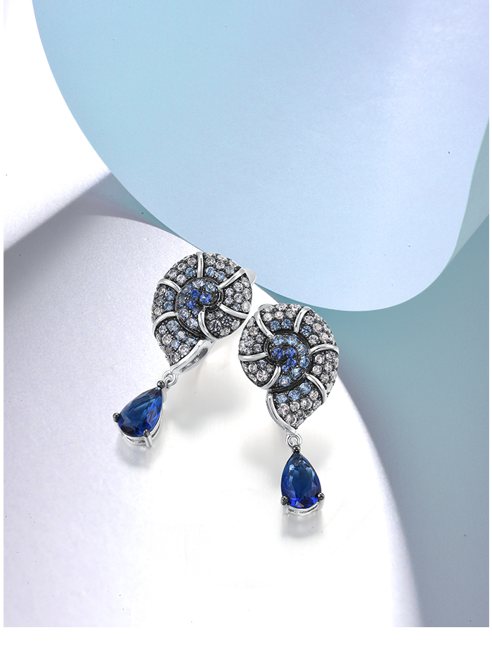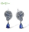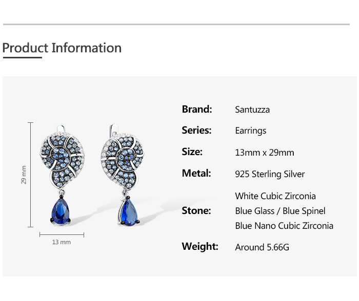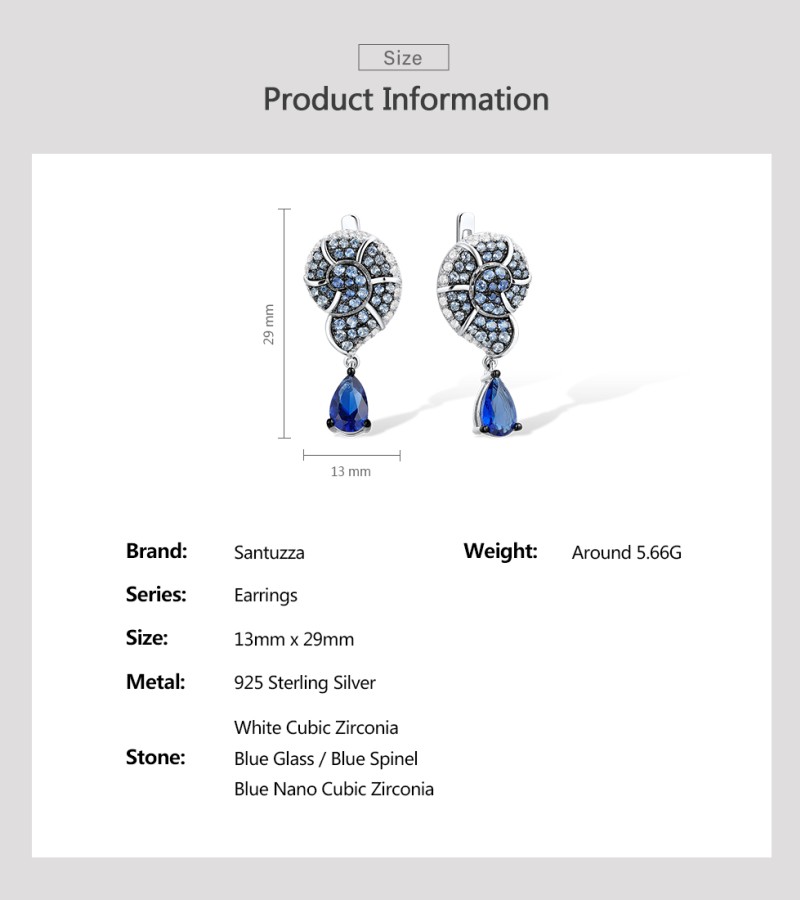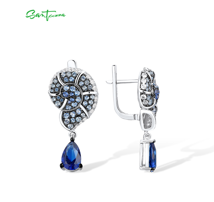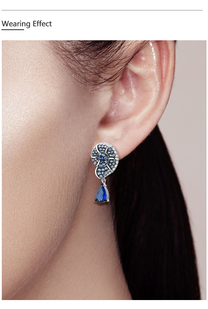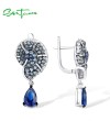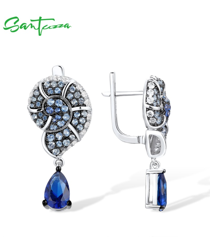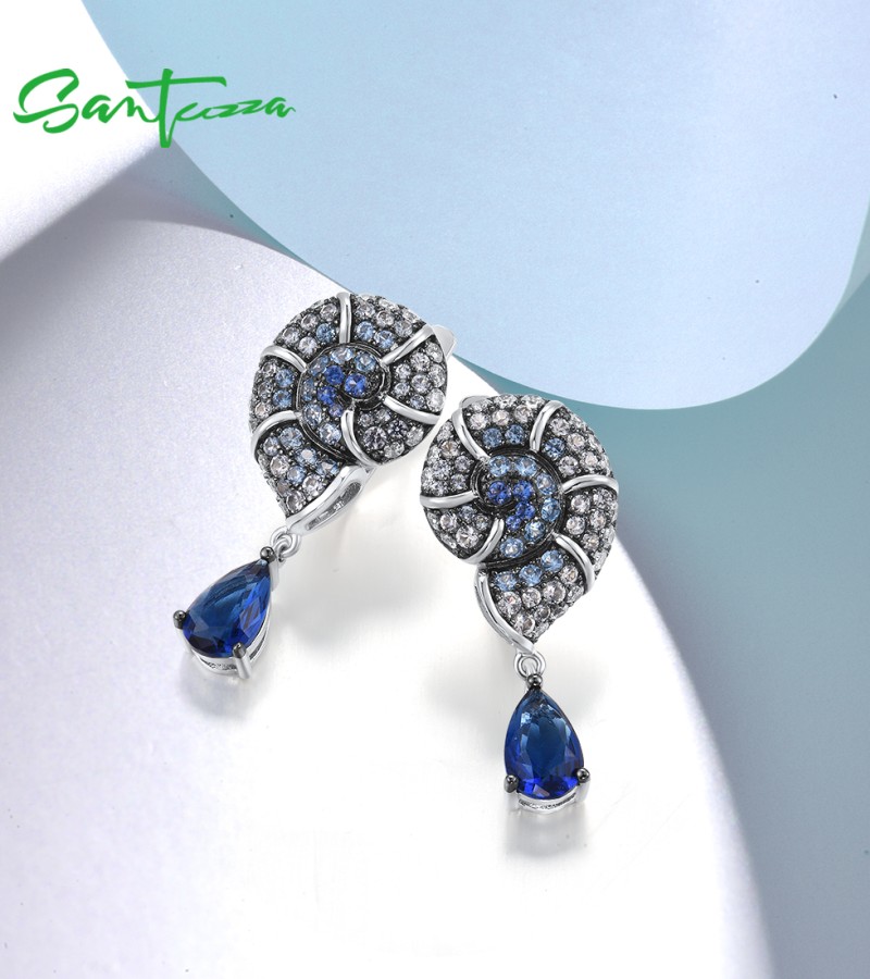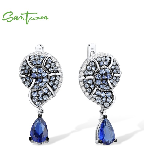 SANTUZZA 925 Sterling Silver Drop Earrings Blue White Cubic Zirconia Conch Shell Ocean Jewelry
