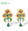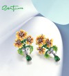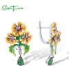 SANTUZZA 925 Sterling Silver Drop Earrings Green Stones Enamel Yellow Flower Fine Jewelry