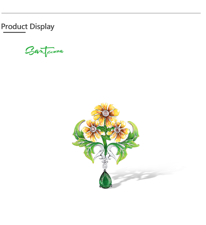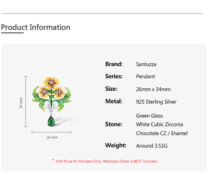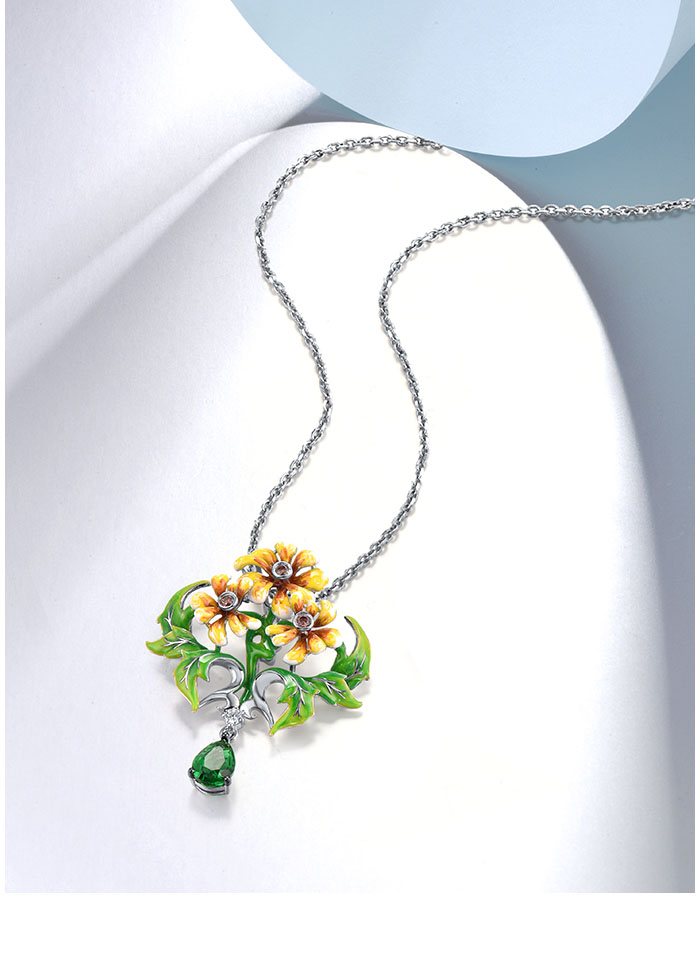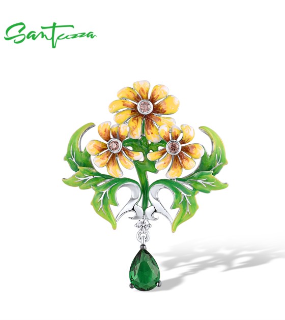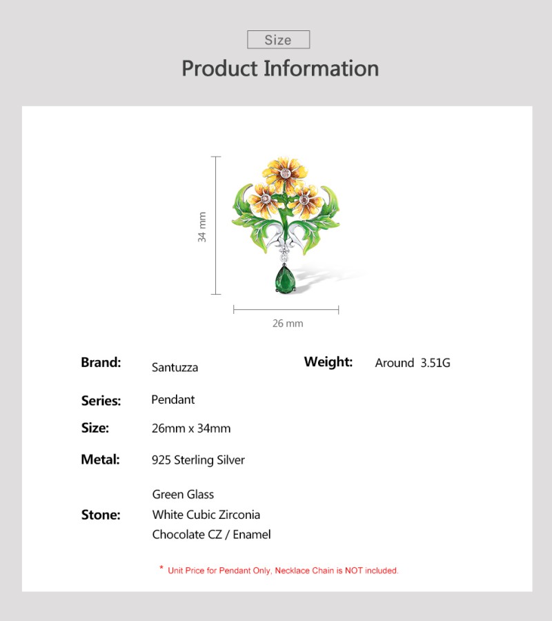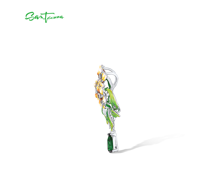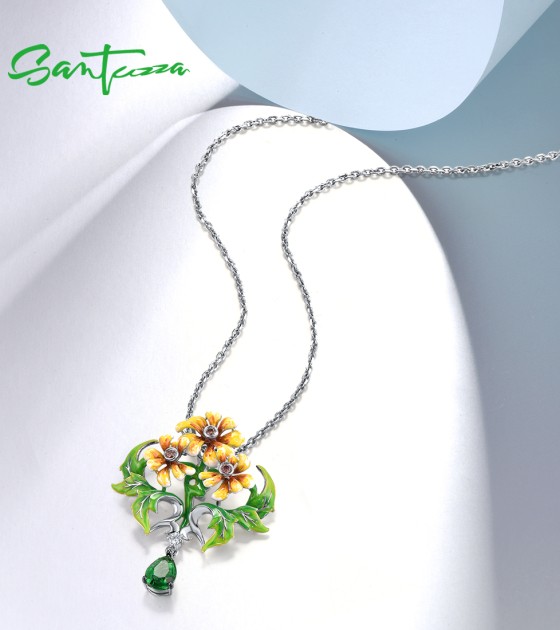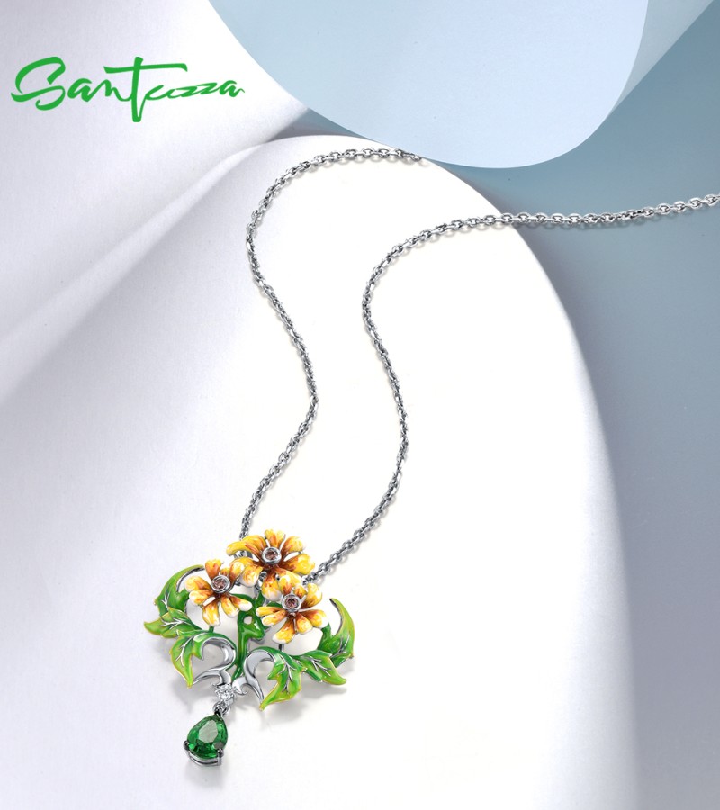 SANTUZZA 925 Sterling Silver Pendant Green Stone Enamel Yellow Flora Fine Jewelry