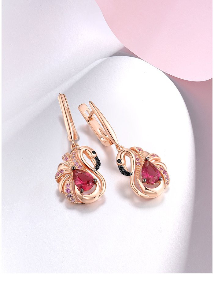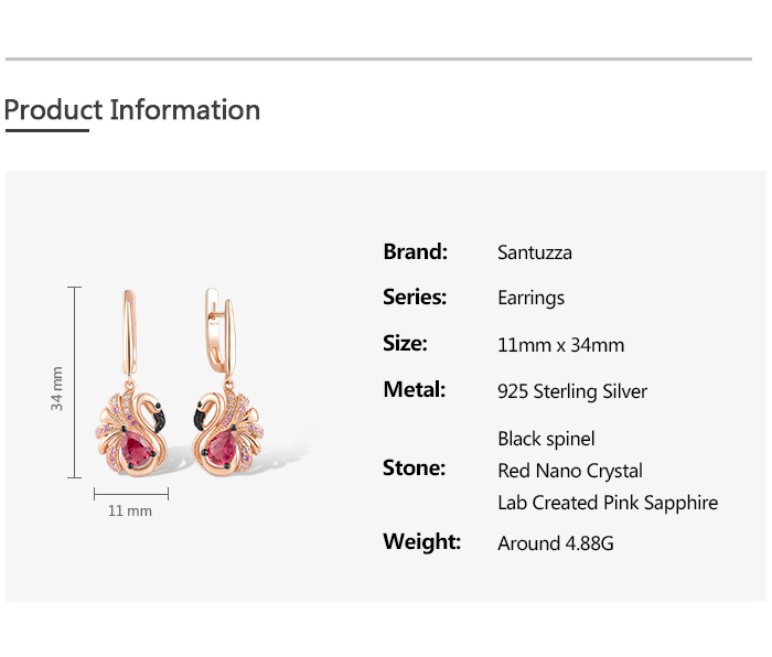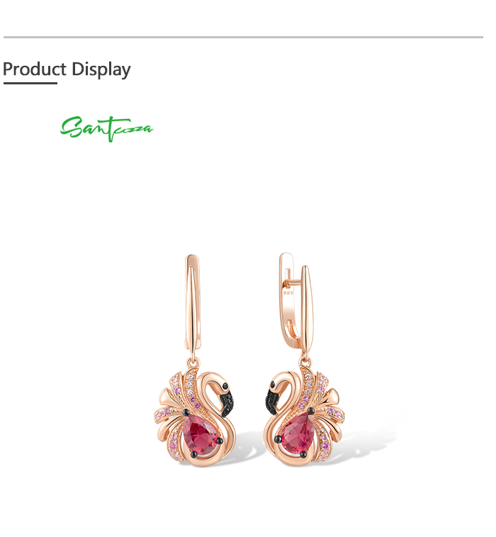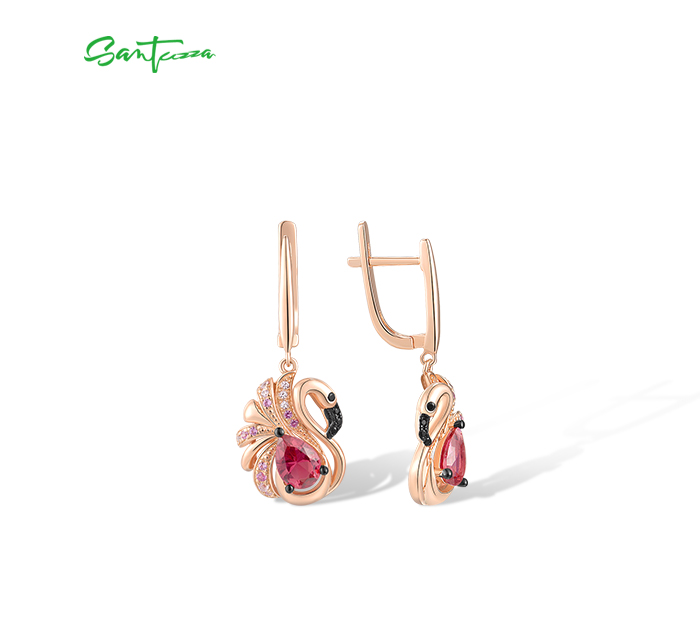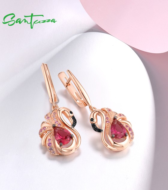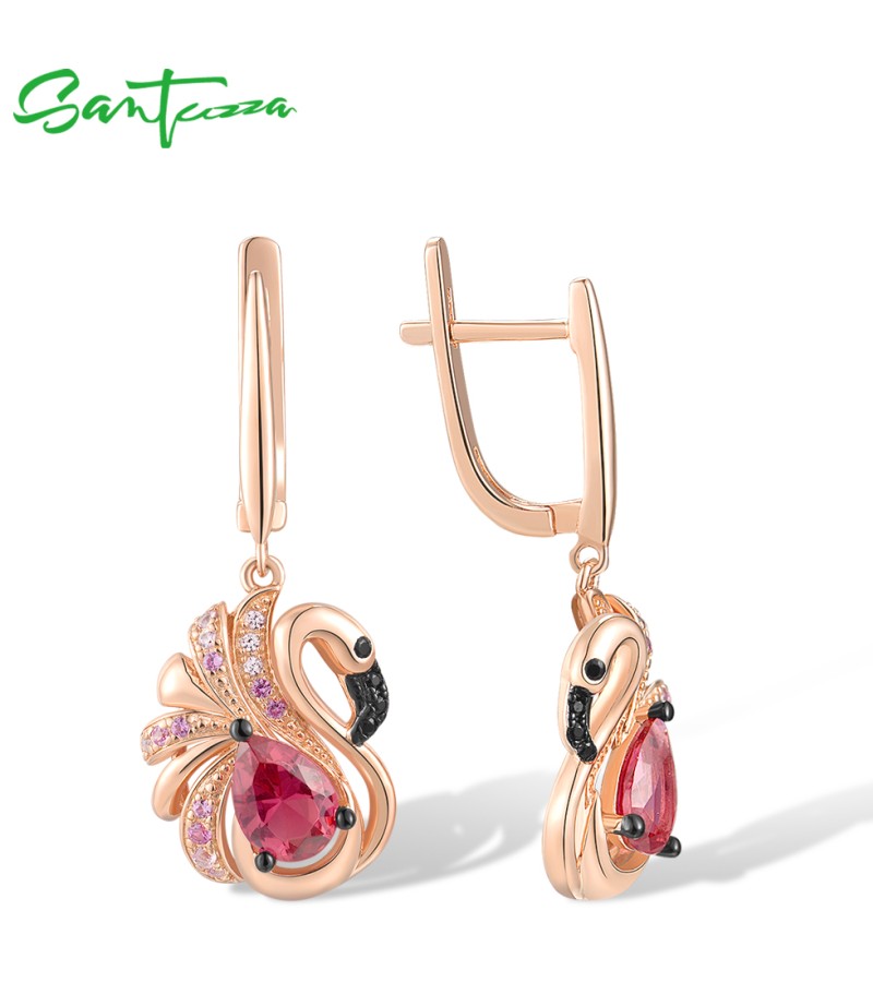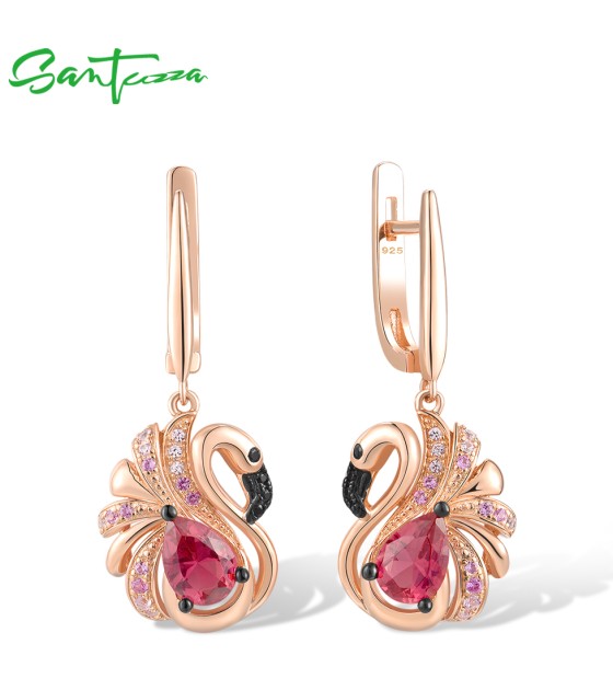 SANTUZZA 925 Sterling Silver Earrings Created Sapphire Red Crystal Pink Flamingo Fine Jewelry