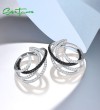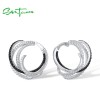 SANTUZZA 925 Sterling Silver Earrings Black White Stone Linear Geometric Fine Jewelry