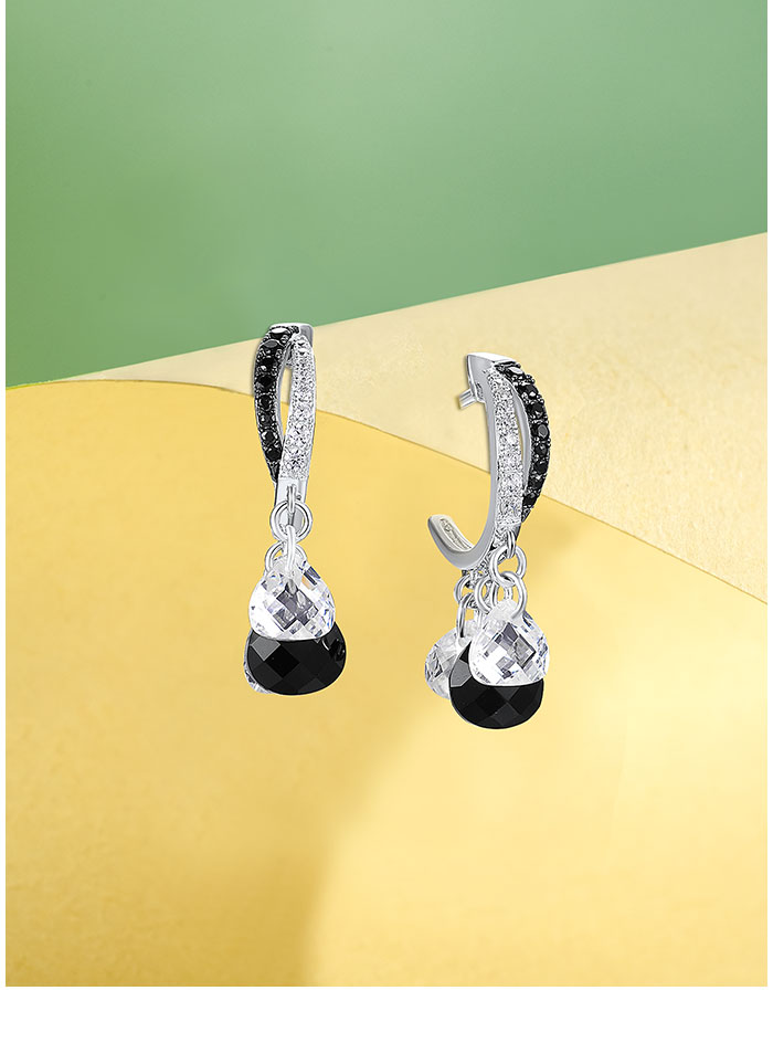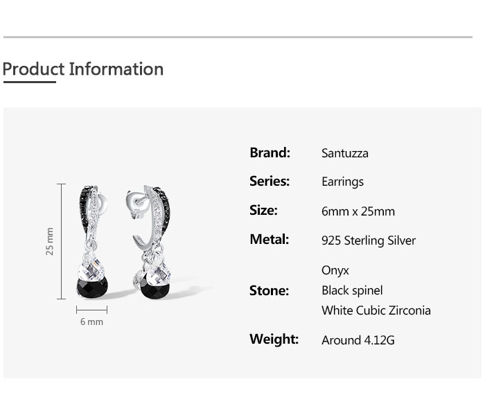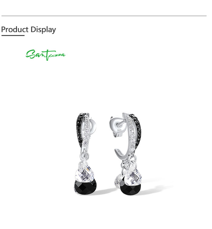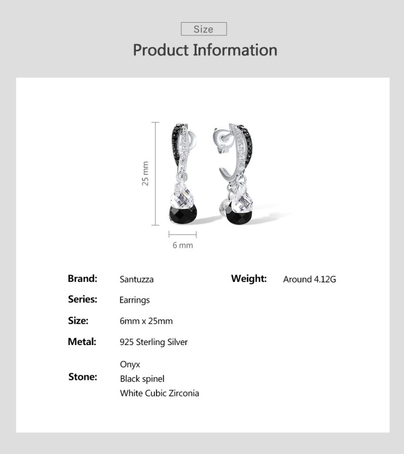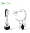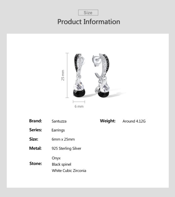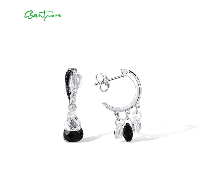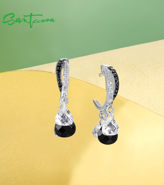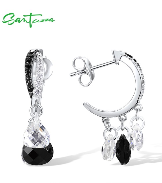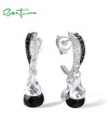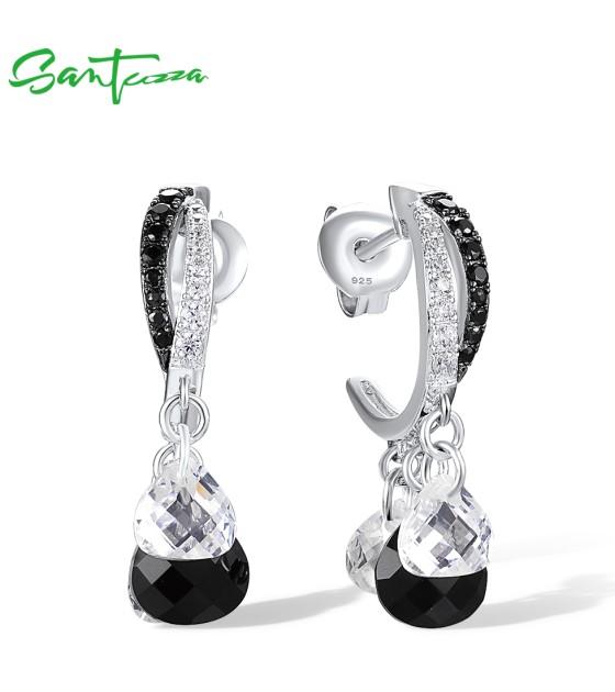 SANTUZZA 925 Sterling Silver Stud Earrings White CZ Black Spinel Dangling Fine Jewelry