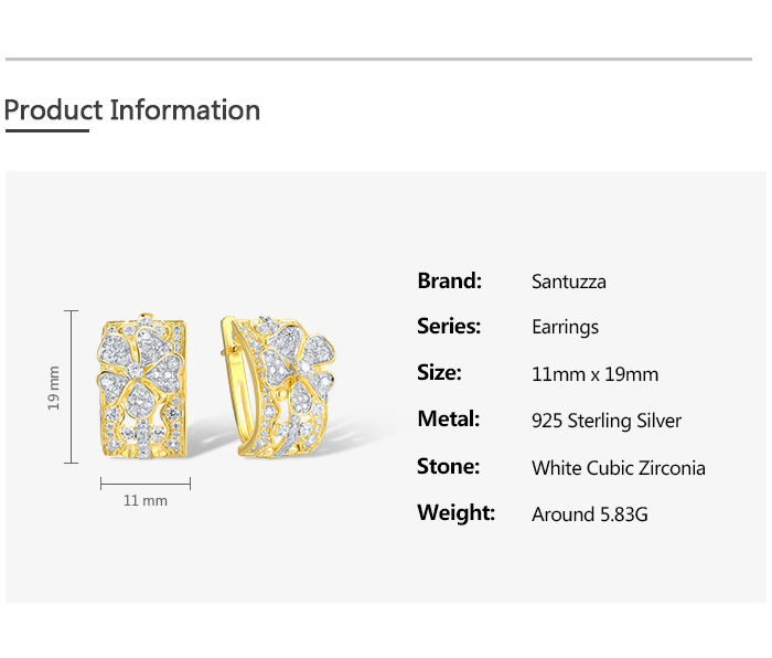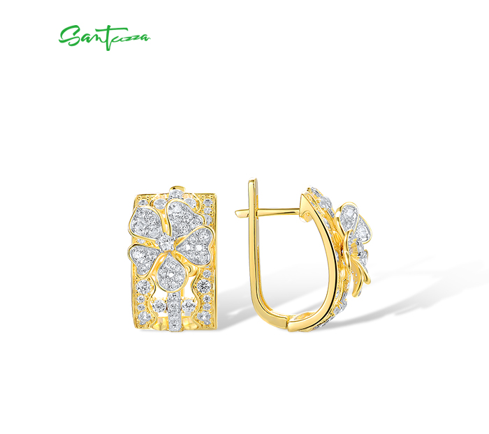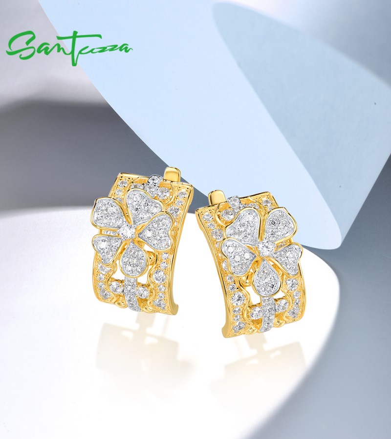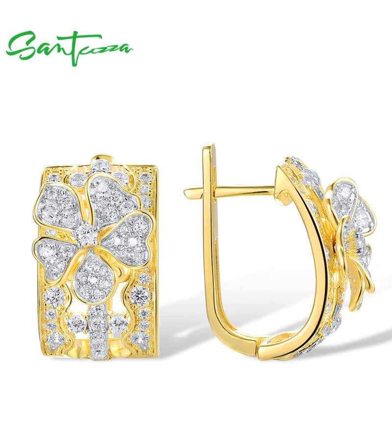 SANTUZZA 925 Sterling Silver Earrings White Cubic Zirconia Flower Fine Jewelry