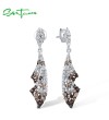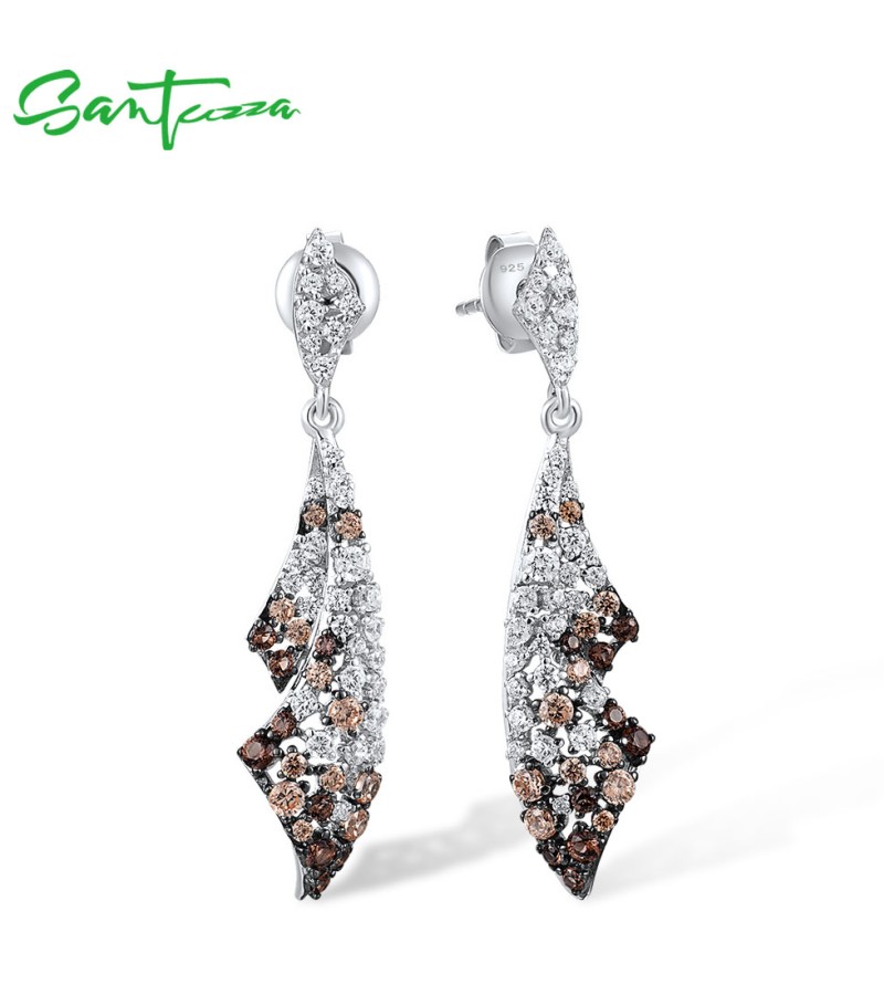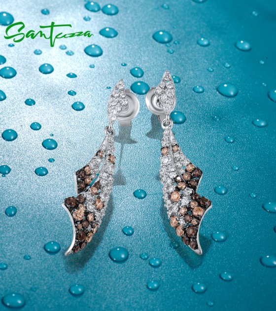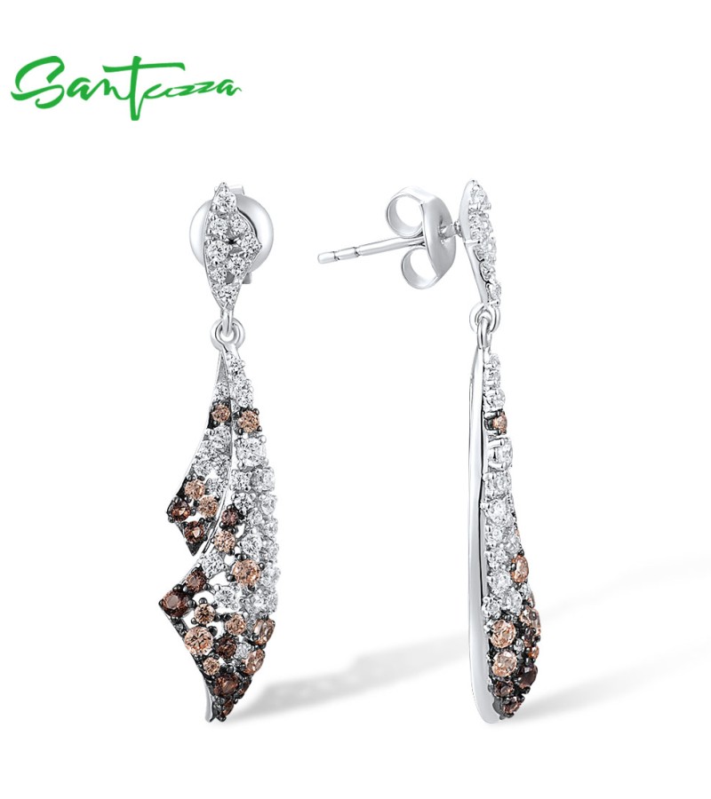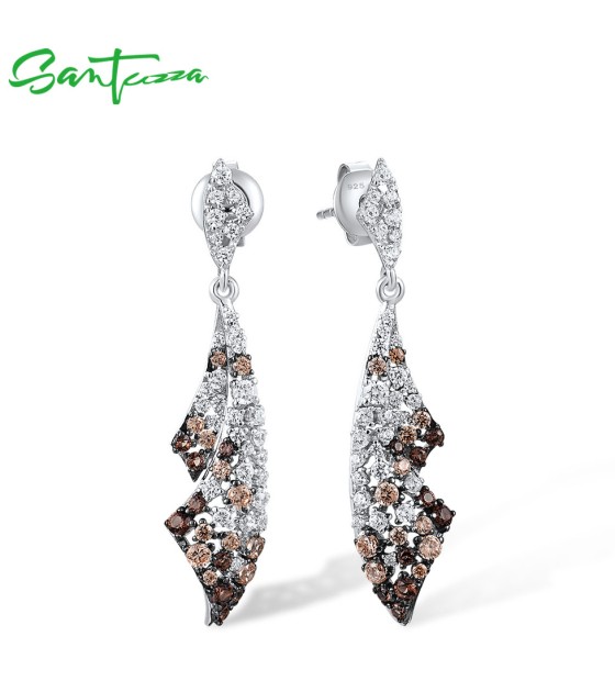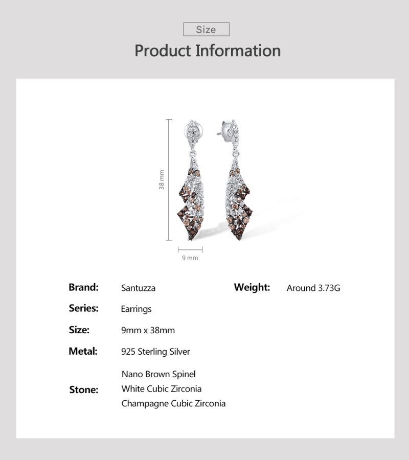 SANTUZZA 925 Sterling Silver Earrings Nano Brown Spinel Champagne CZ Dangling Fine Jewelry