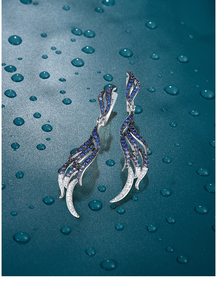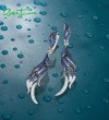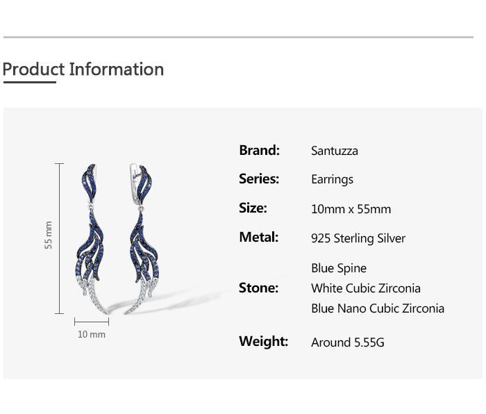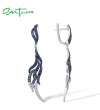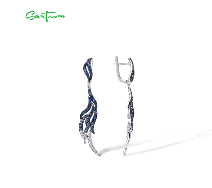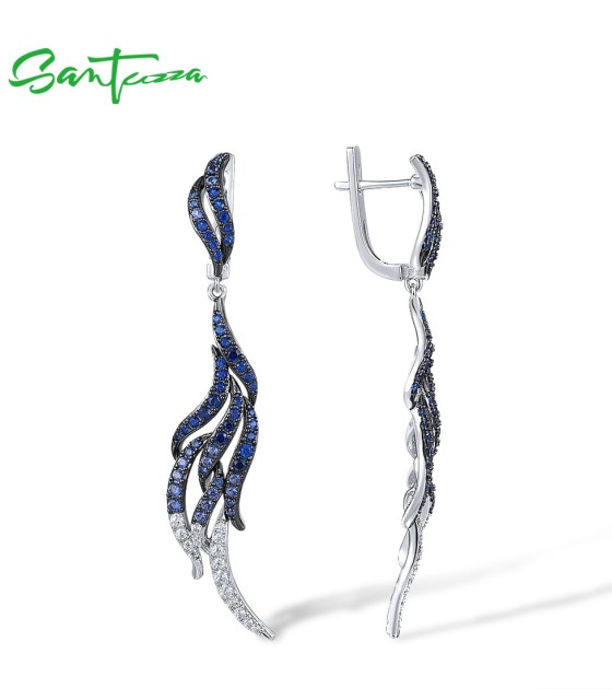 SANTUZZA 925 Sterling Silver Dangling Earrings Blue Spinel White CZ Latch Back Feather Jewelry