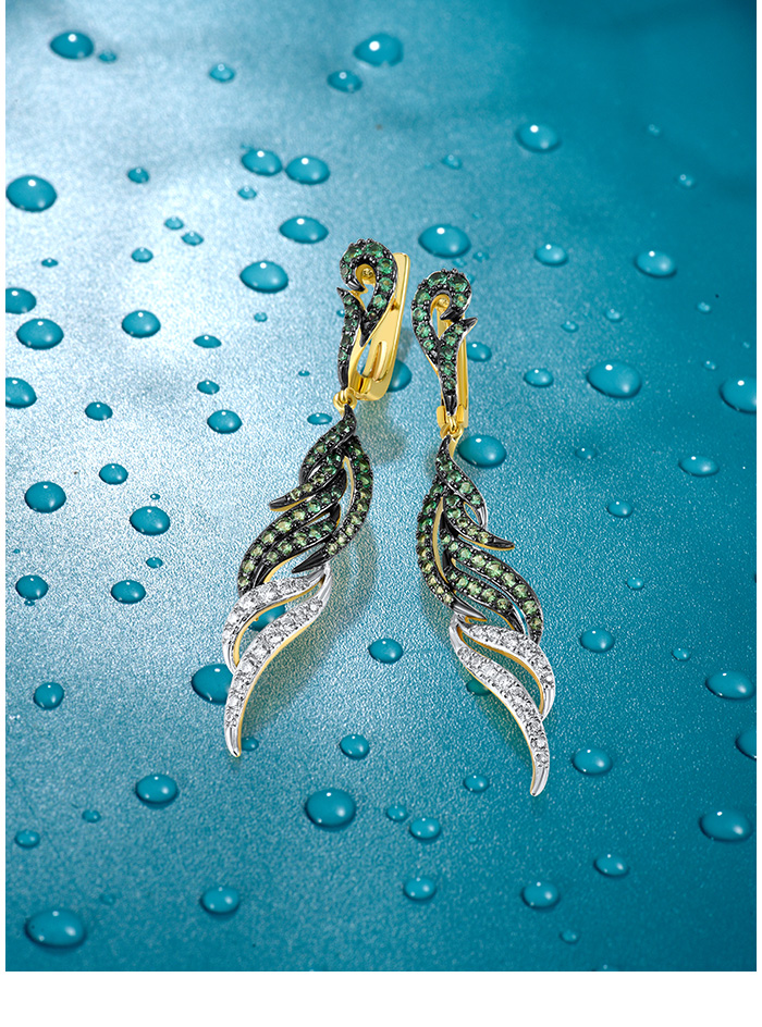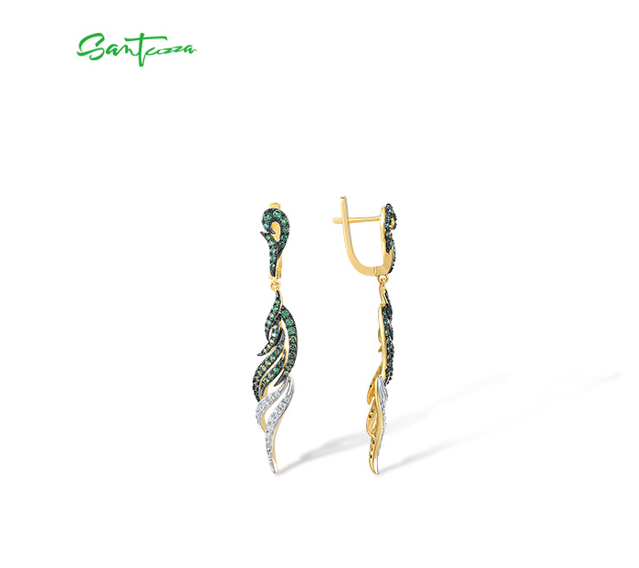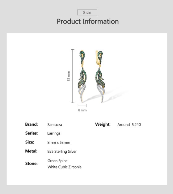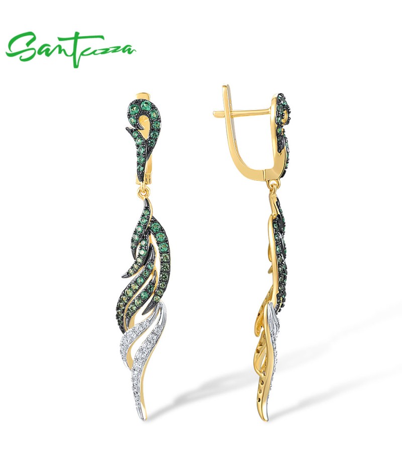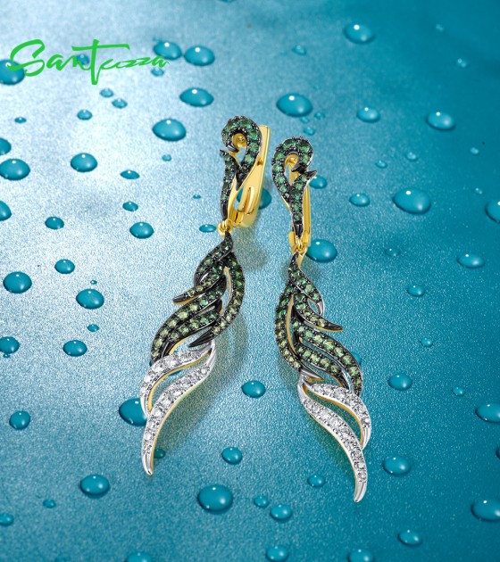 SANTUZZA Pure 925 Sterling Silver Dangling Earrings For Women Sparkling Green Spinel White CZ Curly Fashion Fine Chic Jewelry