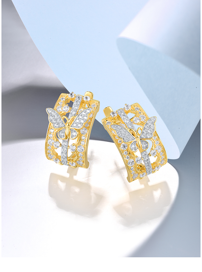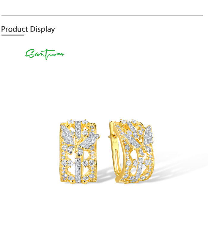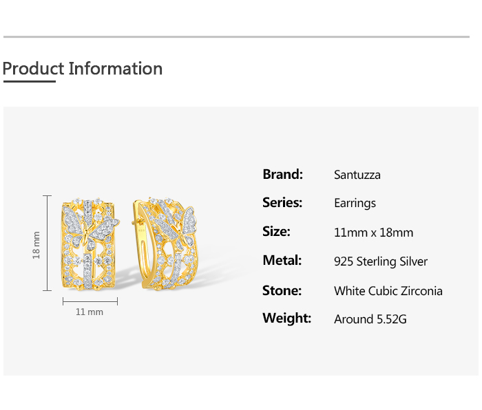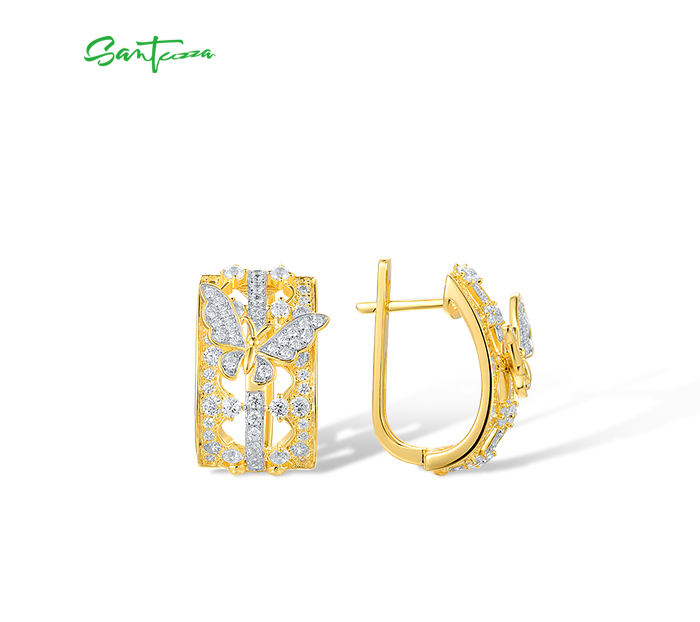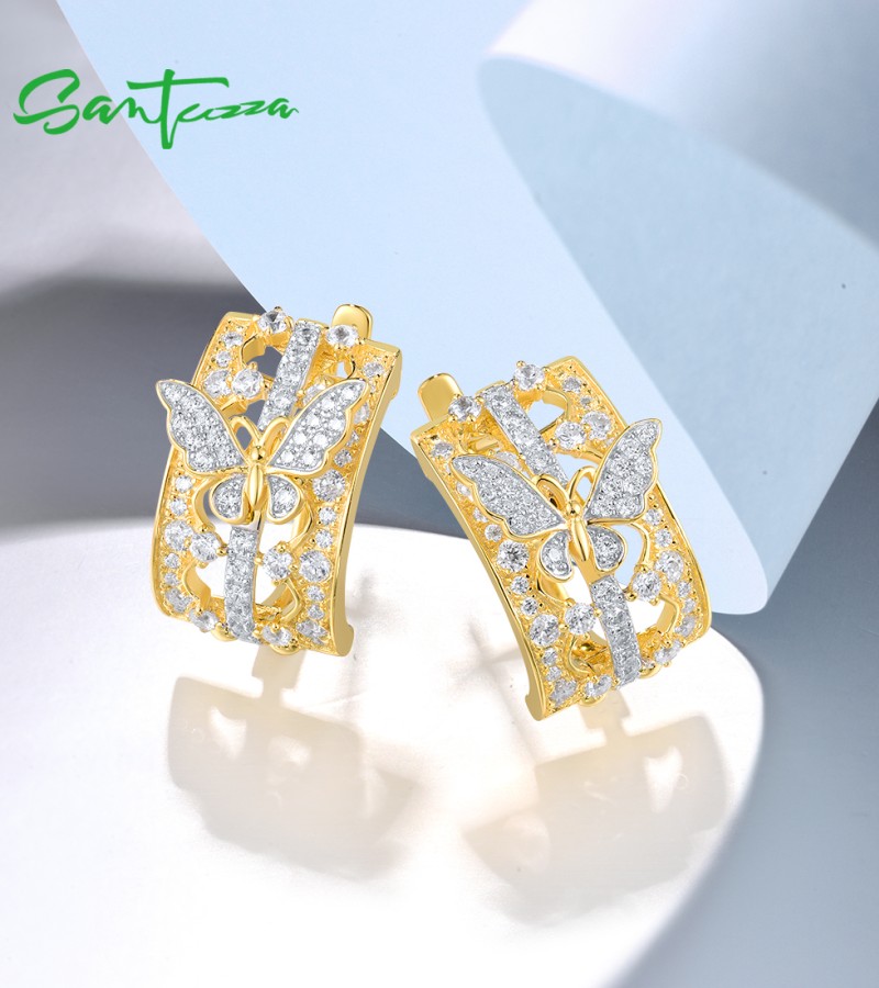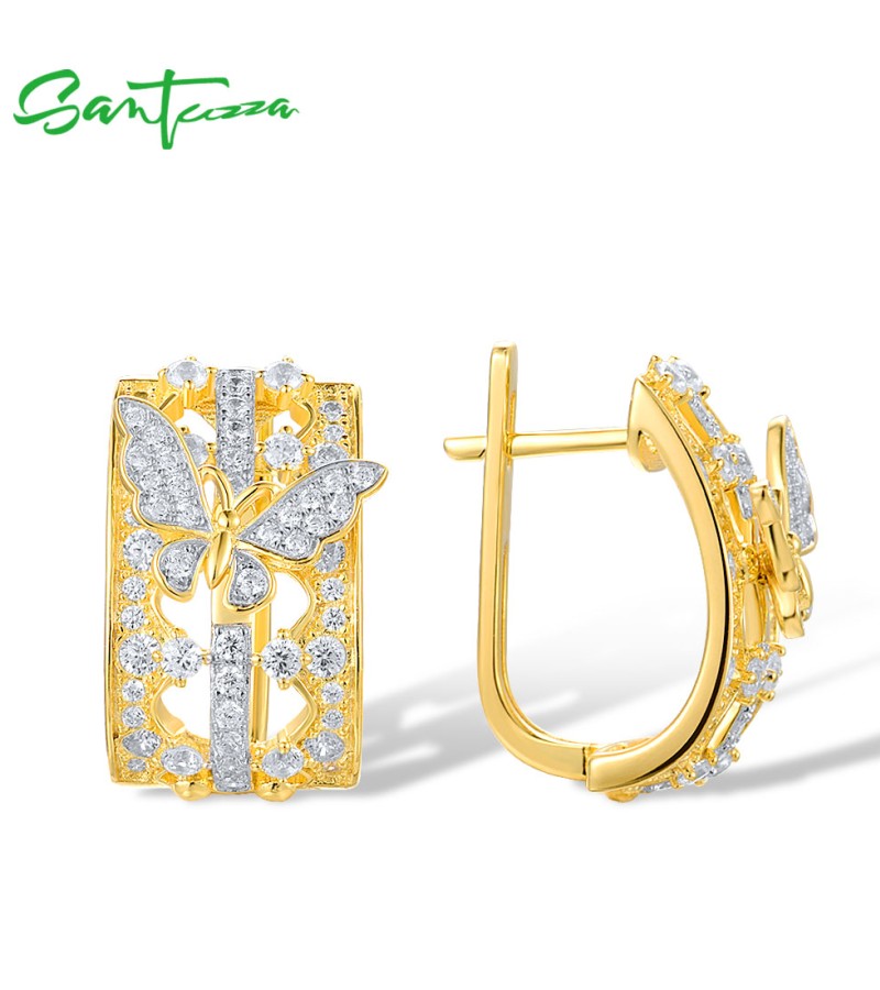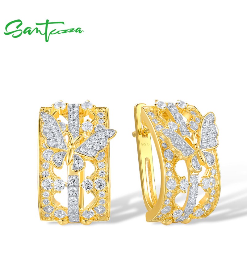 SANTUZZA 925 Sterling Silver Earrings White Cubic Zirconia Butterfly Fine Jewelry
