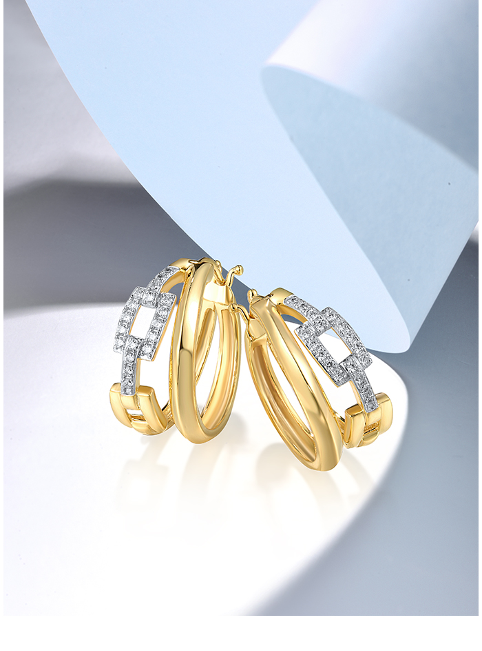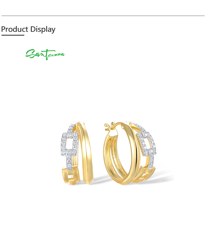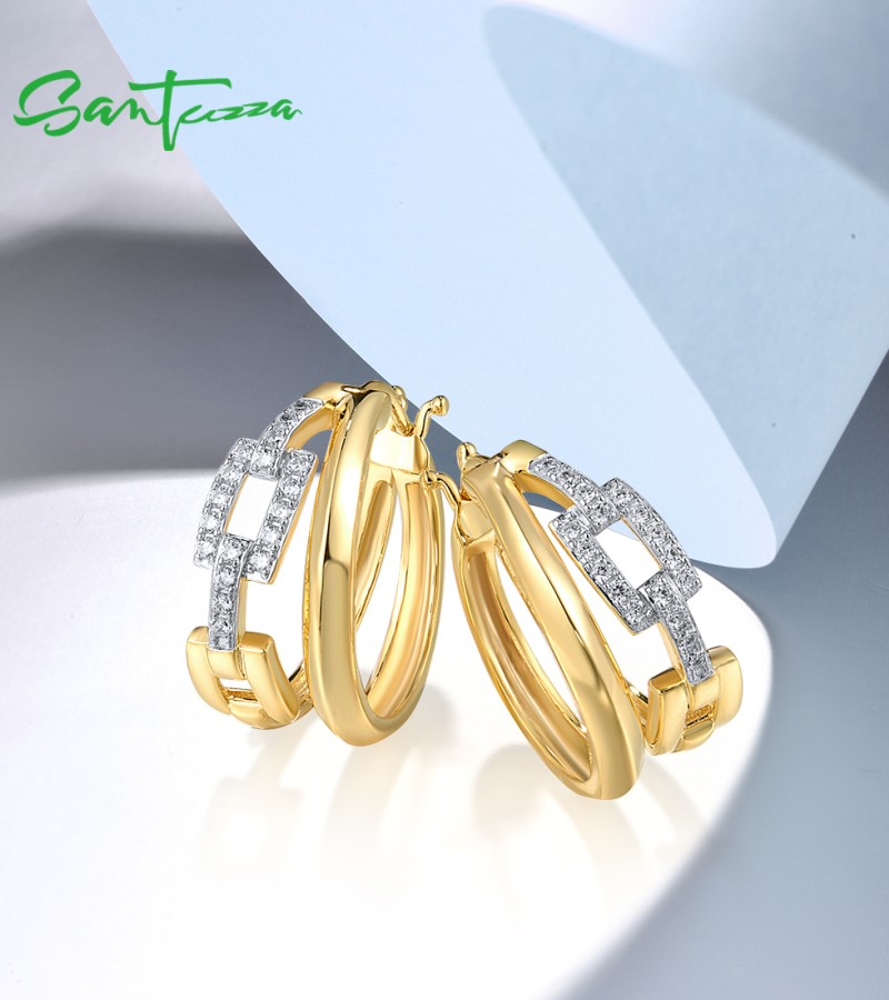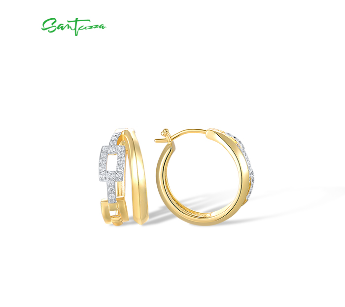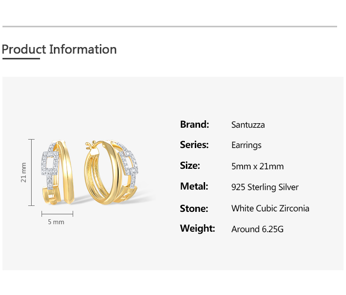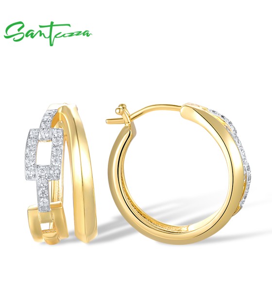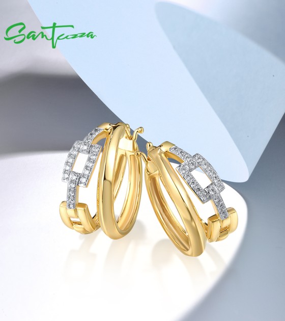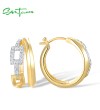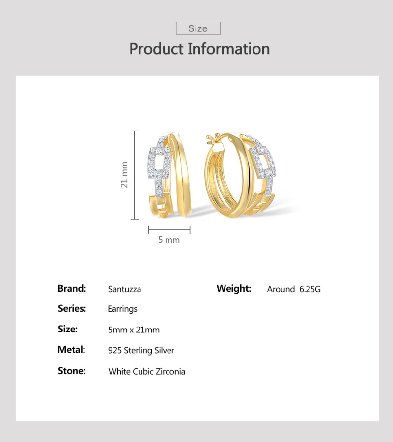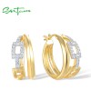SANTUZZA 925 Sterling Silver Hoop Earrings White Cubic Zirconia Geometric Fine Jewelry