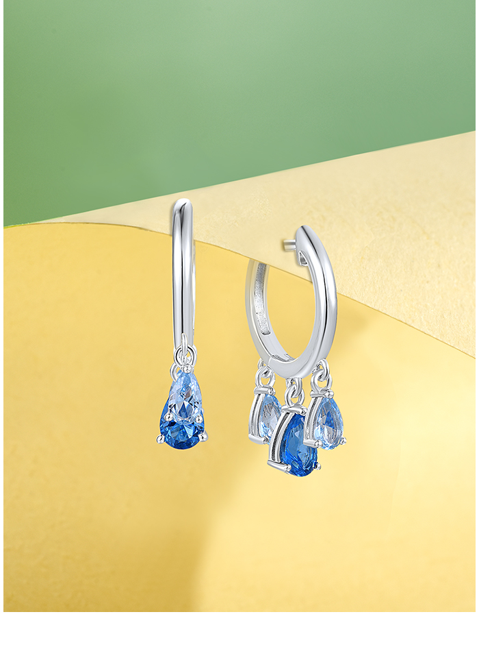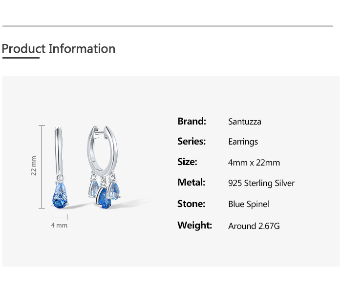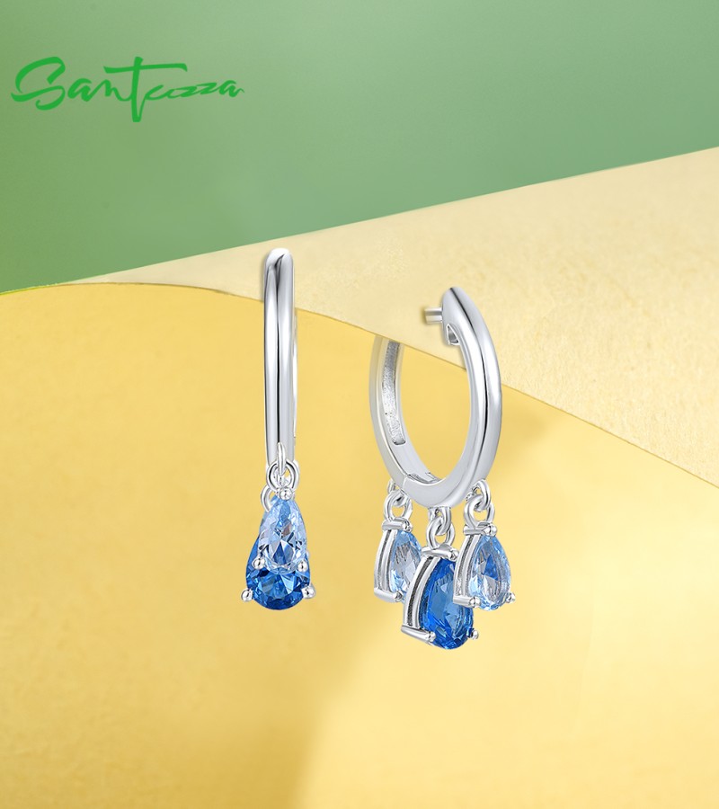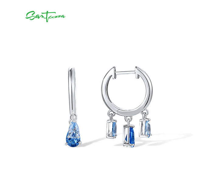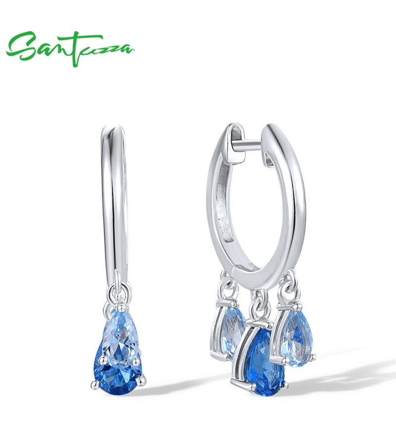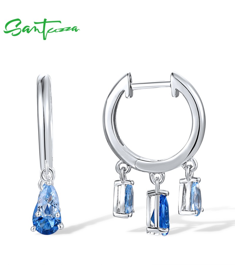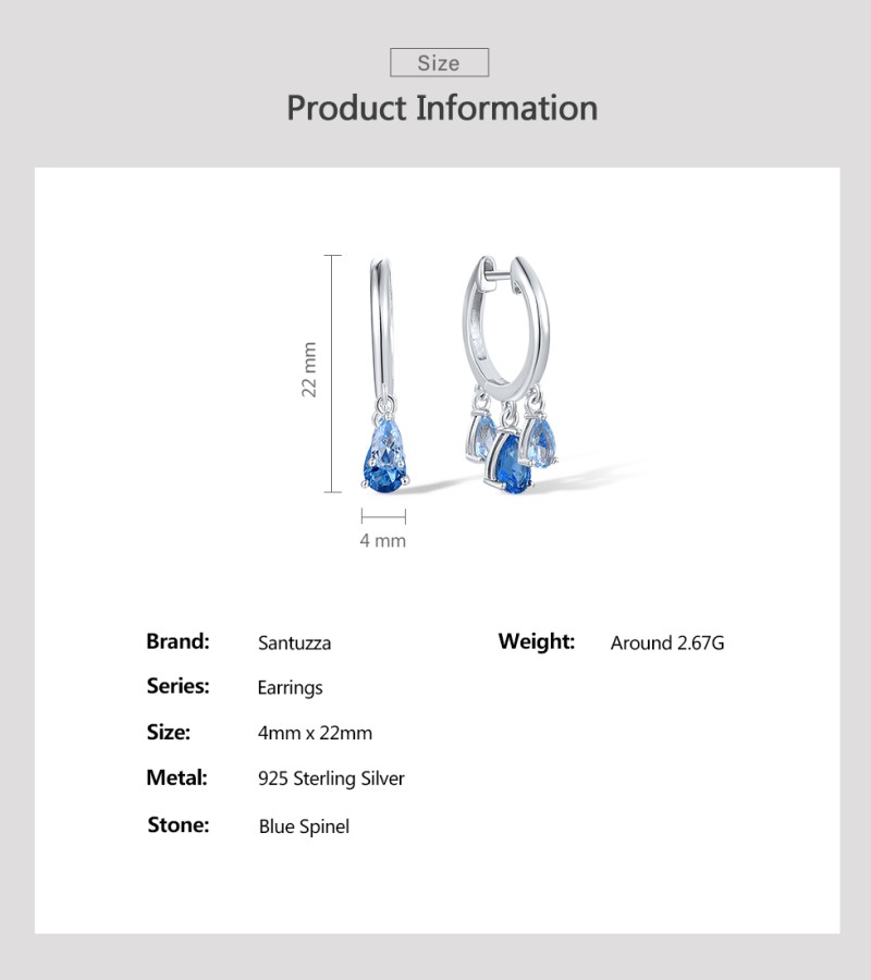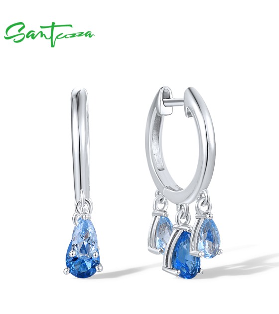 SANTUZZA 925 Sterling Silver Dangling Earrings Blue Spinel Hoop Delicate Jewelry