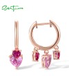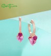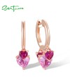 SANTUZZA 925 Sterling Silver Drop Earrings Created Ruby Pink Heart Hoop Fine Jewelry