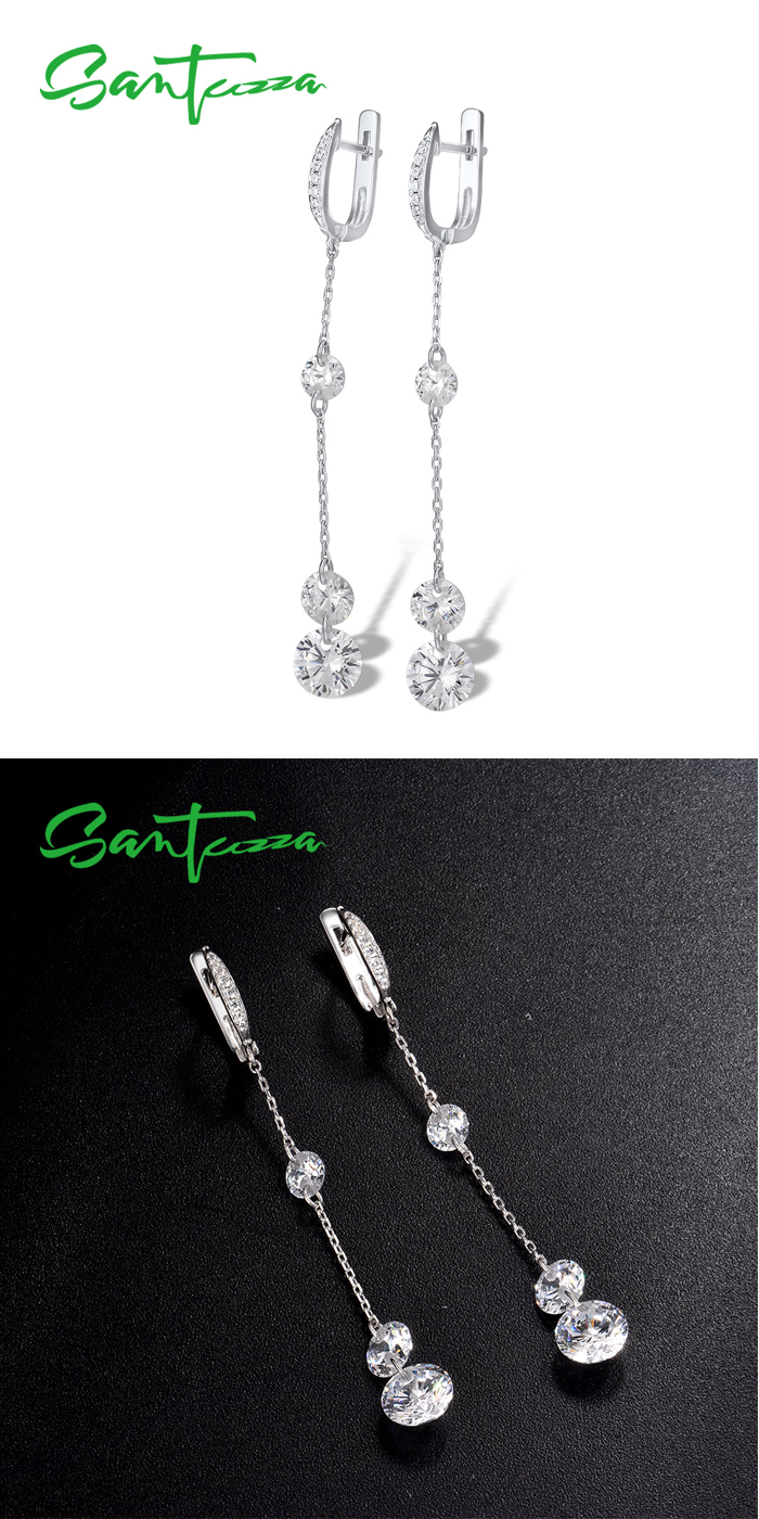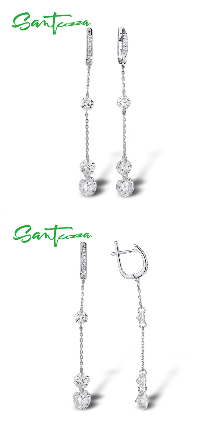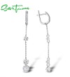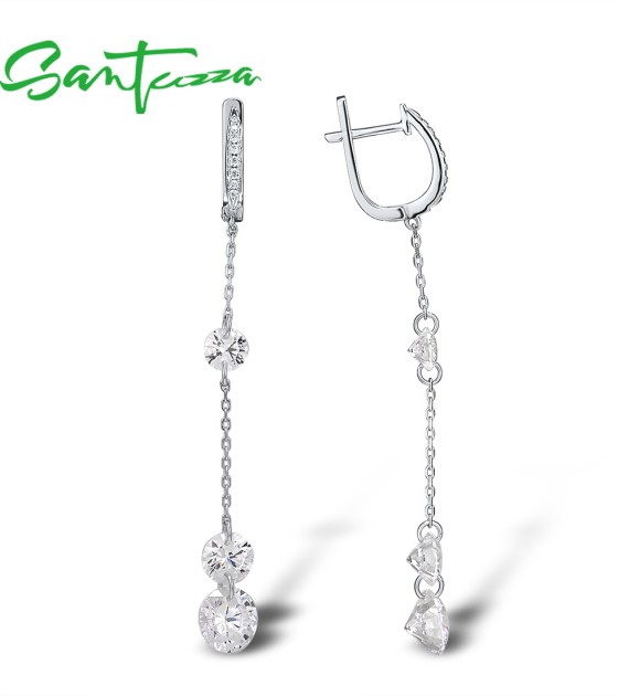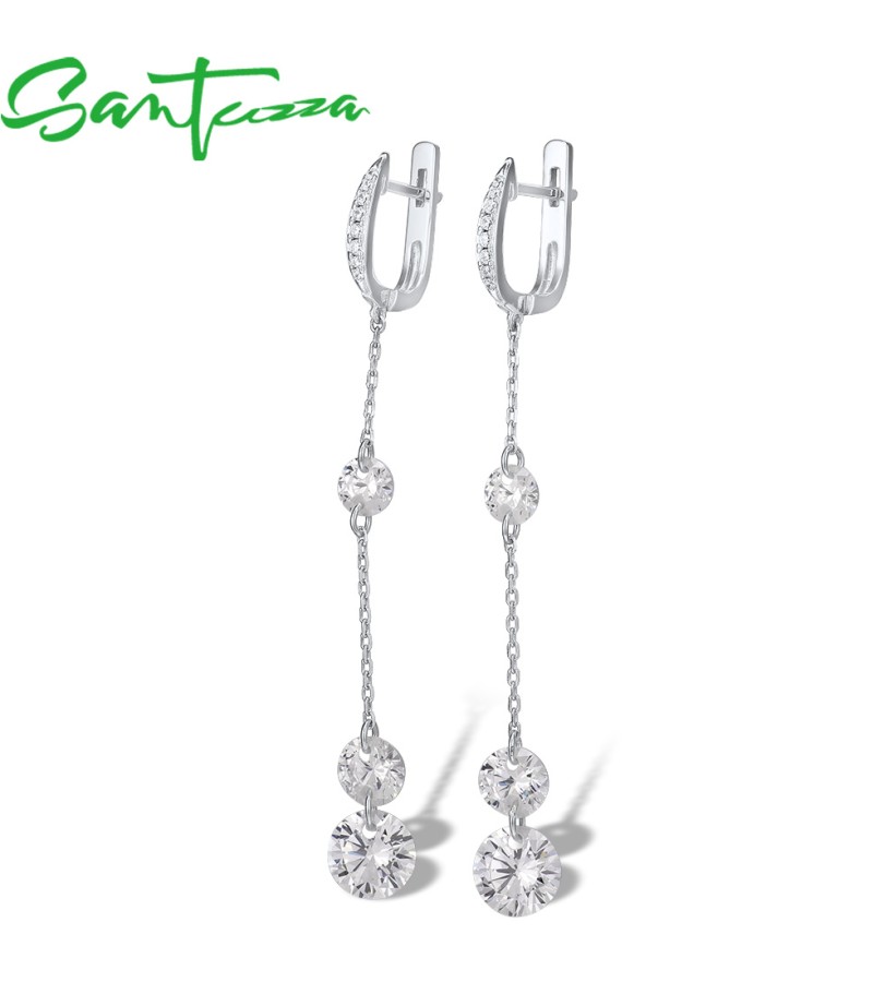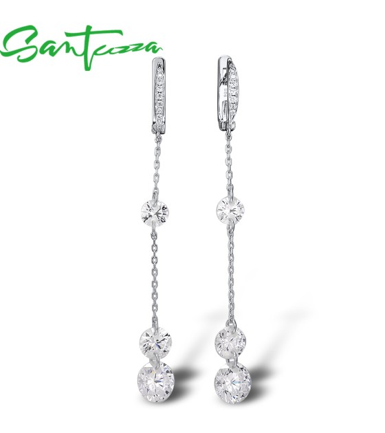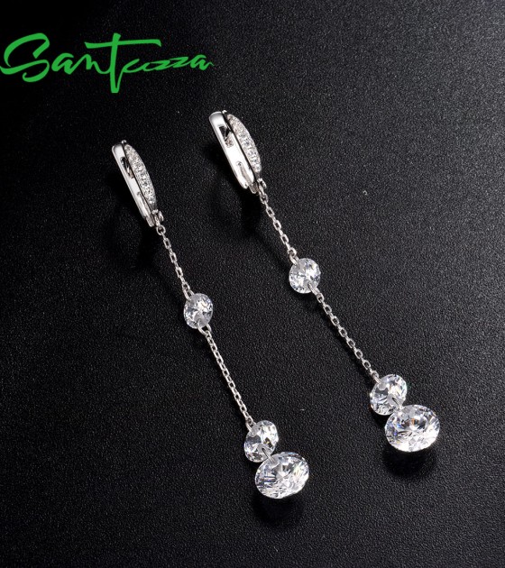 SANTUZZA 925 Sterling Silver Earrings White Cubic Zirconia Long Drop Earrings Fine Jewelry