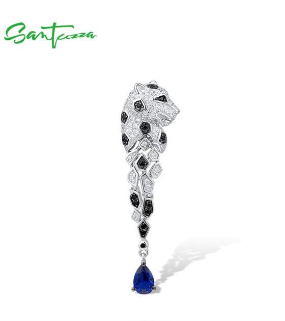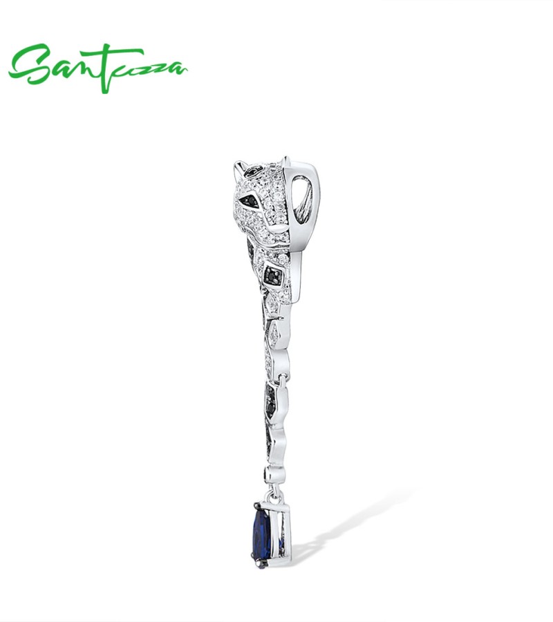 SANTUZZA 925 Sterling Silver Dangling Earrings For Women Leopard Blue Cubic Zirconia Animal Jewelry