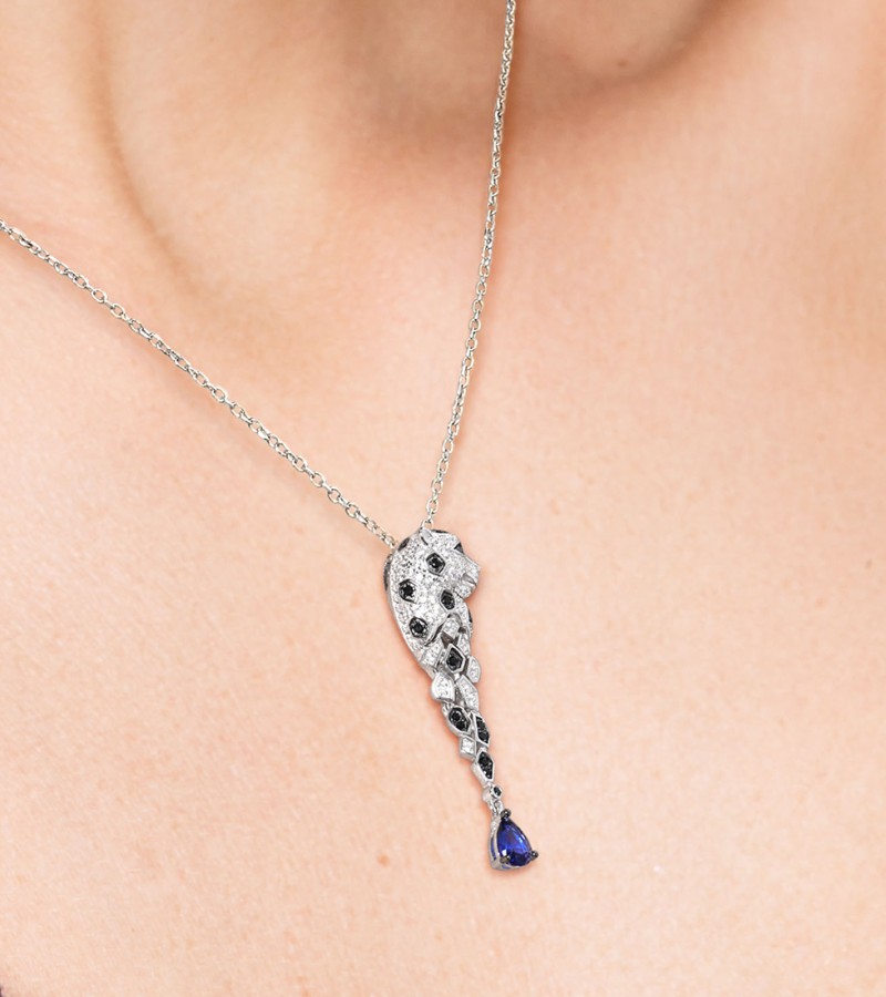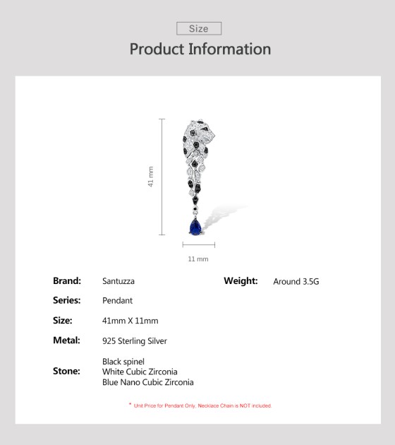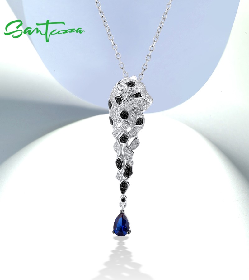SANTUZZA 925 Sterling Silver Pendant Black Spinel Leopard Animal Fine Jewelry