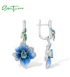 SANTUZZA Drop Earrings 925 Sterling Silver Blue Flowers Fine Jewelry Enamel