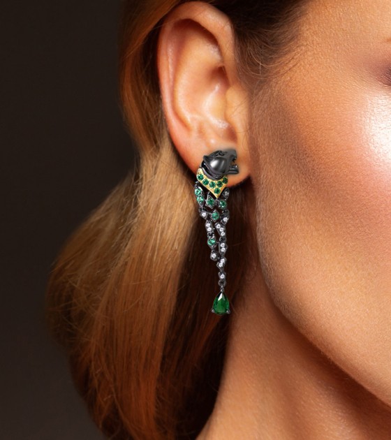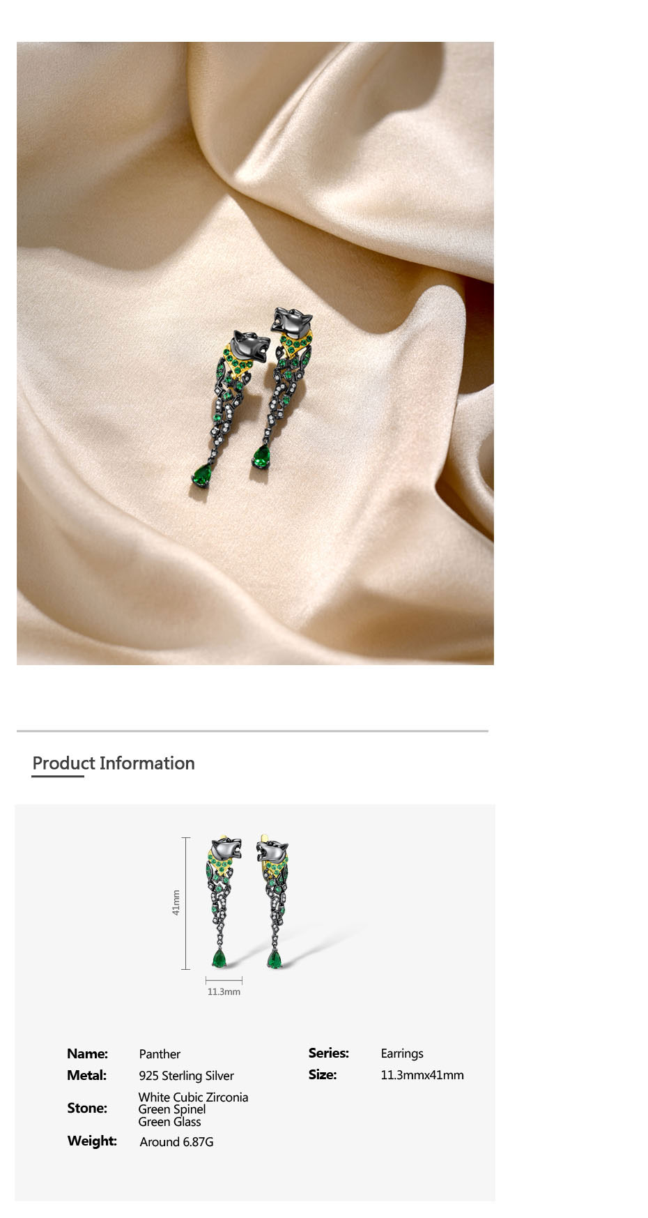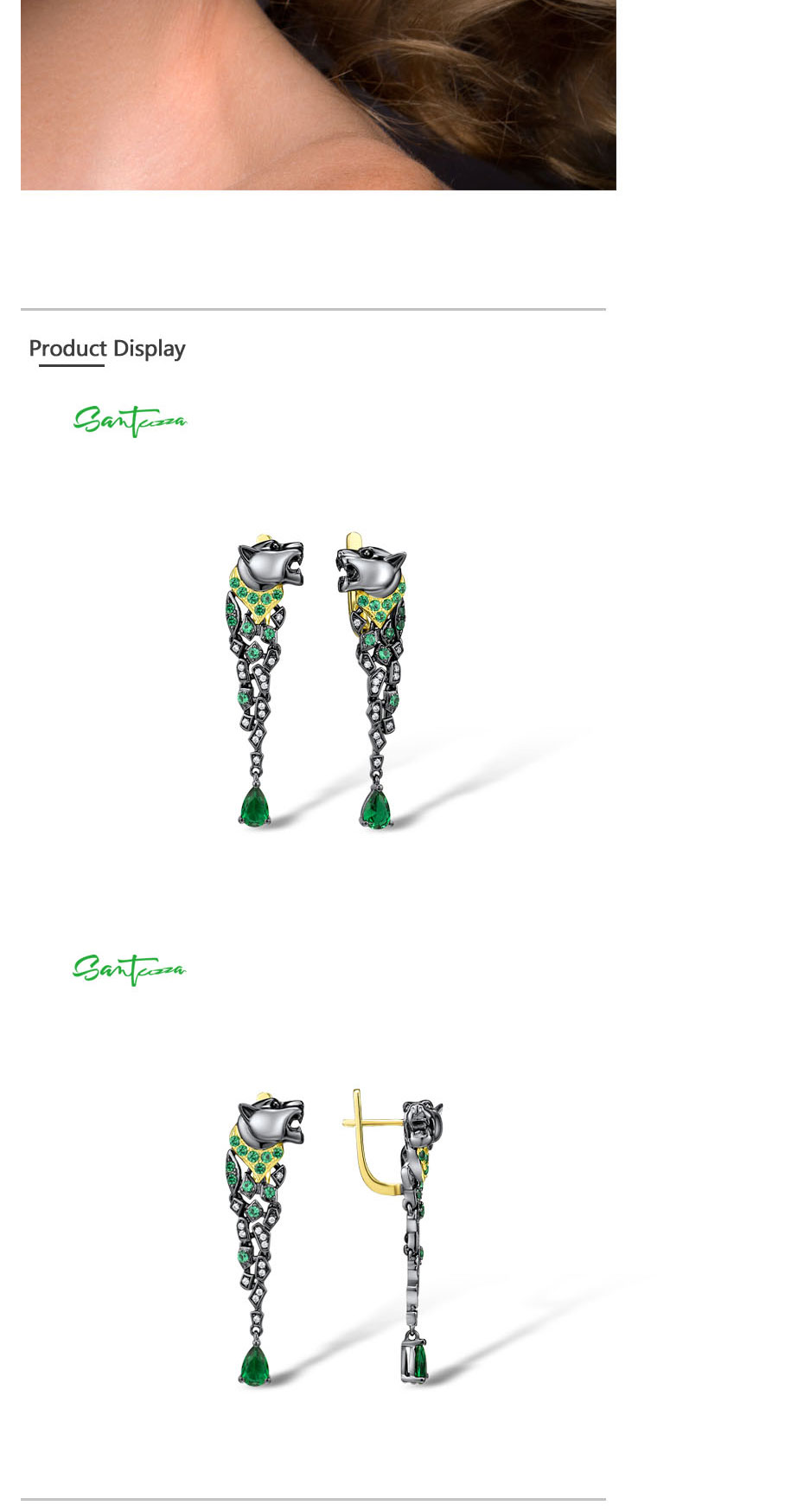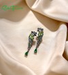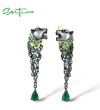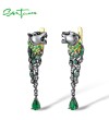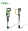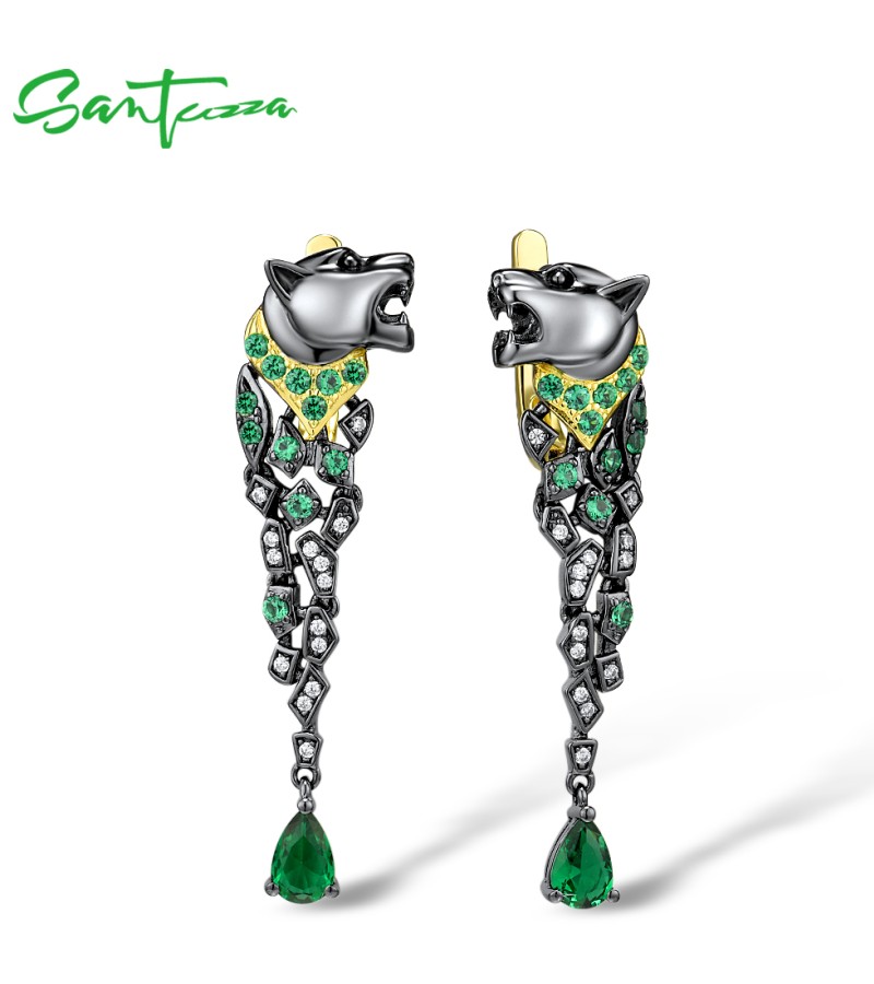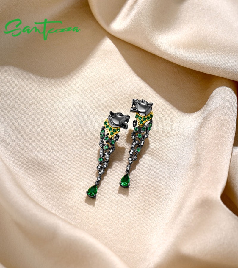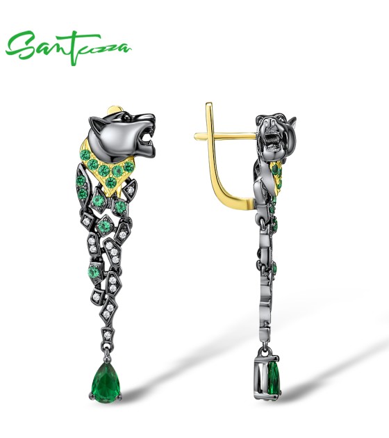 SANTUZZA 925 Sterling Silver Earrings Black Color Leopard Green Spinel Animal Fine Jewelry