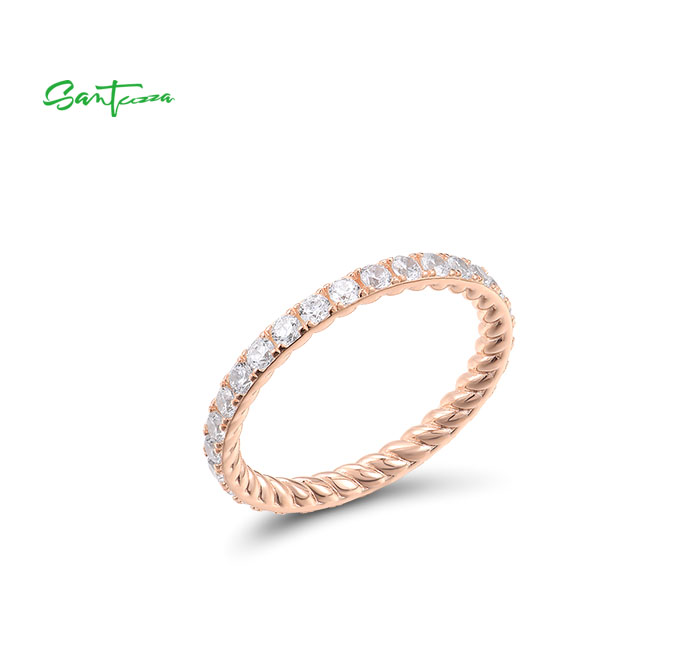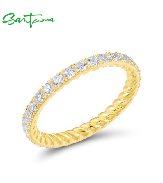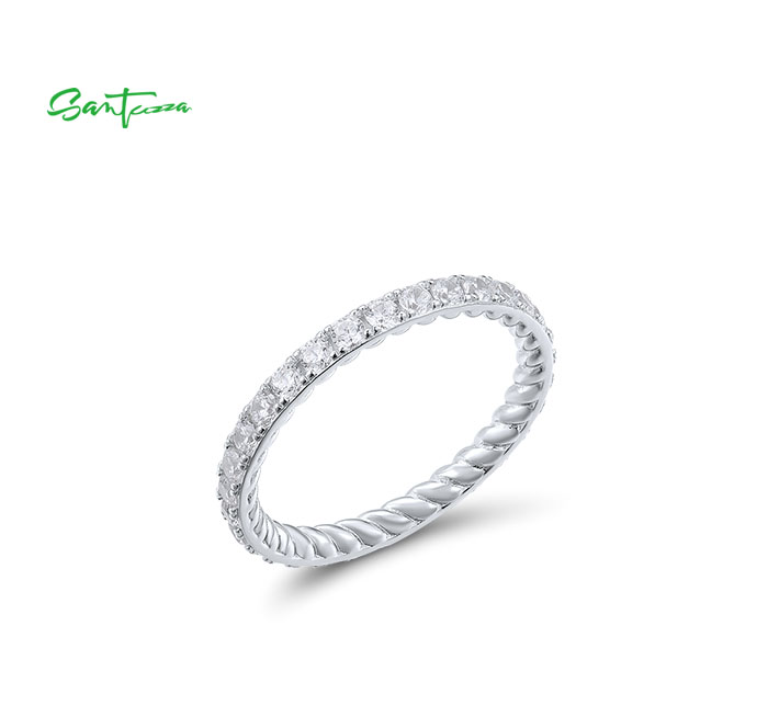 SANTUZZA 925 Sterling Silver Rings For Women White Cubic Zirconia Stackable Eternity Fine Jewelry
