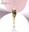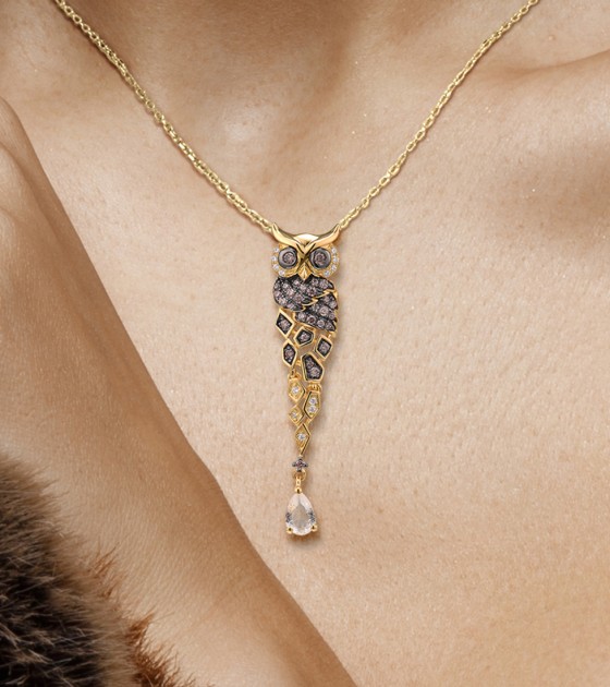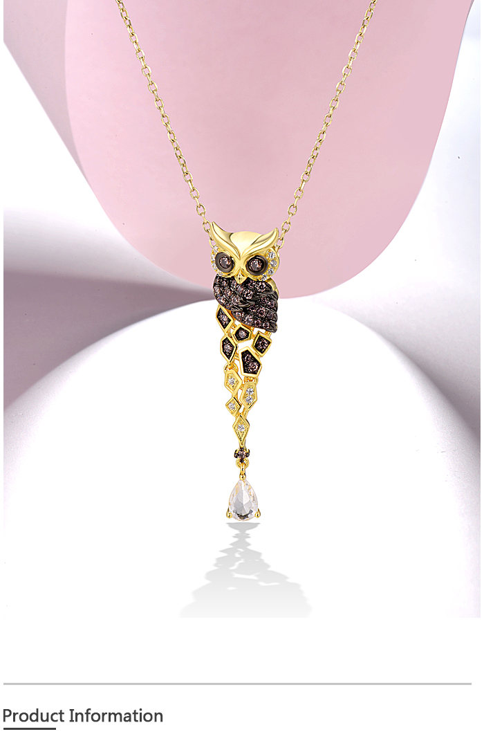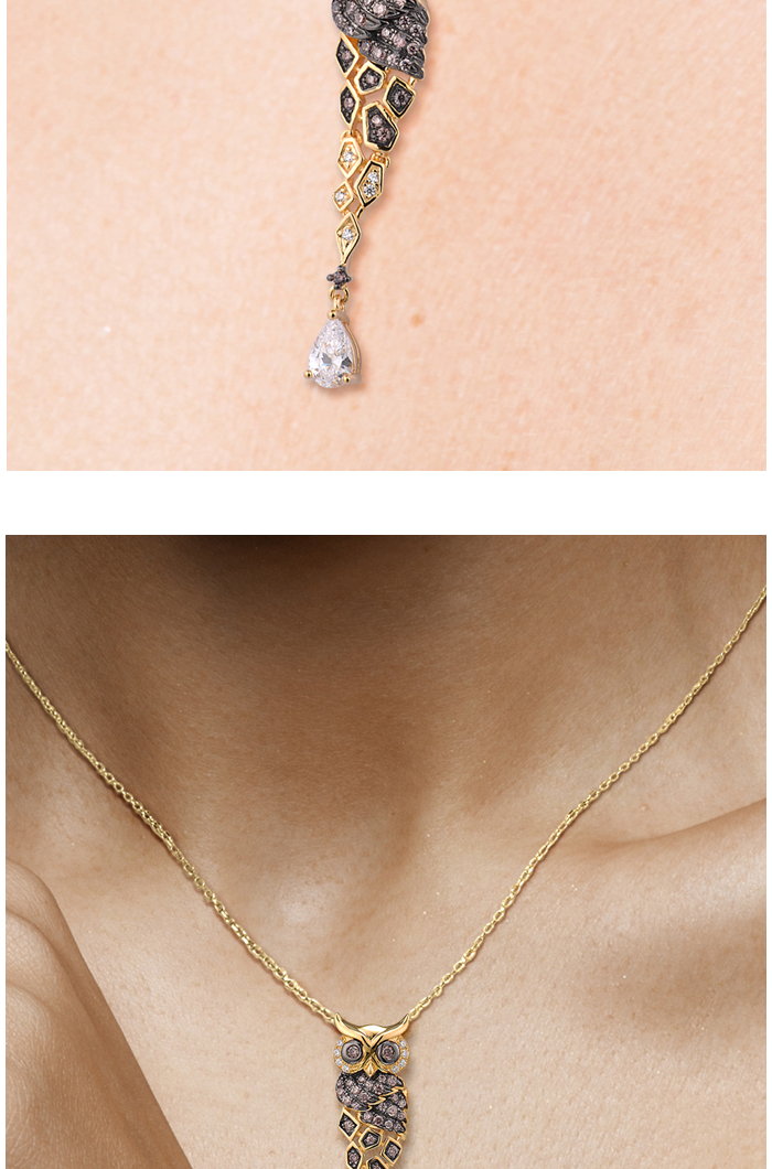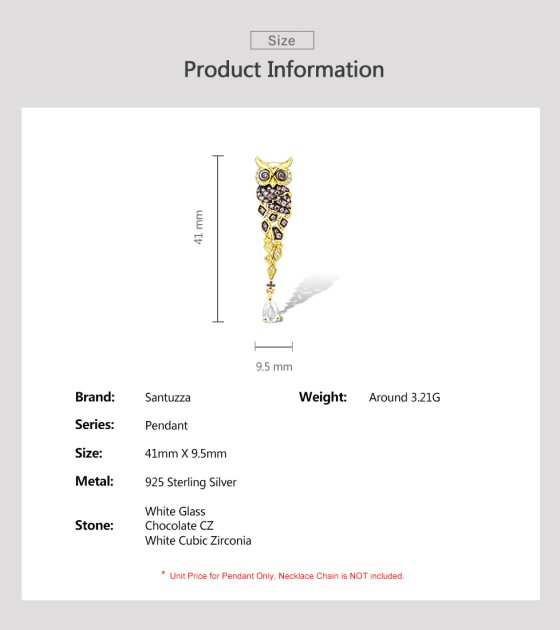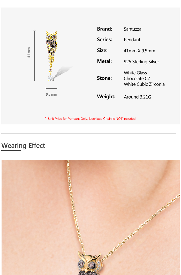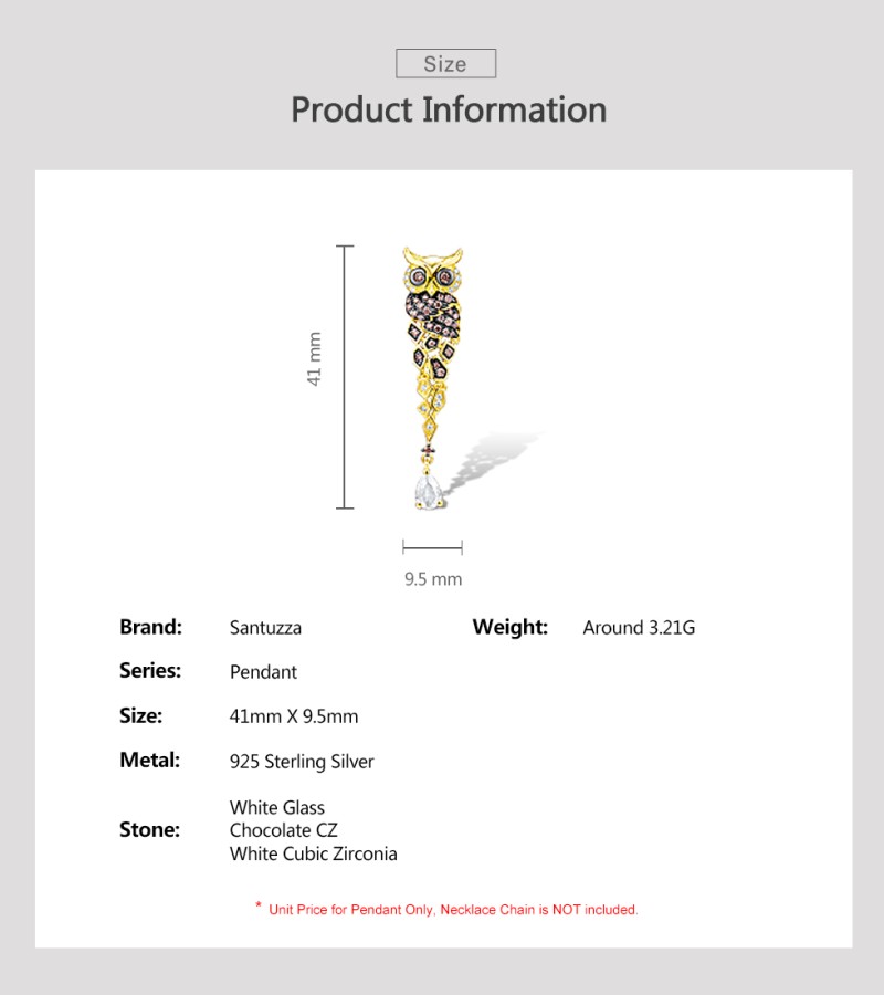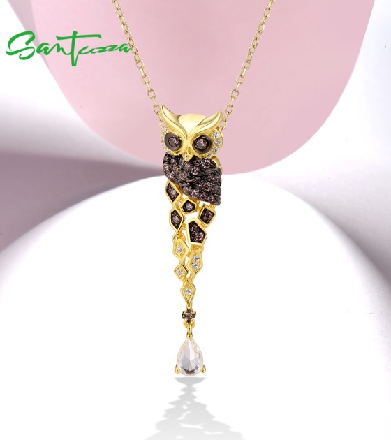 SANTUZZA 925 Sterling Silver Pendant Gold Color Sparkling Chocolate CZ Owl Trendy Fine Jewelry