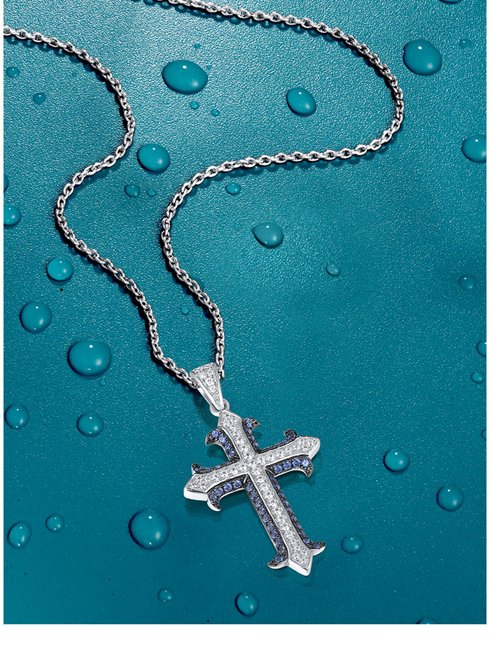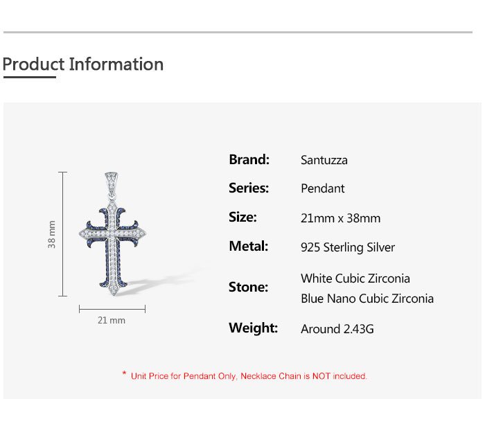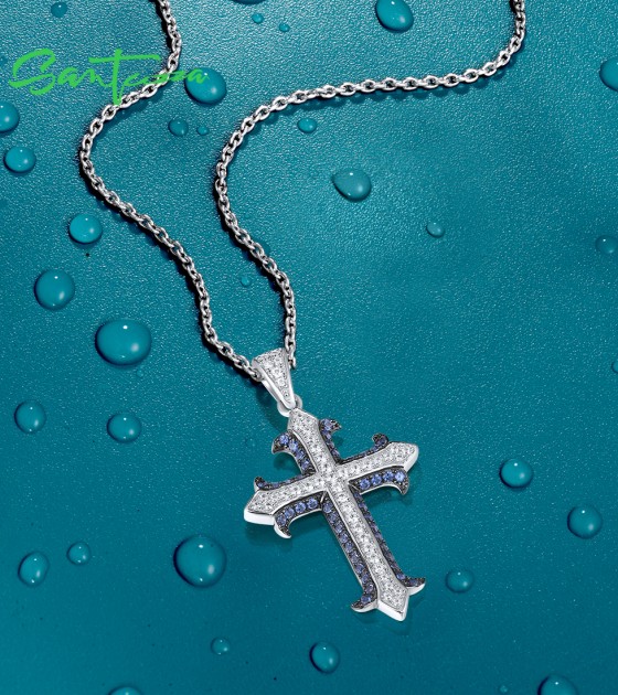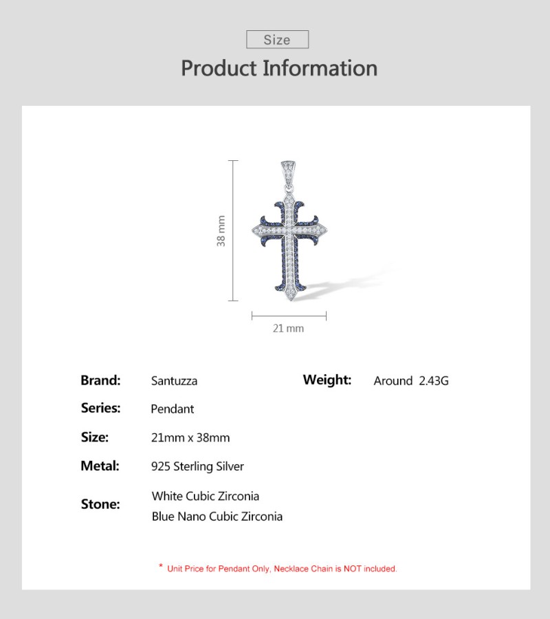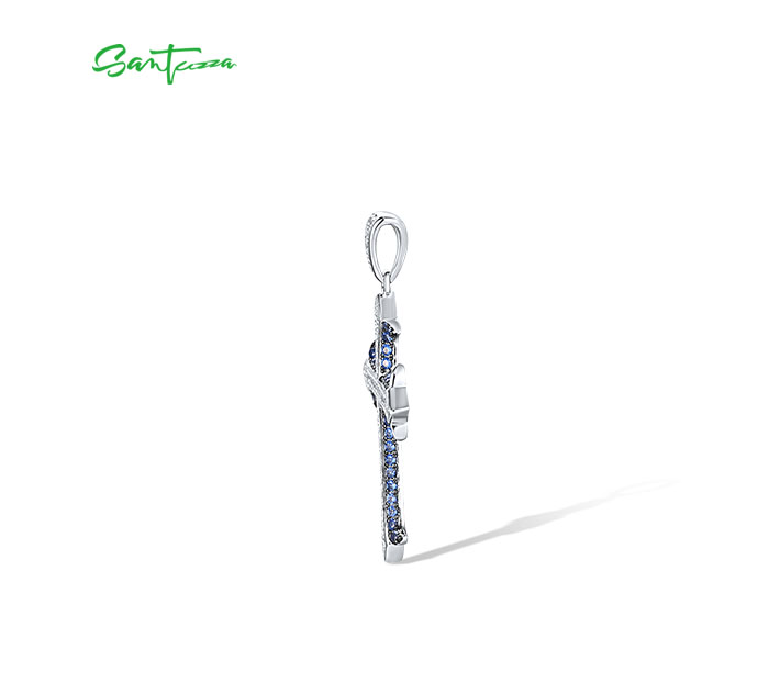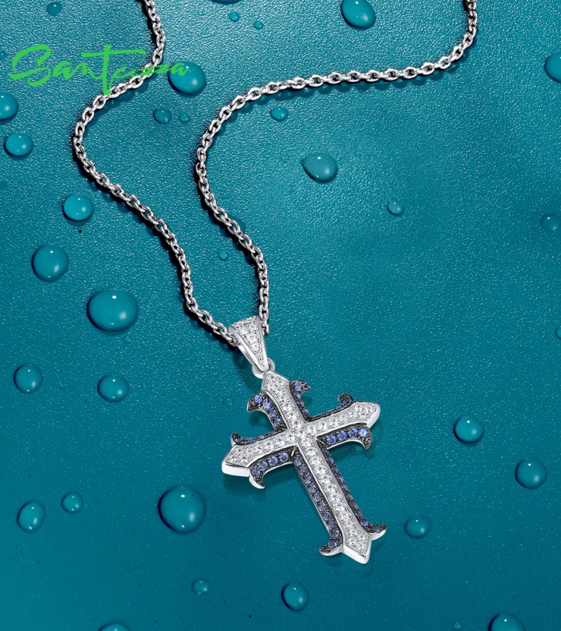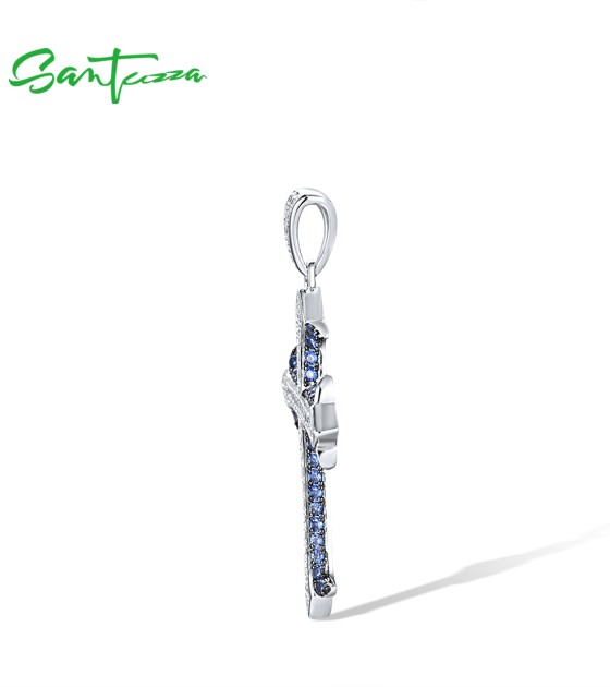 SANTUZZA 925 Sterling Silver Pendant White Blue Stone Cross Fine Jewelry