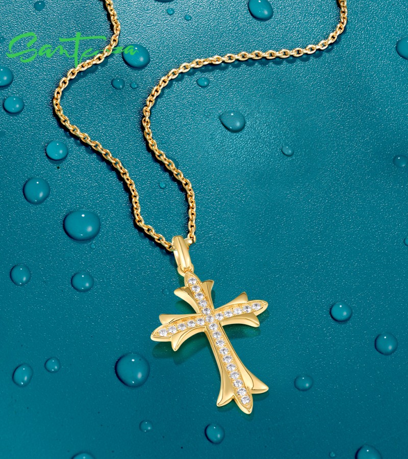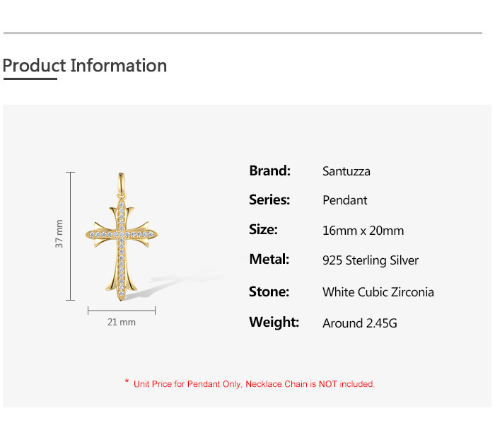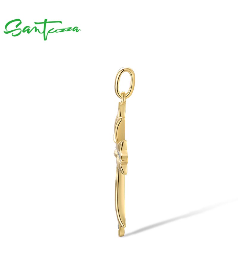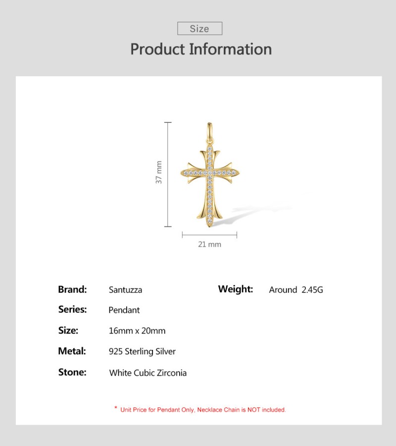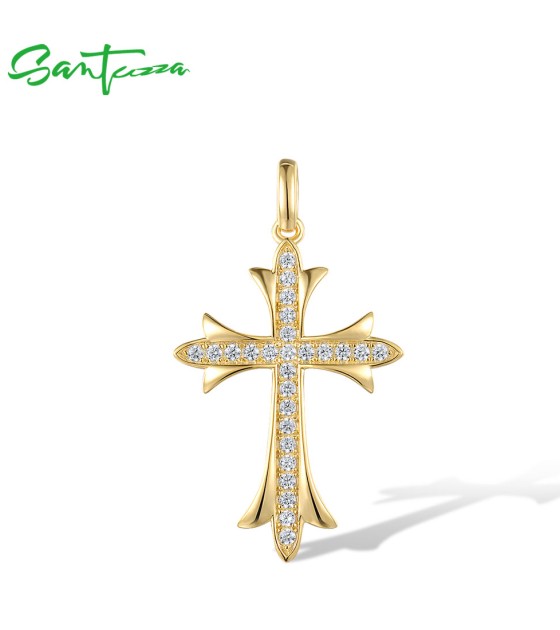 SANTUZZA 925 Sterling Silver Pendant White Cubic Zirconia Cross Fine Jewelry