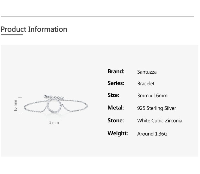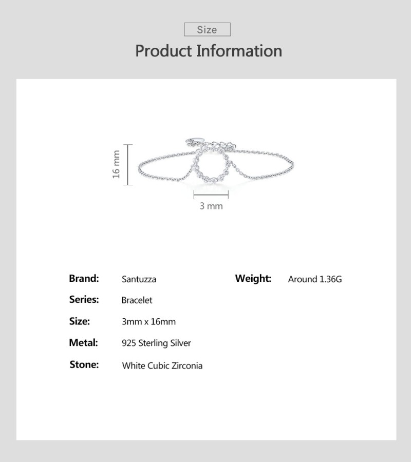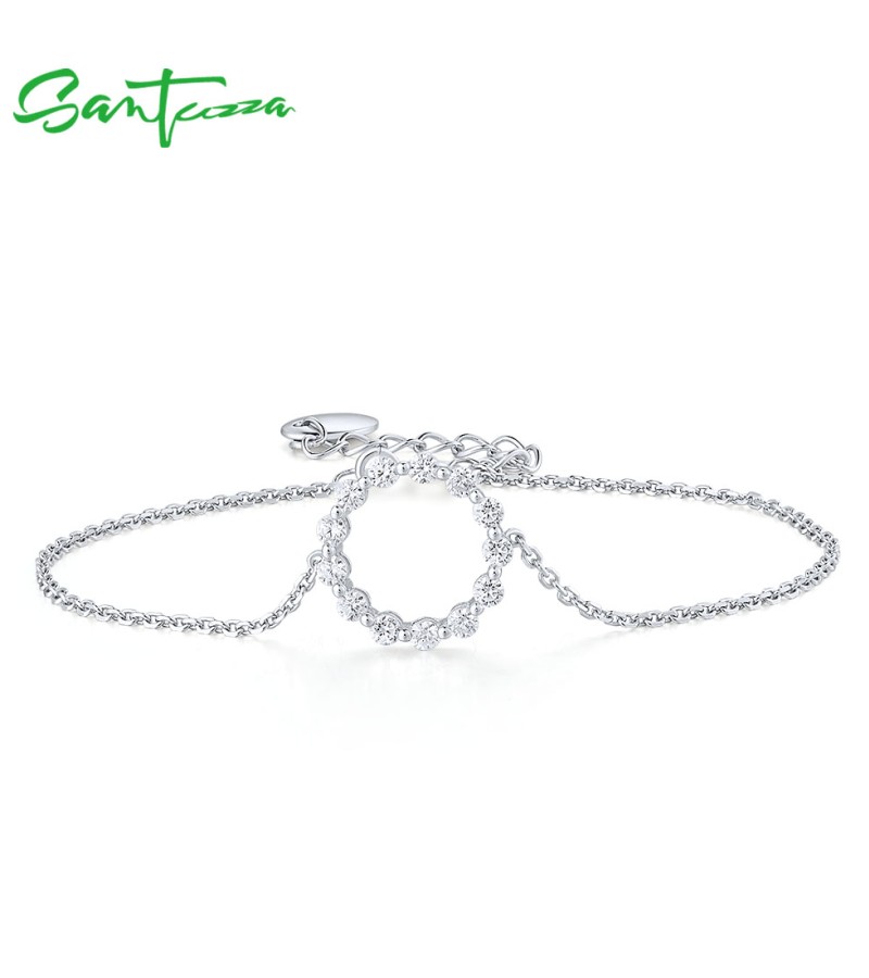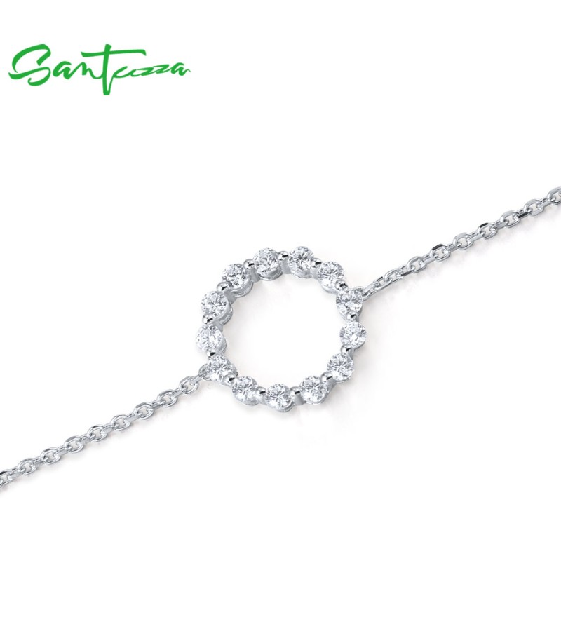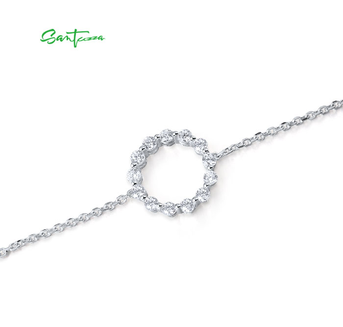 SANTUZZA 925 Sterling Silver Bracelet White Cubic Zirconia Circle Fine Jewelry
