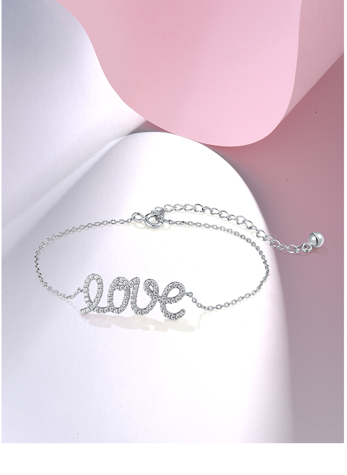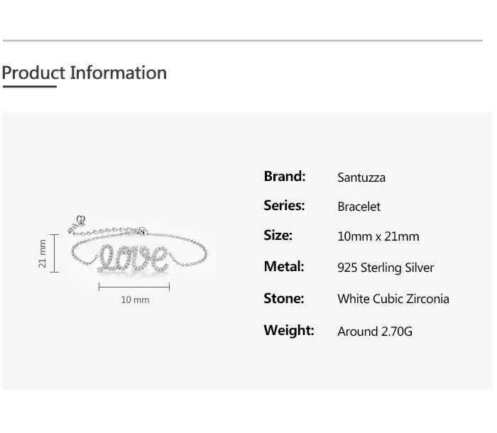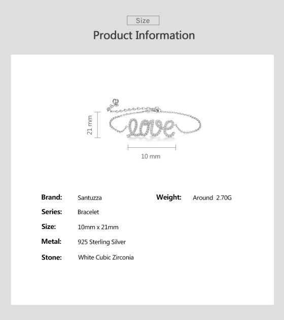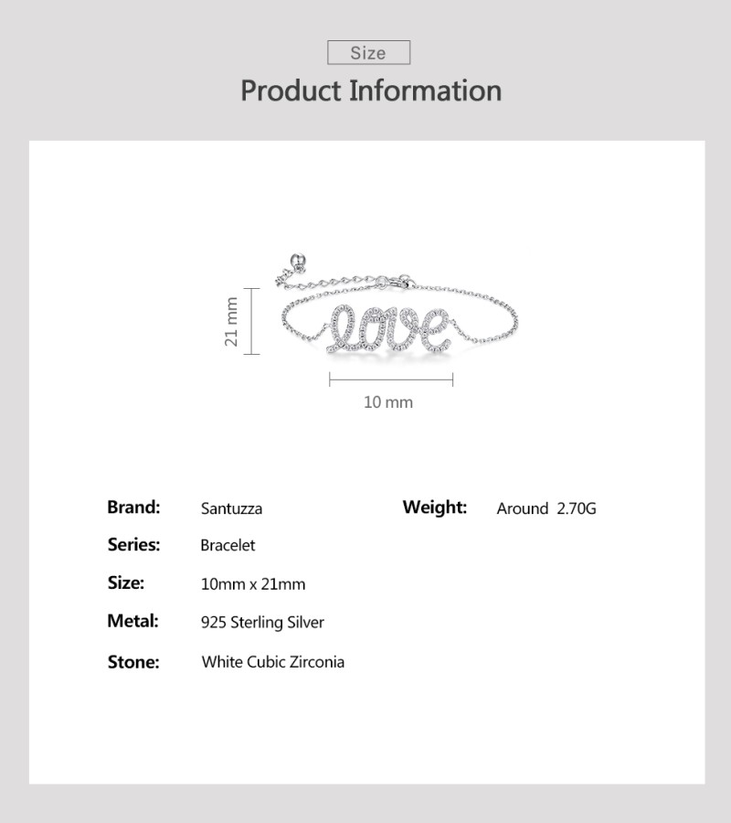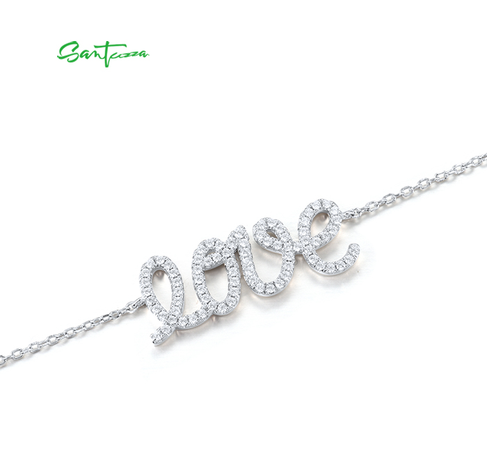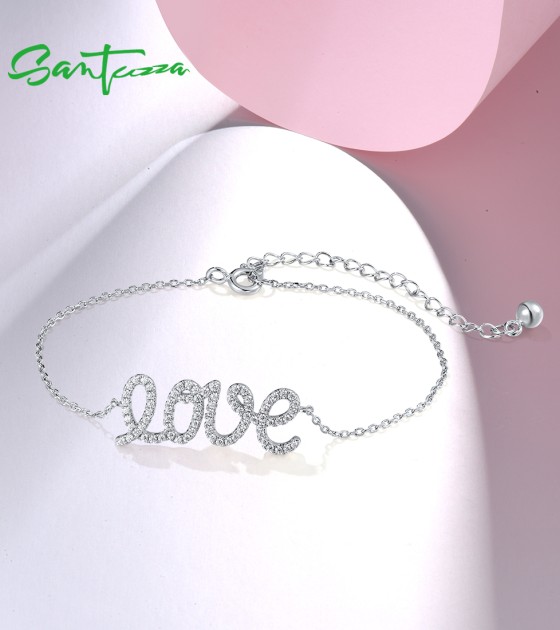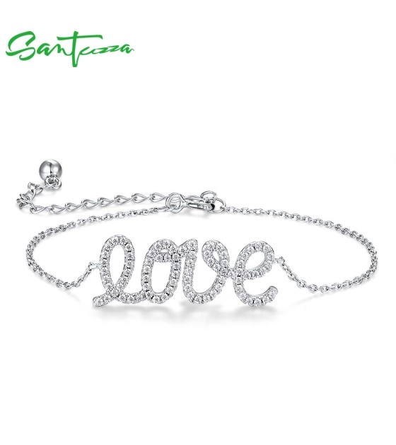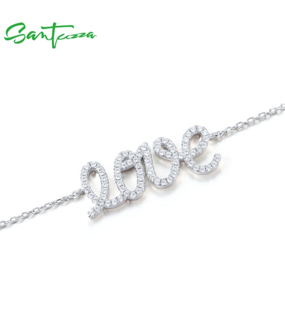 SANTUZZA 925 Sterling Silver Bracelet Sparkling White Cubic Zirconia LOVE Concise Fine Jewelry