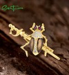 SANTUZZA 925 Sterling Silver Brooch White CZ Created Ruby Handmade Enamel Insect Fine Jewelry