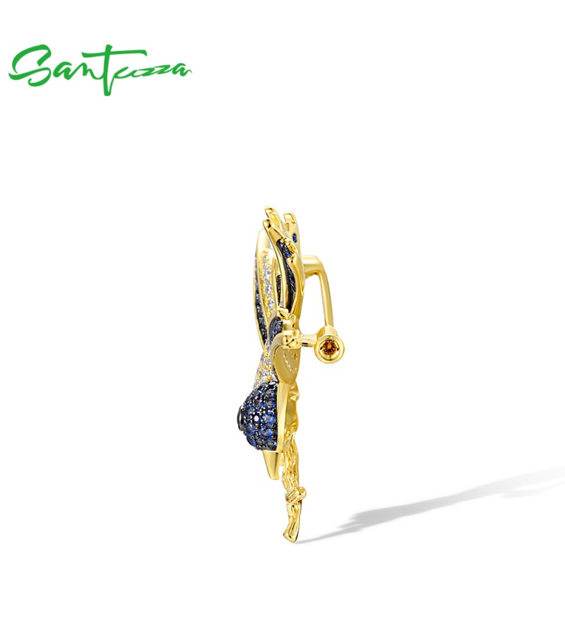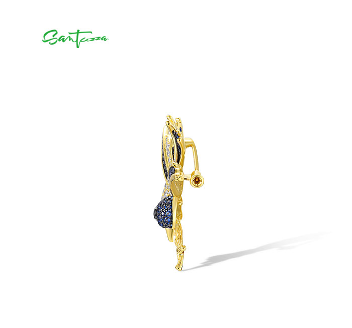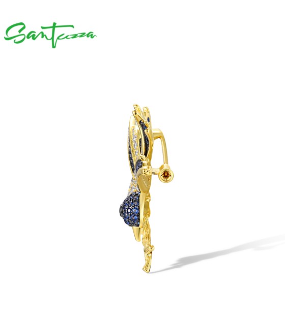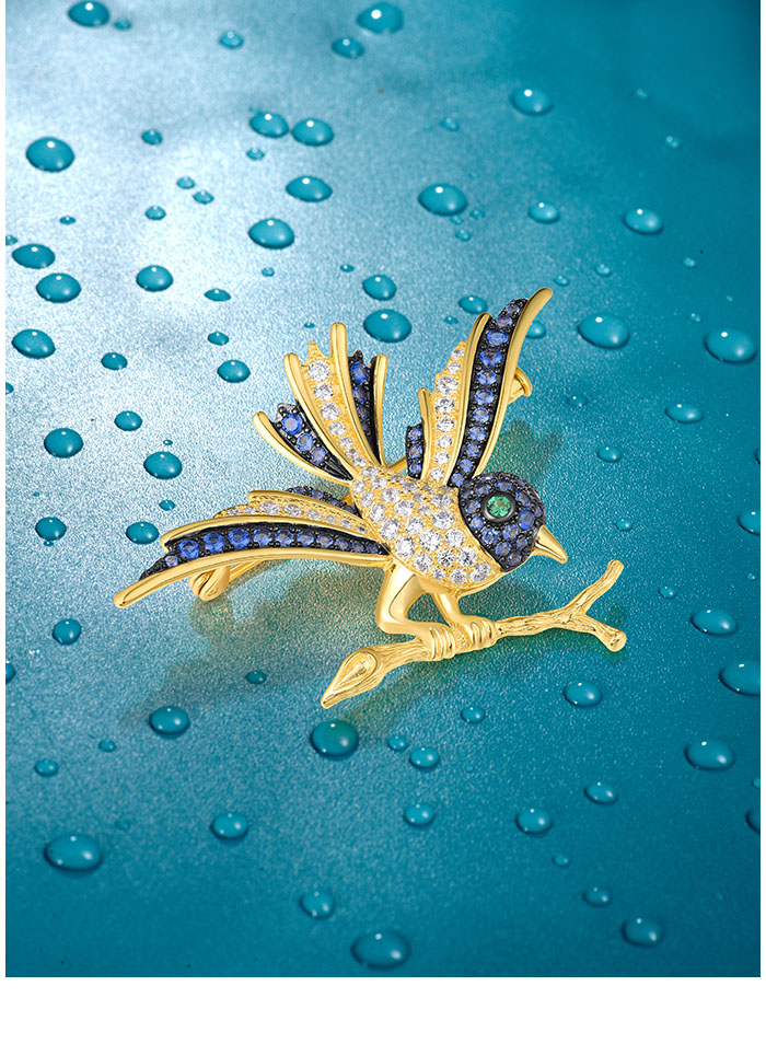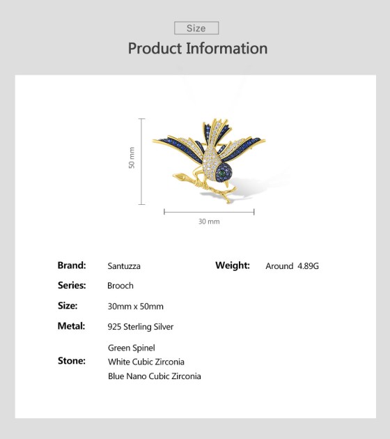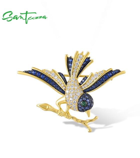 SANTUZZA 925 Sterling Silver Brooch Swallow Bird Animal Green Spinel Blue Stone Fine Jewelry
