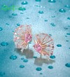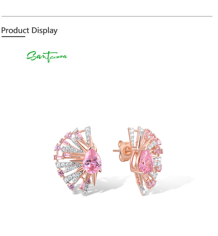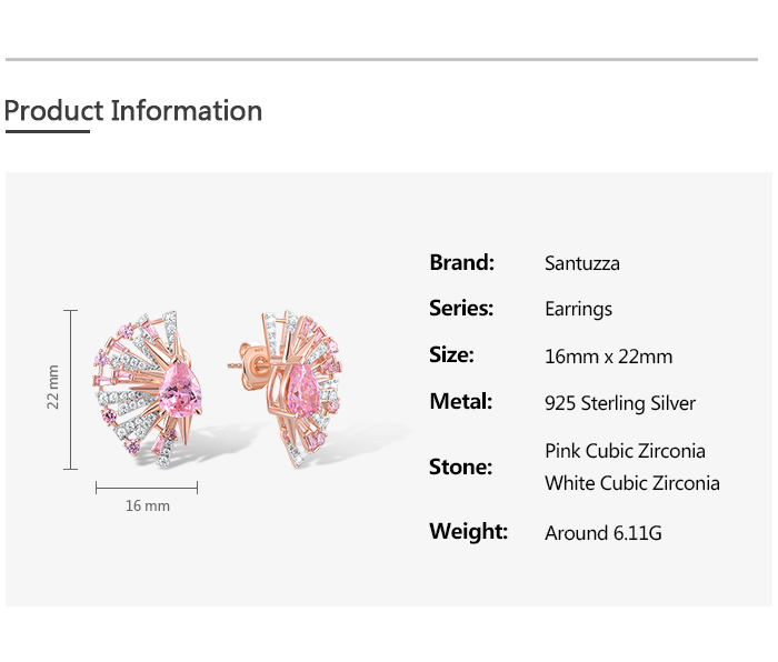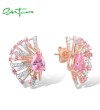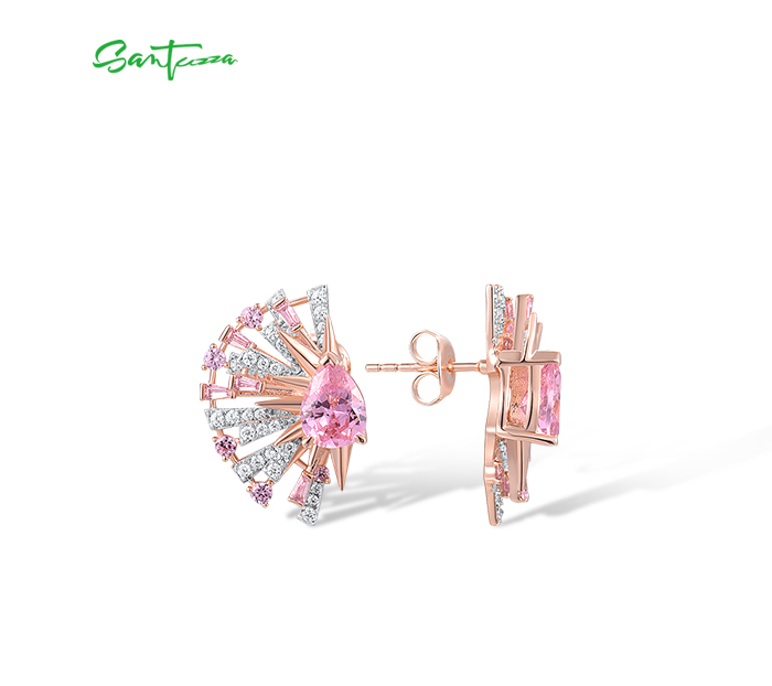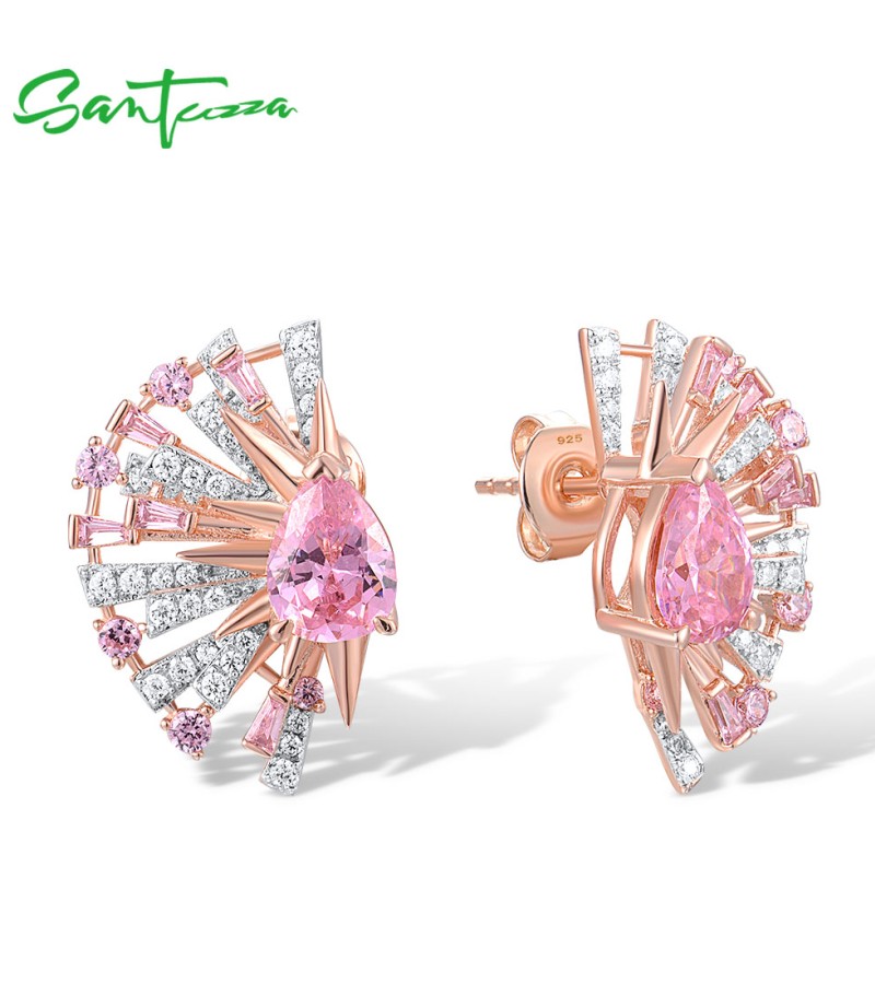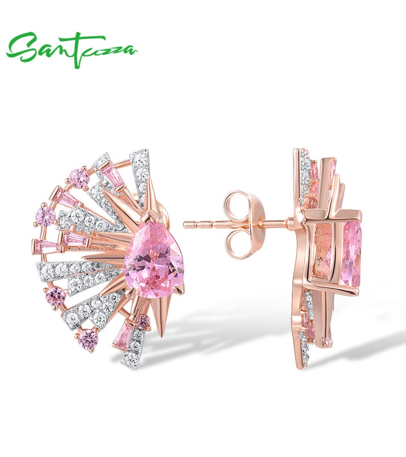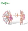 SANTUZZA 925 Sterling Silver Earrings Pink White Cubic Zirconia Fan Shaped Jewelry