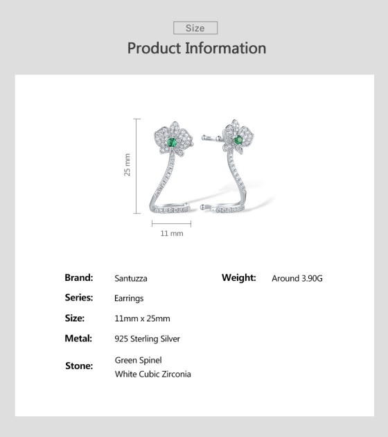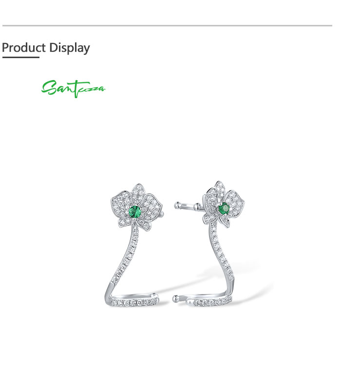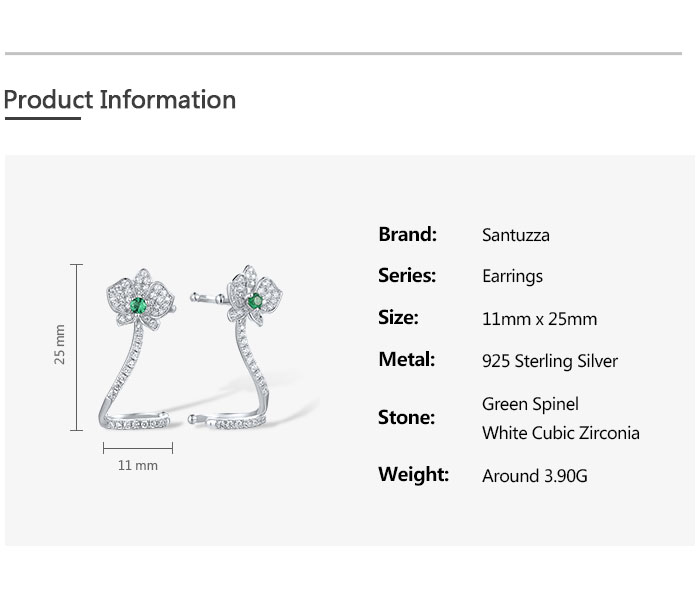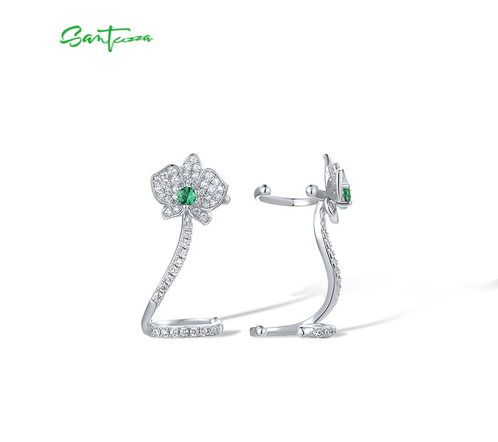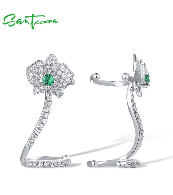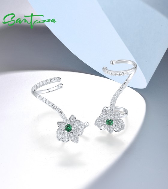 SANTUZZA 925 Sterling Silver Cuff Earrings White CZ Green Spinel Orchid No Pierce Fine Jewelry