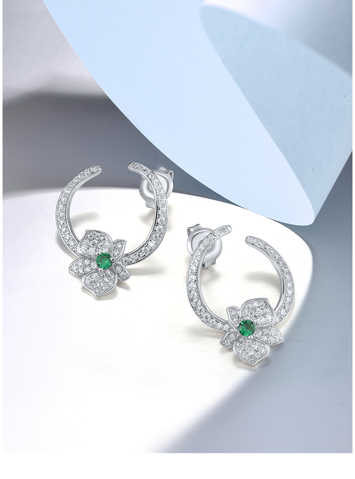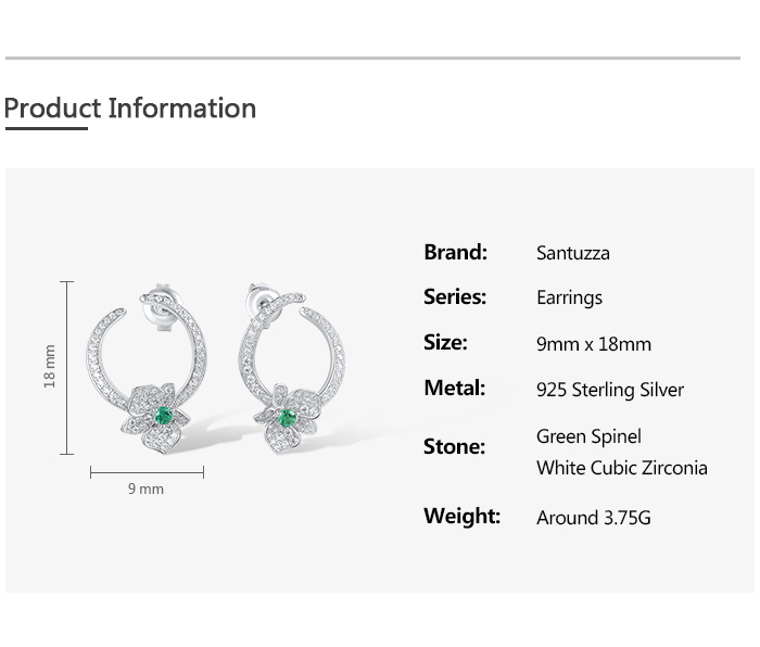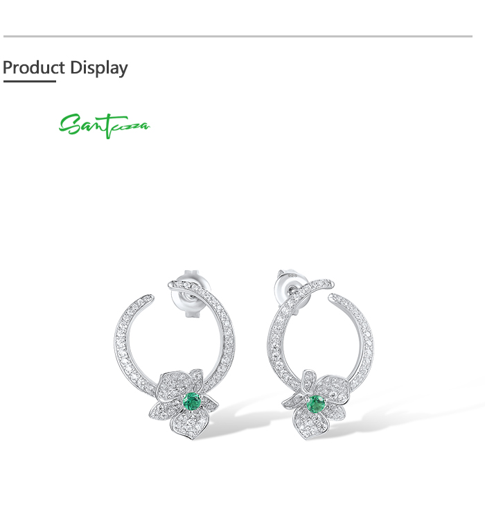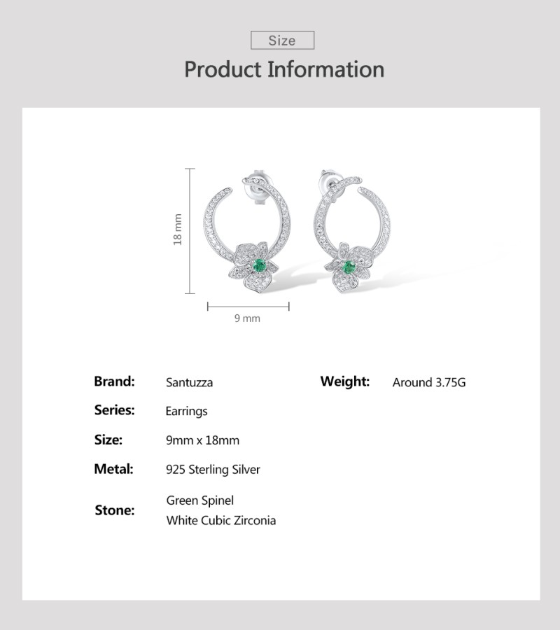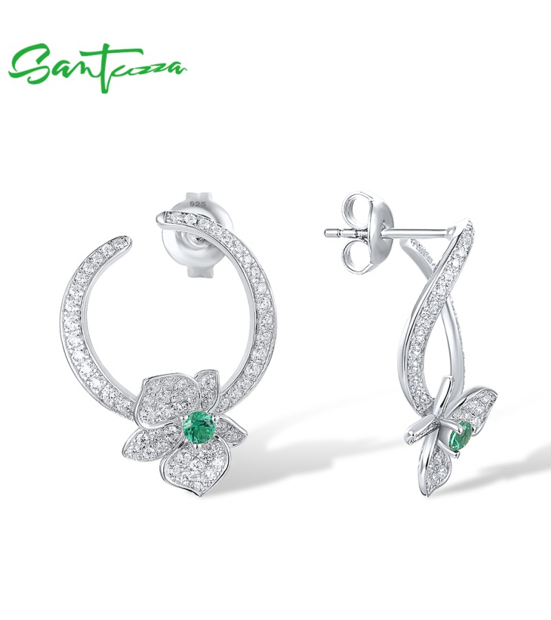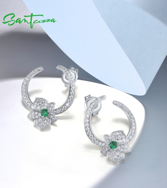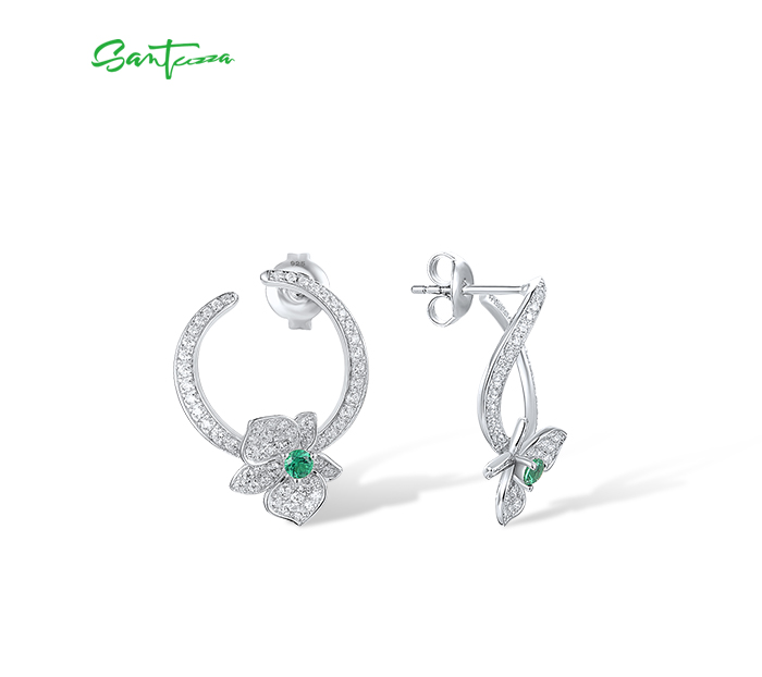 SANTUZZA 925 Sterling Silver Earrings White CZ Green Spinel Orchid Flower Circled Fine Jewelry