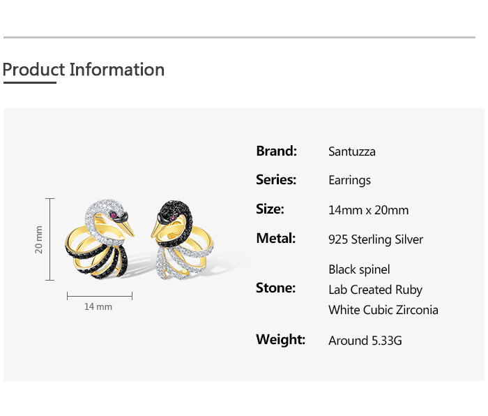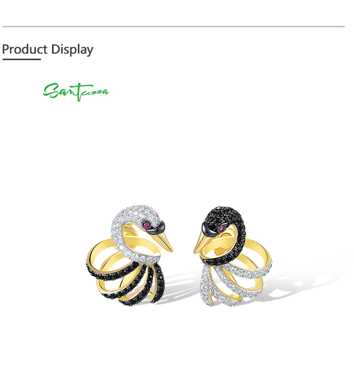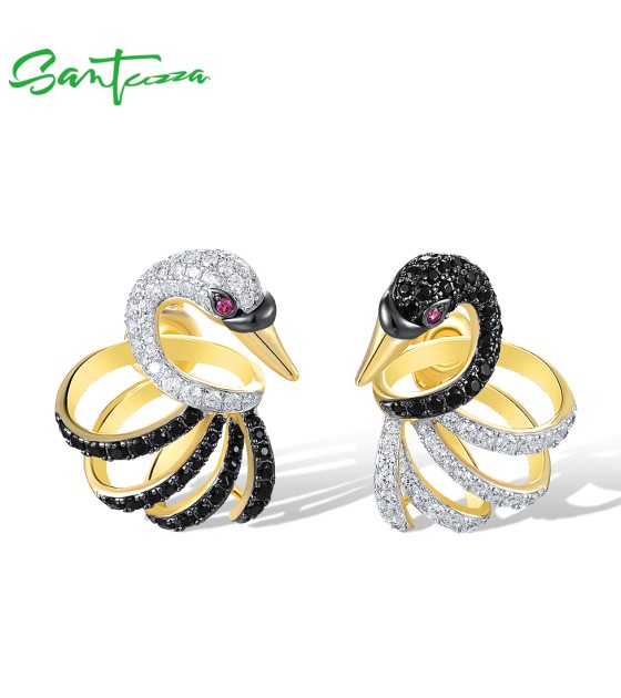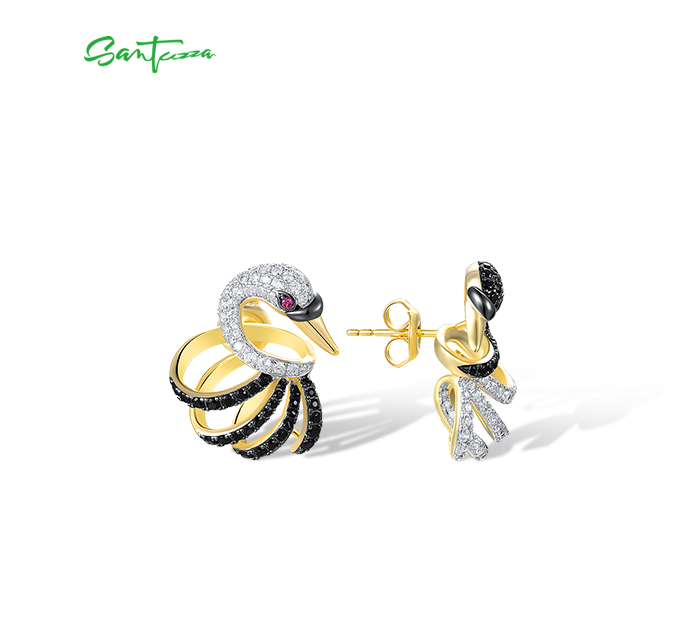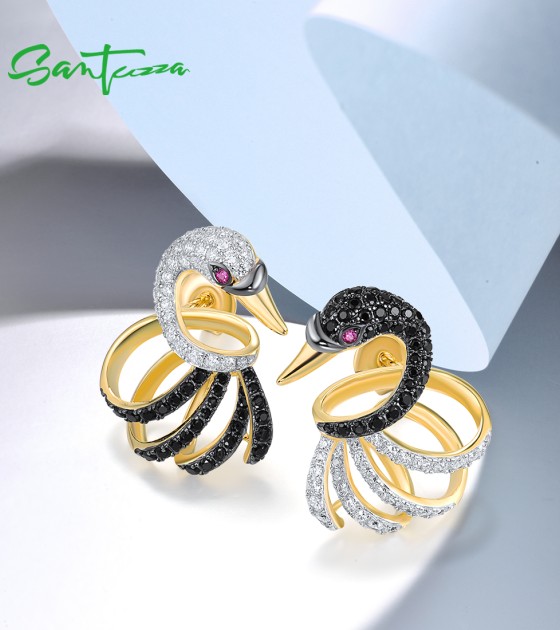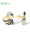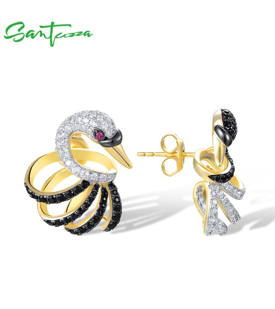 SANTUZZA 925 Sterling Silver Stud Earrings White Black Swan Fine Jewelry
