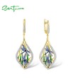 SANTUZZA 925 Sterling Silver Earrings White CZ Blue Enamel Dragonfly Dangling Jewelry