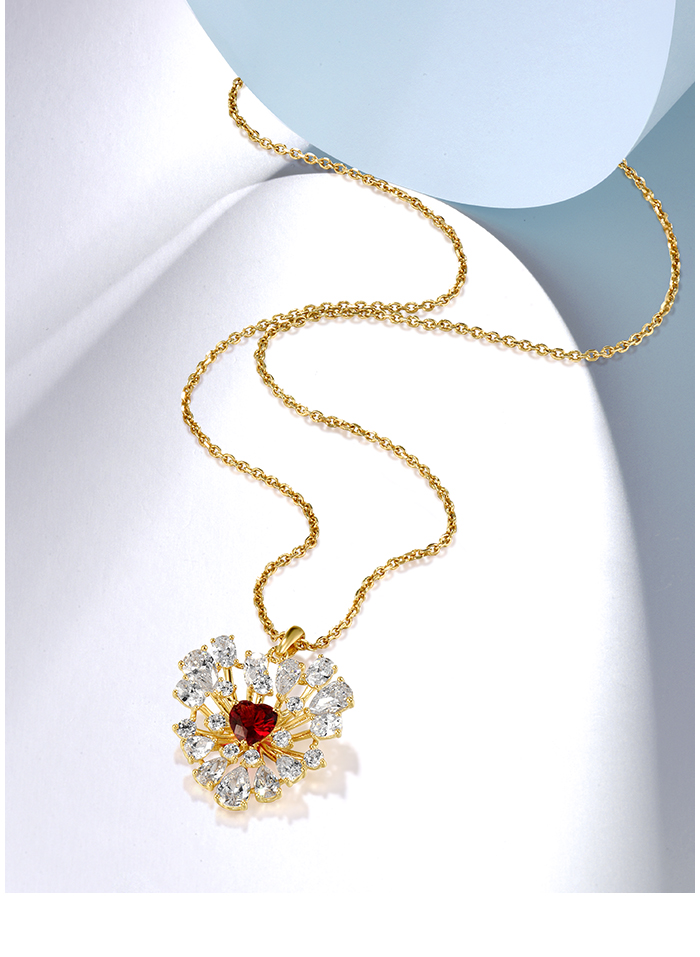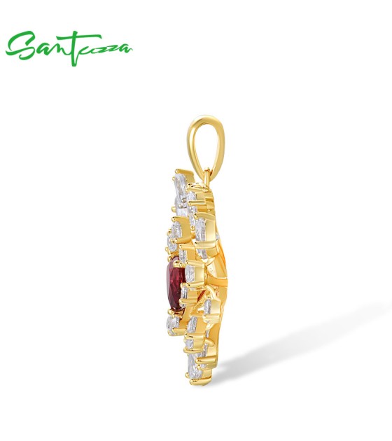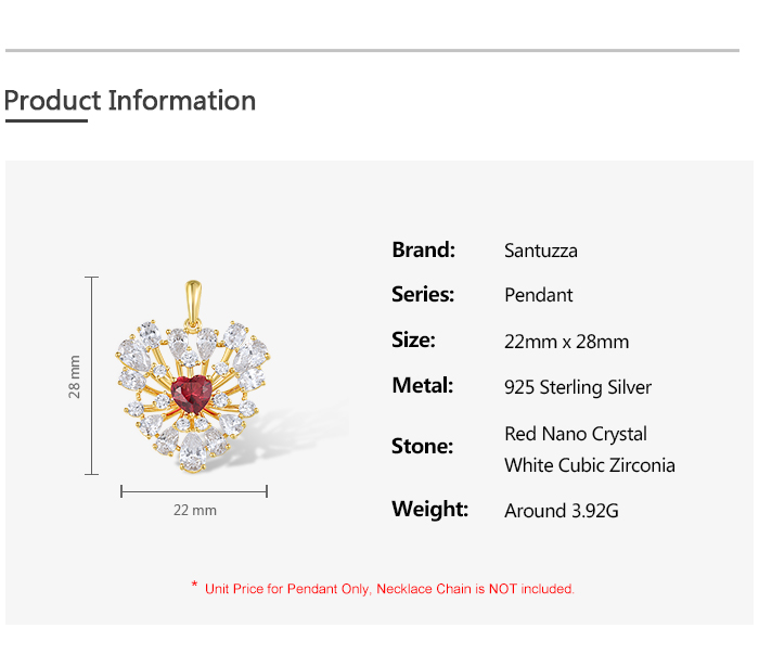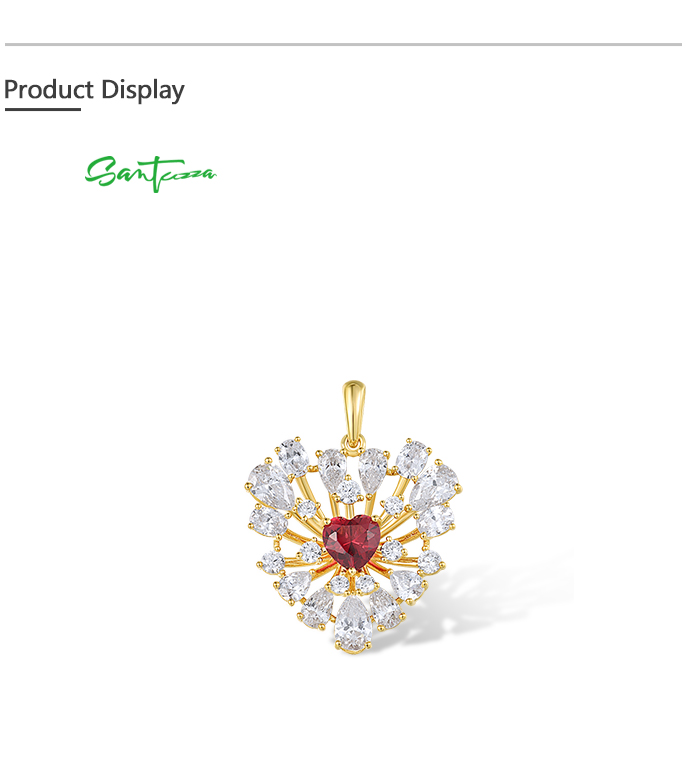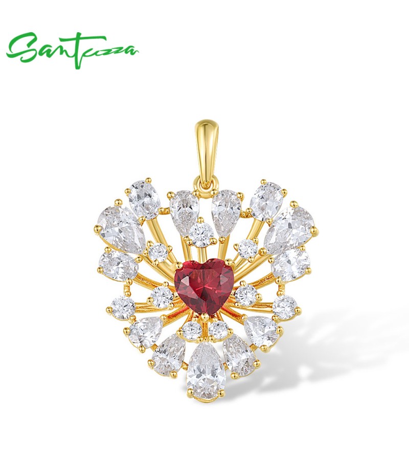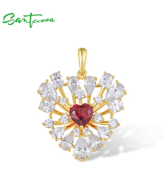 SANTUZZA 925 Sterling Silver Pendant Sparkling White CZ Red Heart Cluster Jewelry