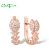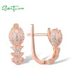SANTUZZA 925 Sterling Silver Earrings White CZ Pink Flower Latch Back Fine Jewelry