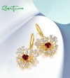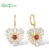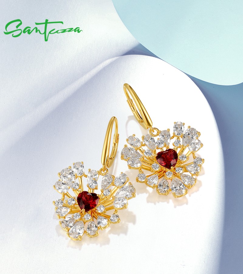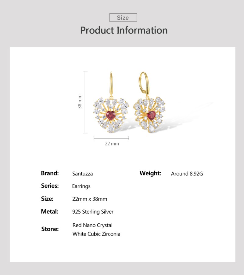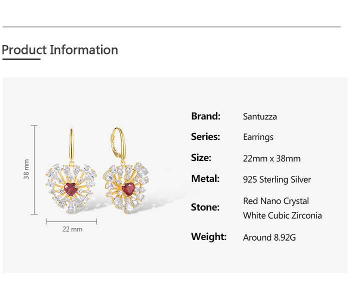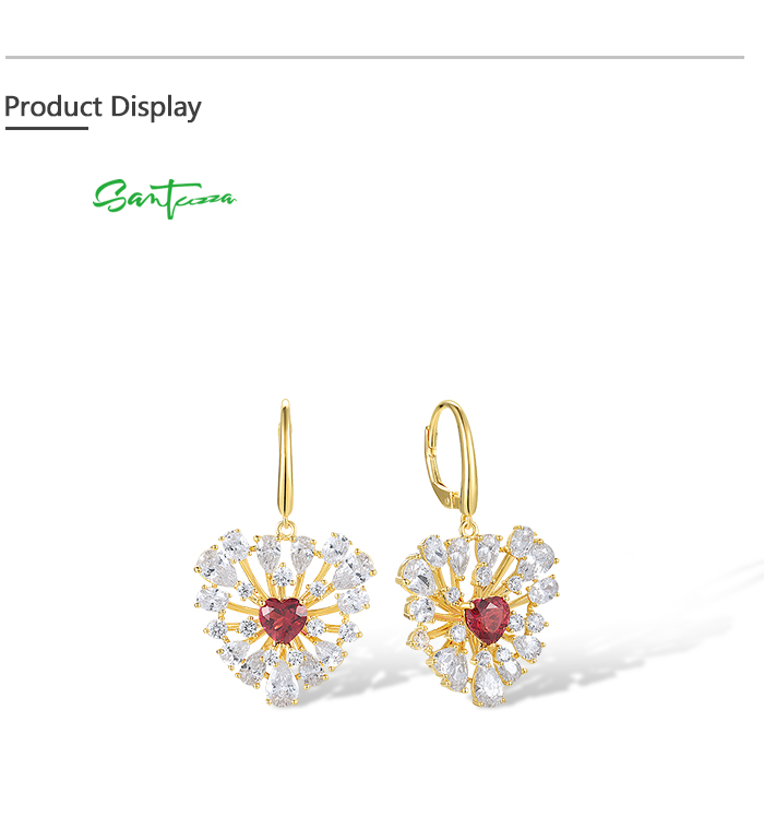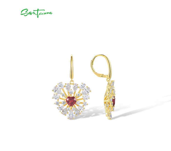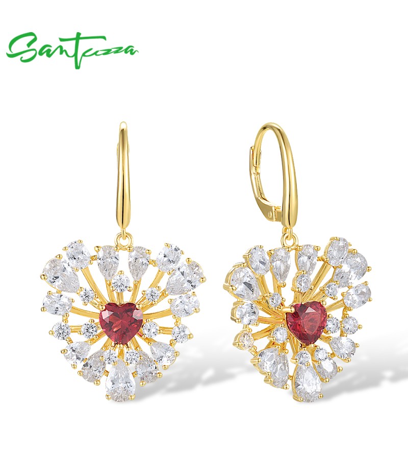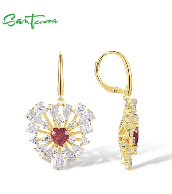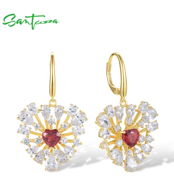SANTUZZA 925 Sterling Silver Dangling Earrings White CZ Red Heart Loop Jewelry