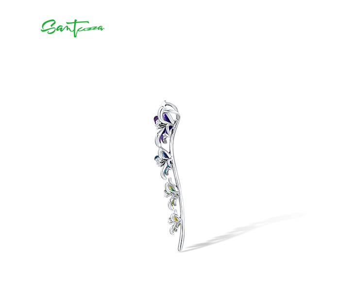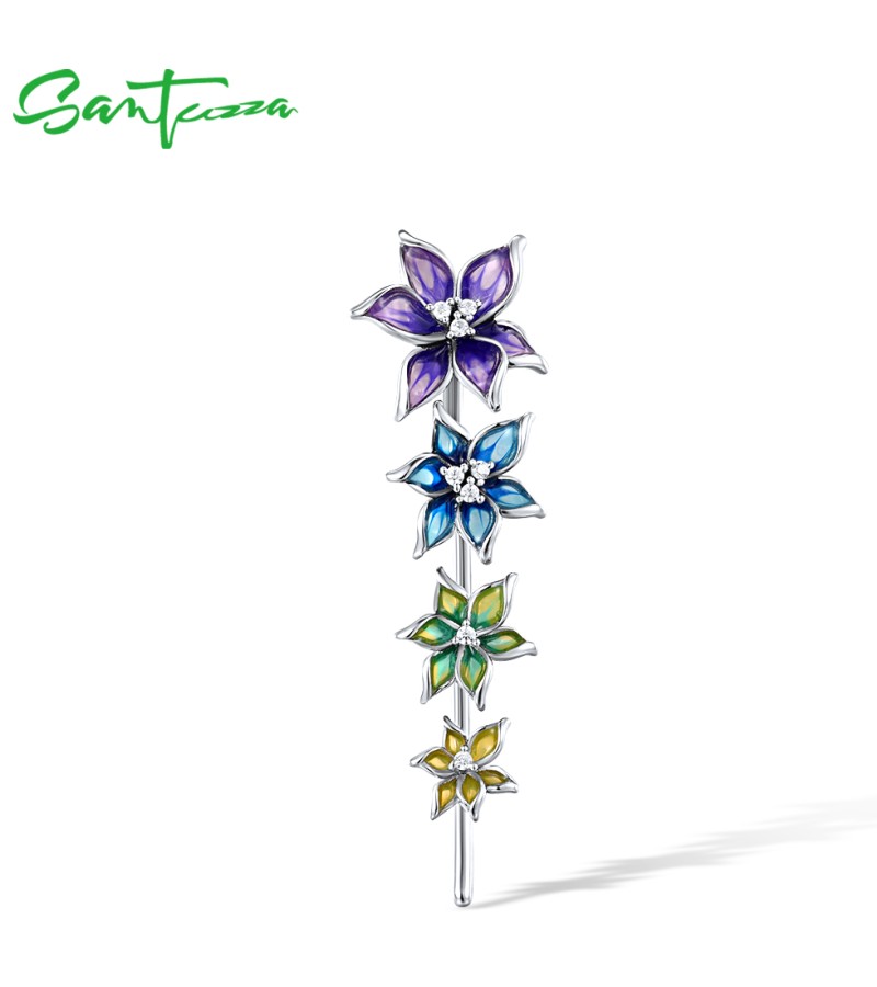 SANTUZZA Earrings 925 Sterling Silver Green Enamel Flower Climber Long Jewelry