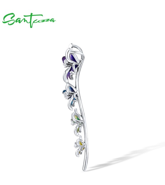SANTUZZA Climber Earrings 925 Sterling Silver Black White Enamel Flower Jewelry