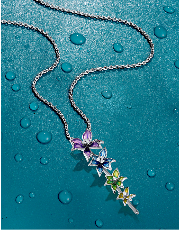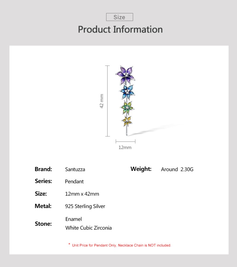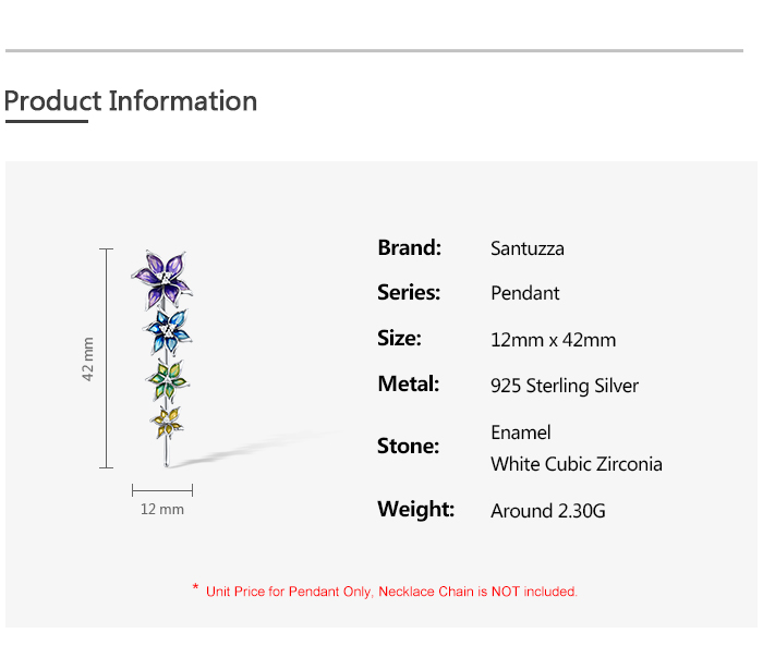 SANTUZZA 925 Sterling Silver Pendant Multi Colorful Flower Jewelry Enamel