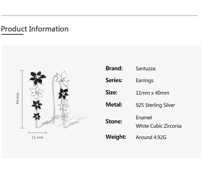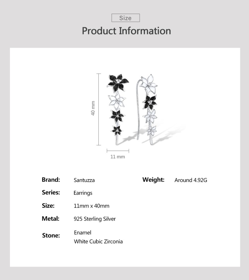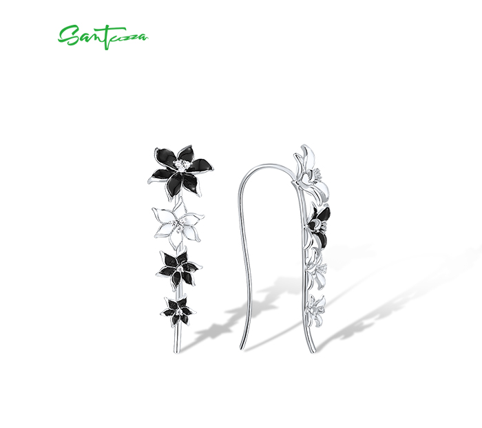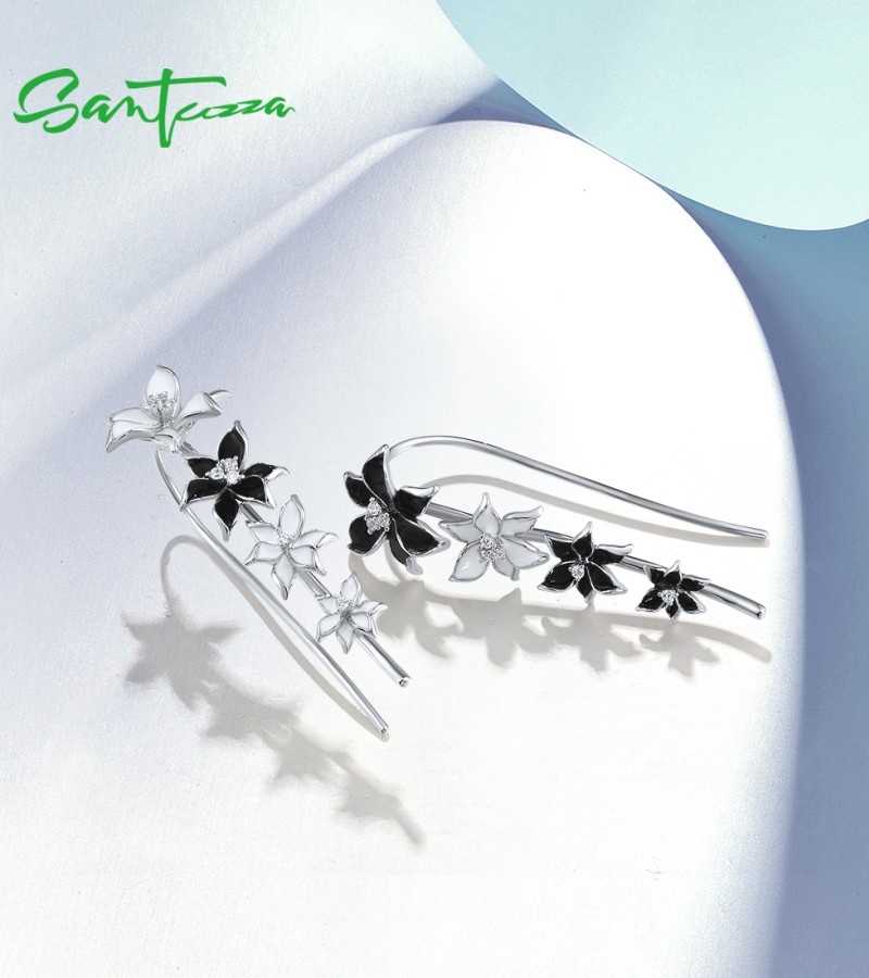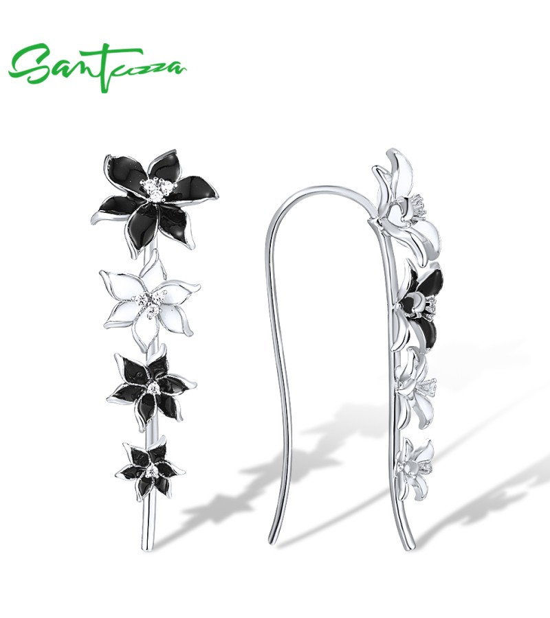 SANTUZZA Climber Earrings 925 Sterling Silver Black White Enamel Flower Jewelry