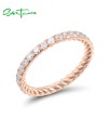SANTUZZA 925 Sterling Silver Rings For Women White Cubic Zirconia Stackable Eternity Fine Jewelry