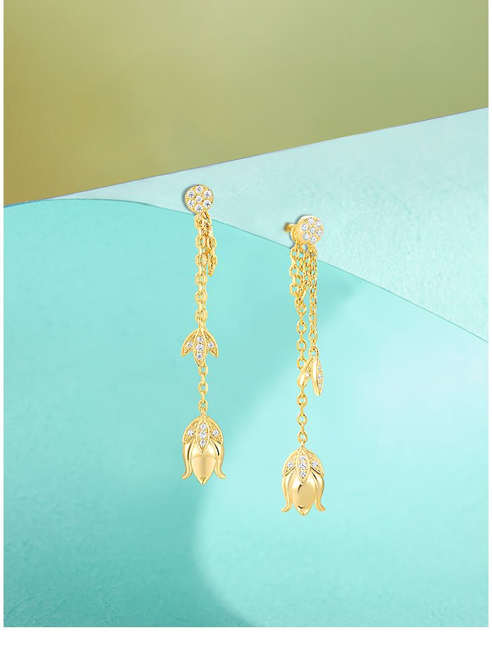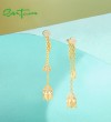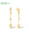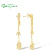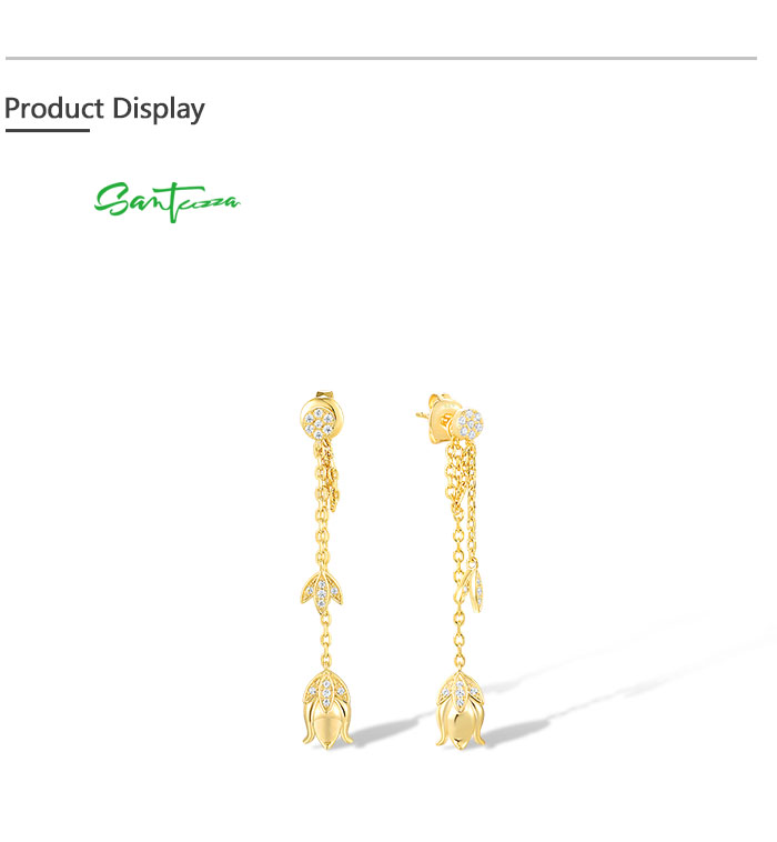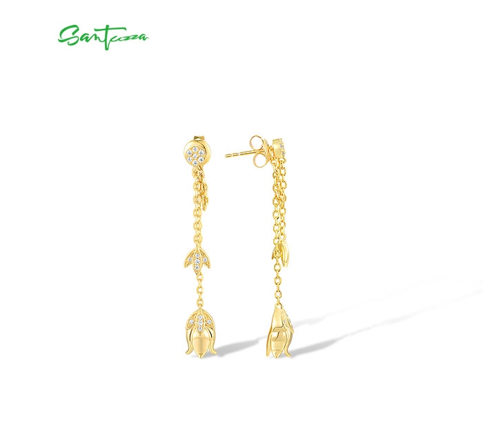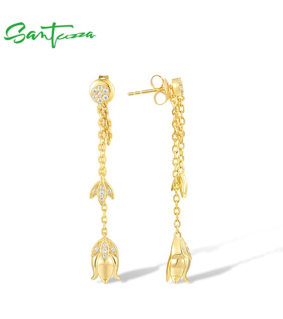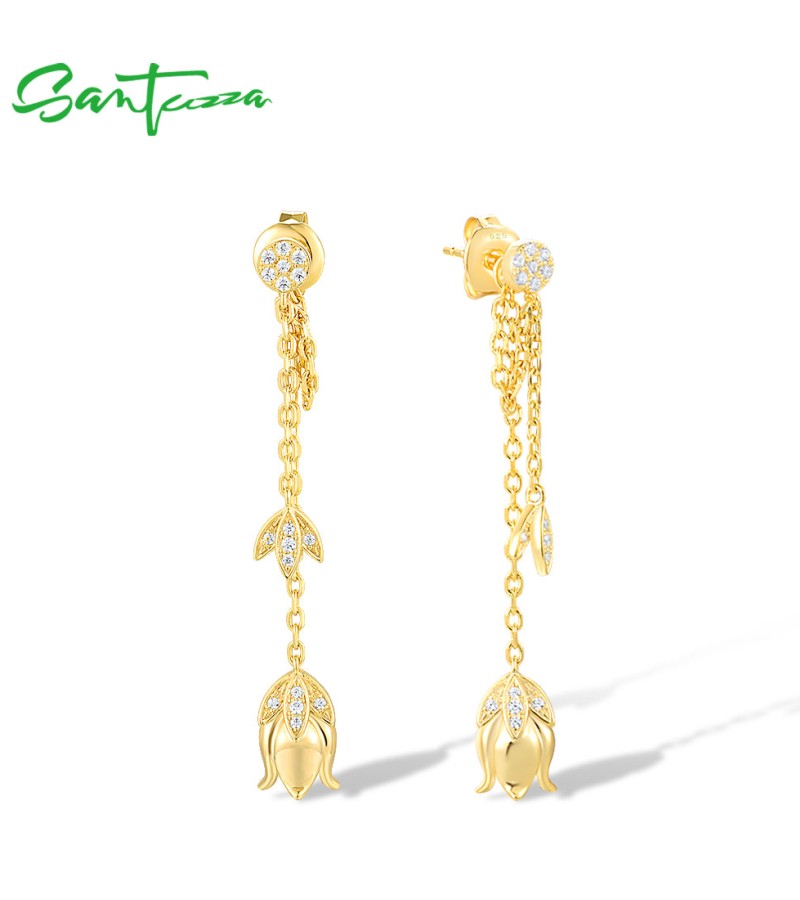 SANTUZZA 925 Sterling Silver Earrings White CZ Tulip Flower Long Chain Style Fine Jewelry