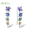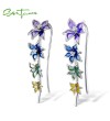 SANTUZZA Climber Earrings 925 Sterling Silver Black White Enamel Flower Jewelry