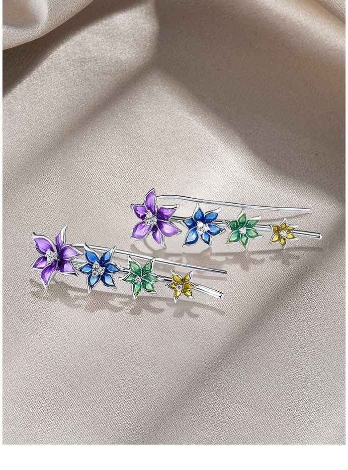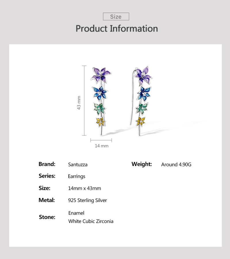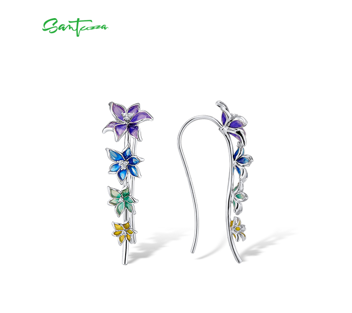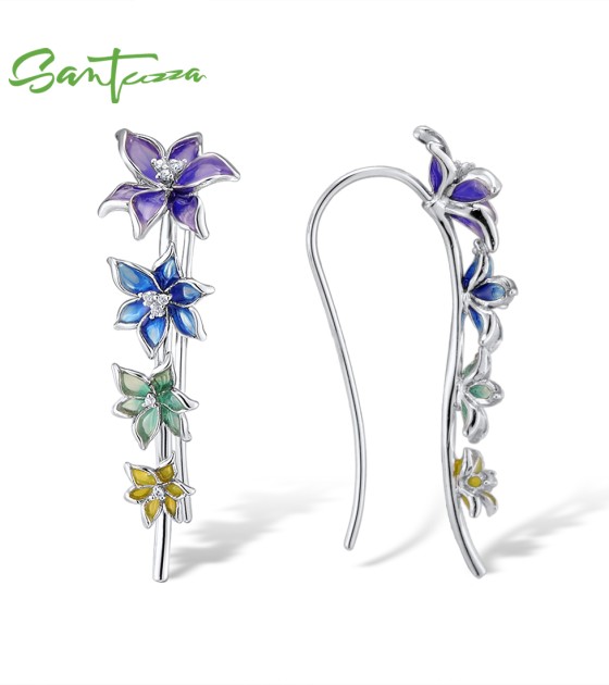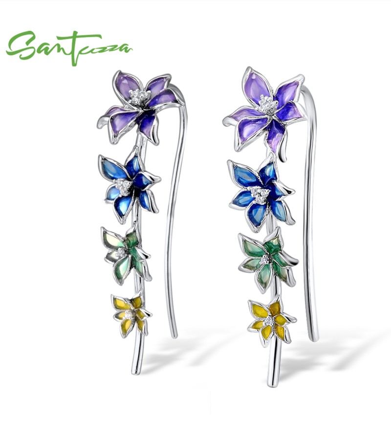 SANTUZZA Earrings 925 Sterling Silver Green Enamel Flower Climber Long Jewelry