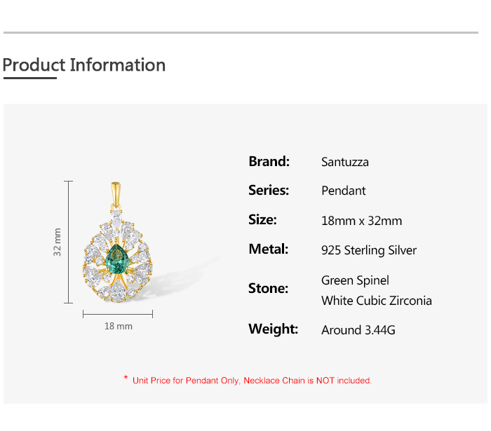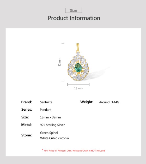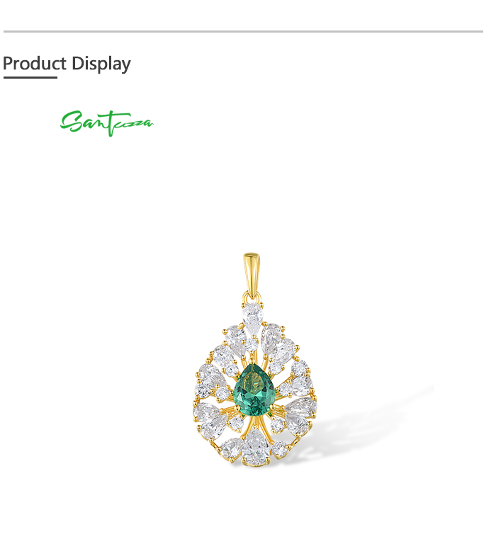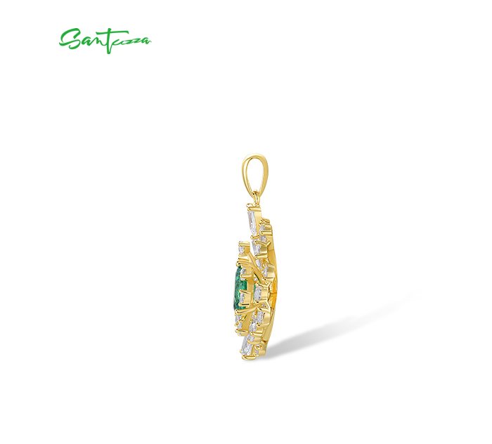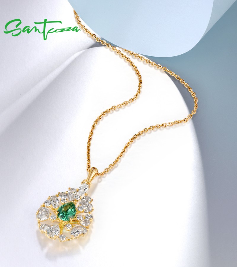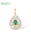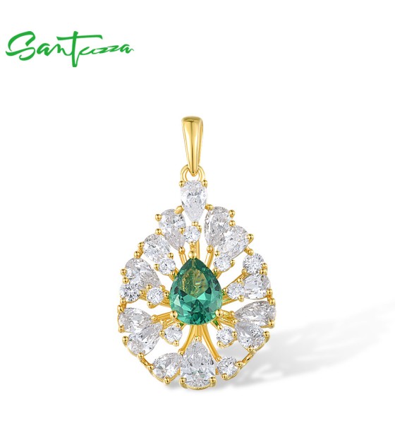SANTUZZA 925 Sterling Silver Pendant White CZ Green Spinel Jewelry