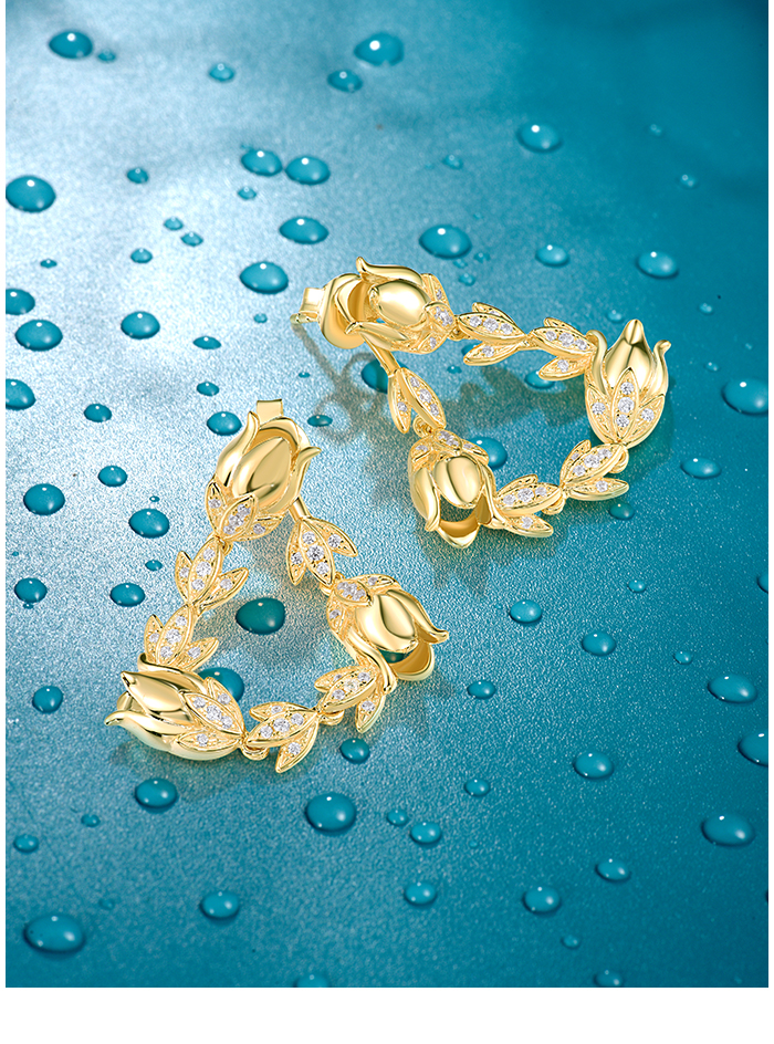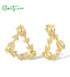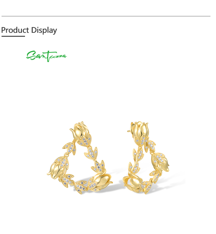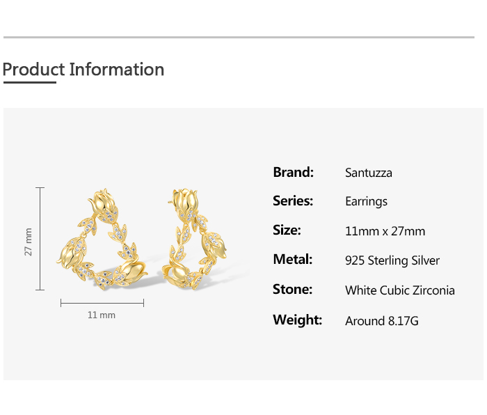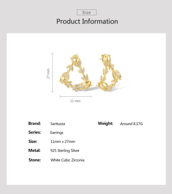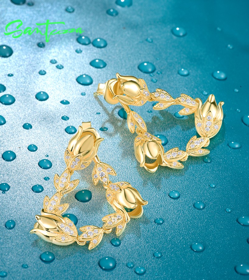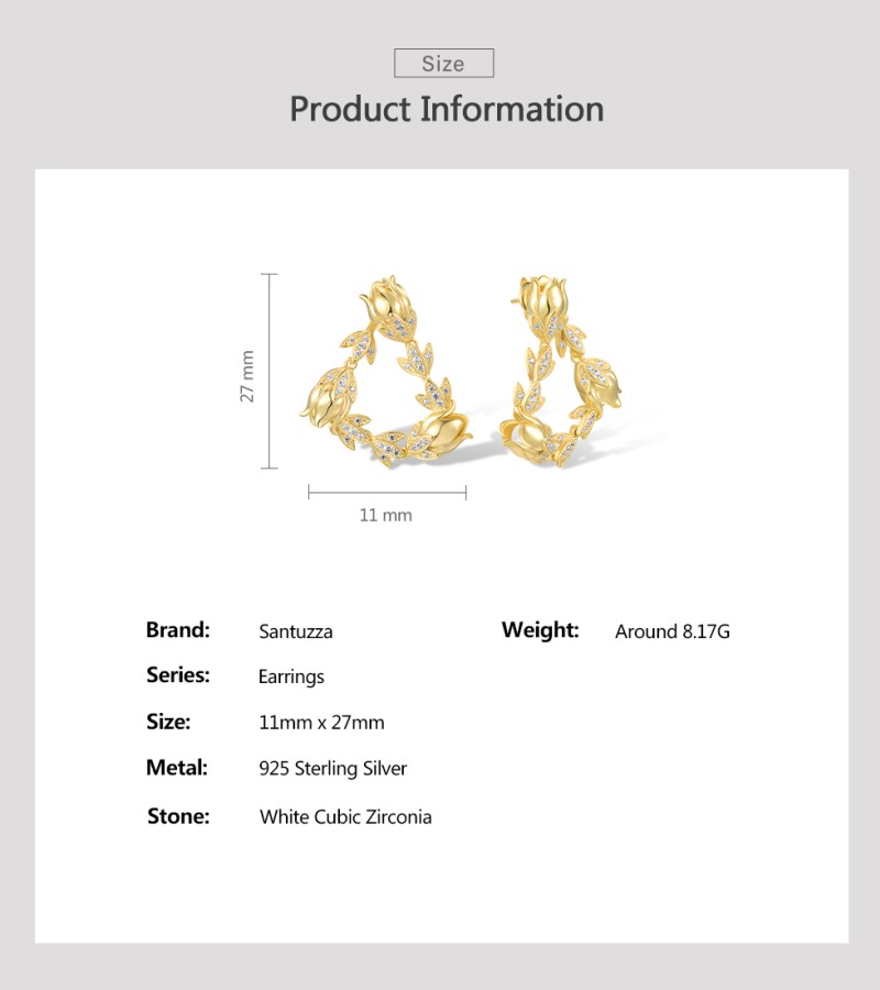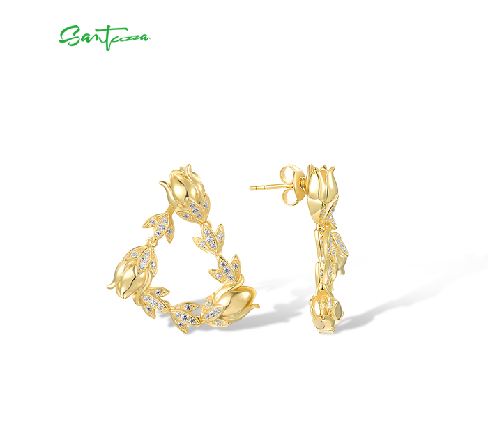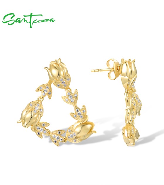 SANTUZZA 925 Sterling Silver Stud Earrings White CZ Tulip Flower Dangling Fine Jewelry