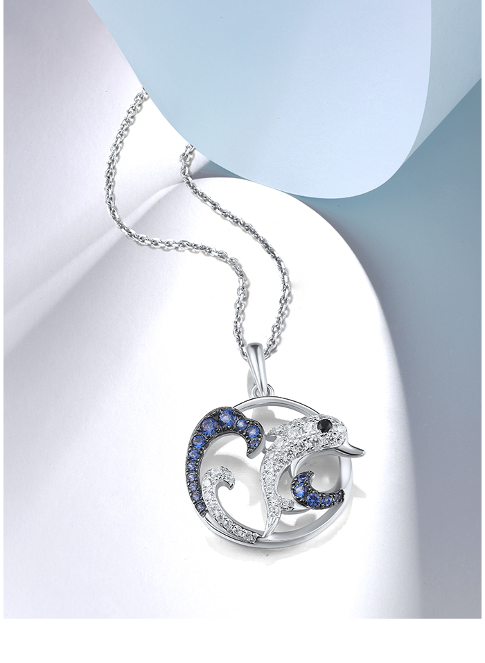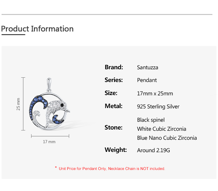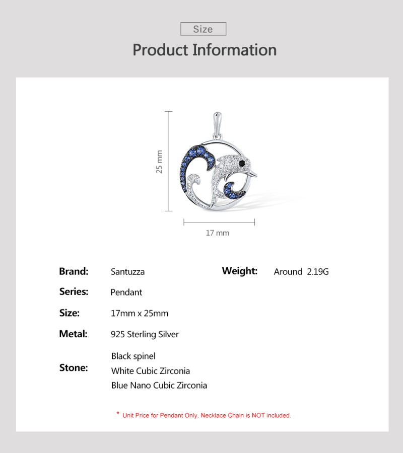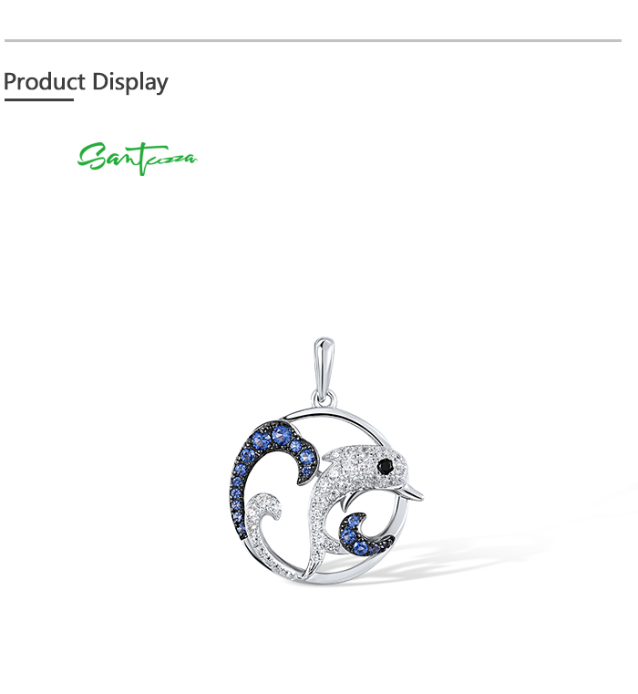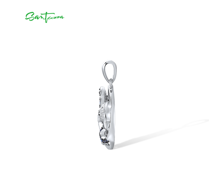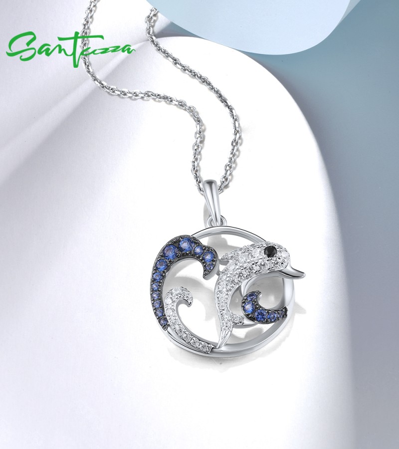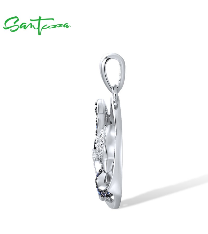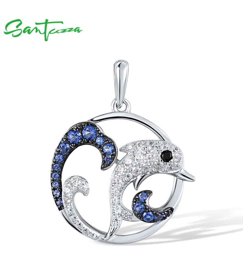 SANTUZZA 925 Sterling Silver Pendant Black Spinel Blue White CZ Dolphin Ocean Fine Jewelry